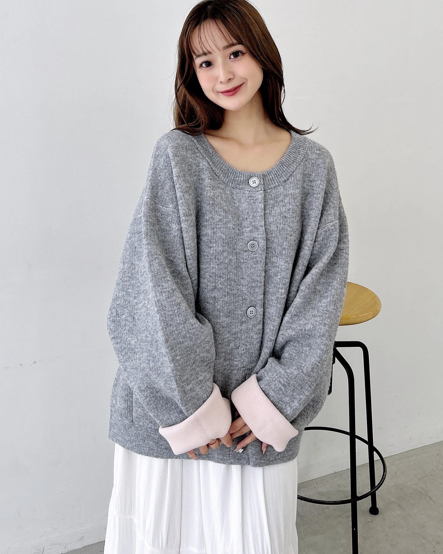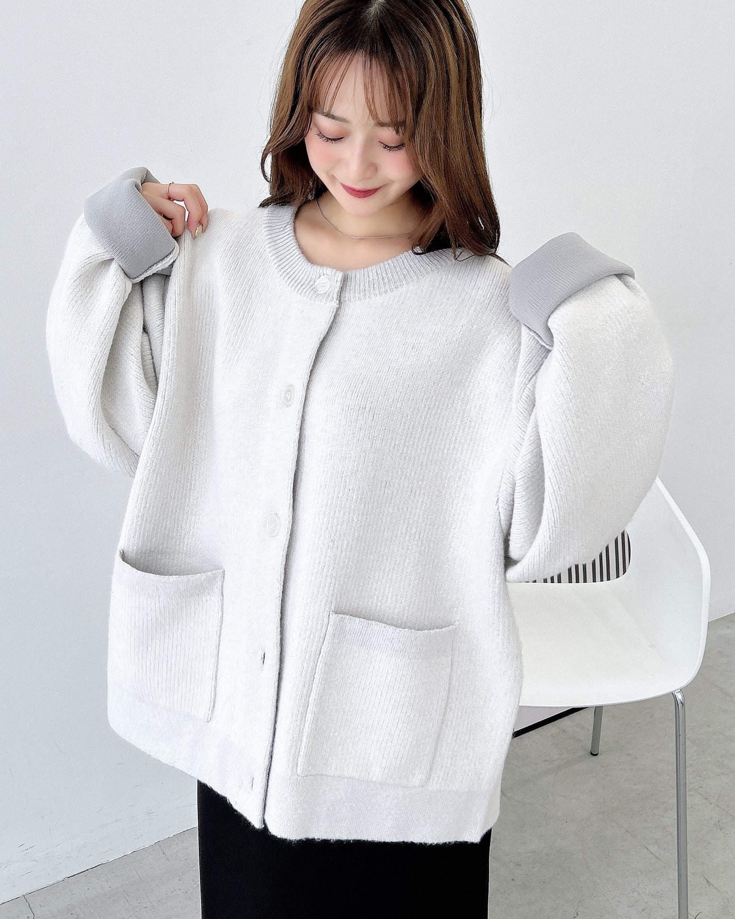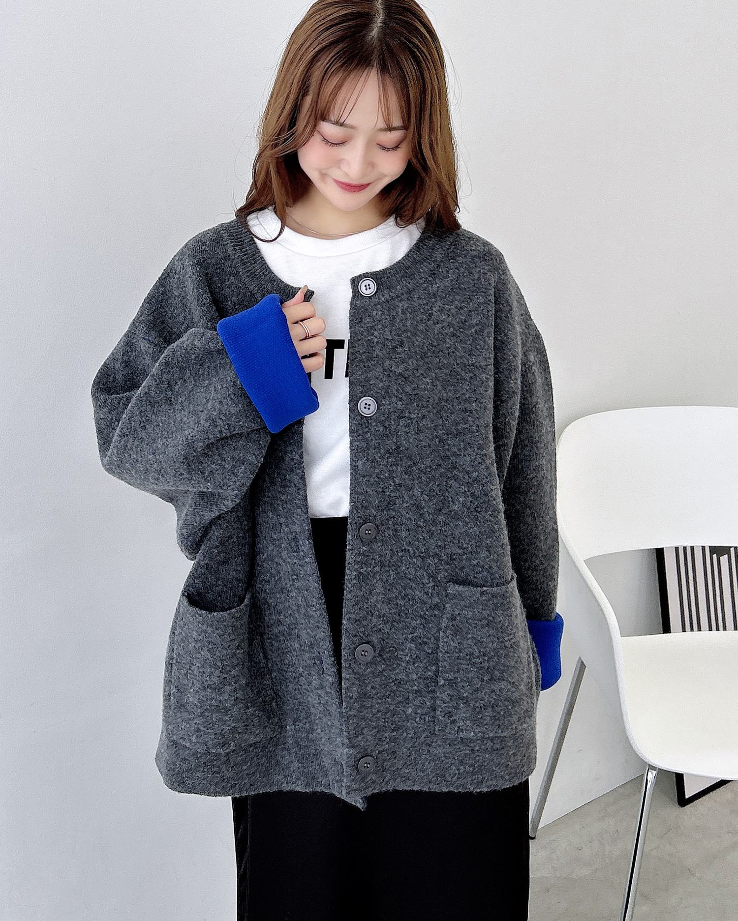 バイカラーがアクセント!秋冬定番ニットカーディガン。