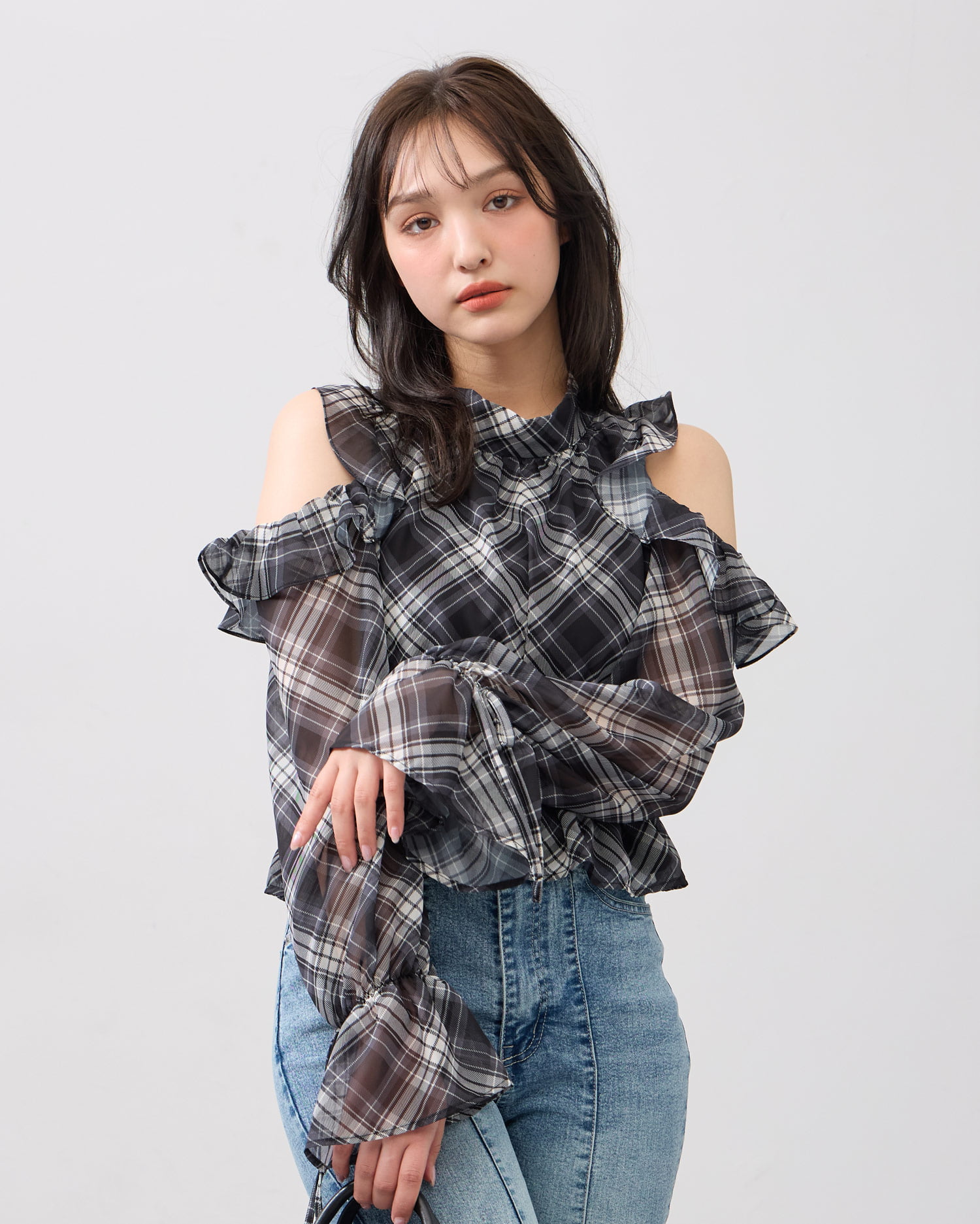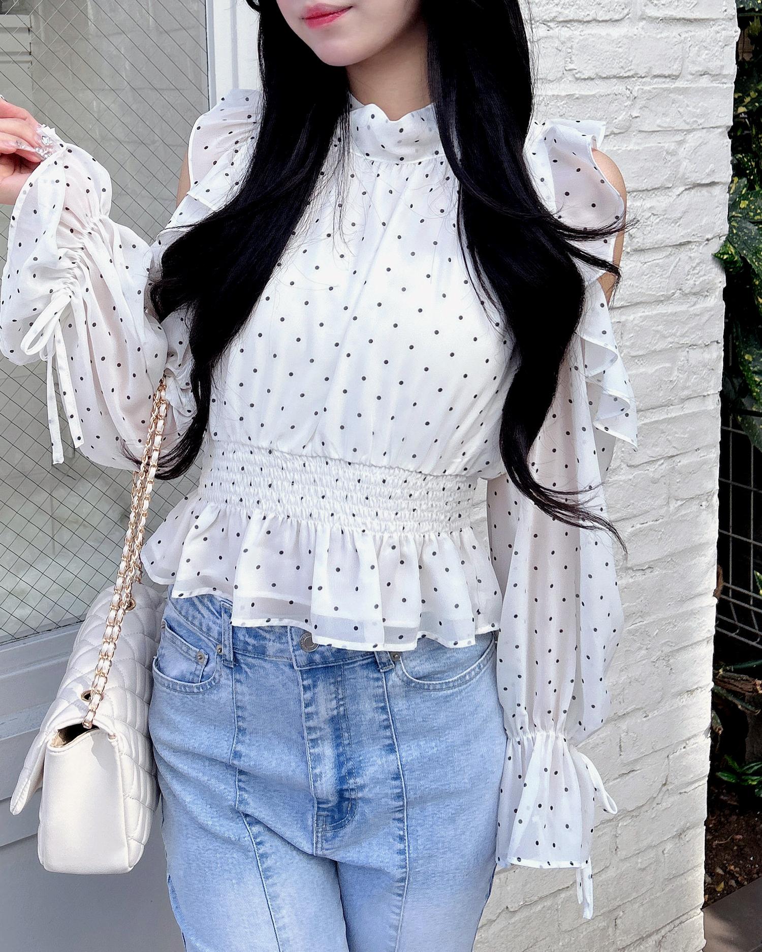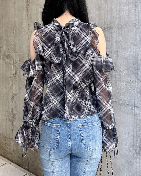 オープンショルダーでヘルシーな肌見せが叶うブラウスです。