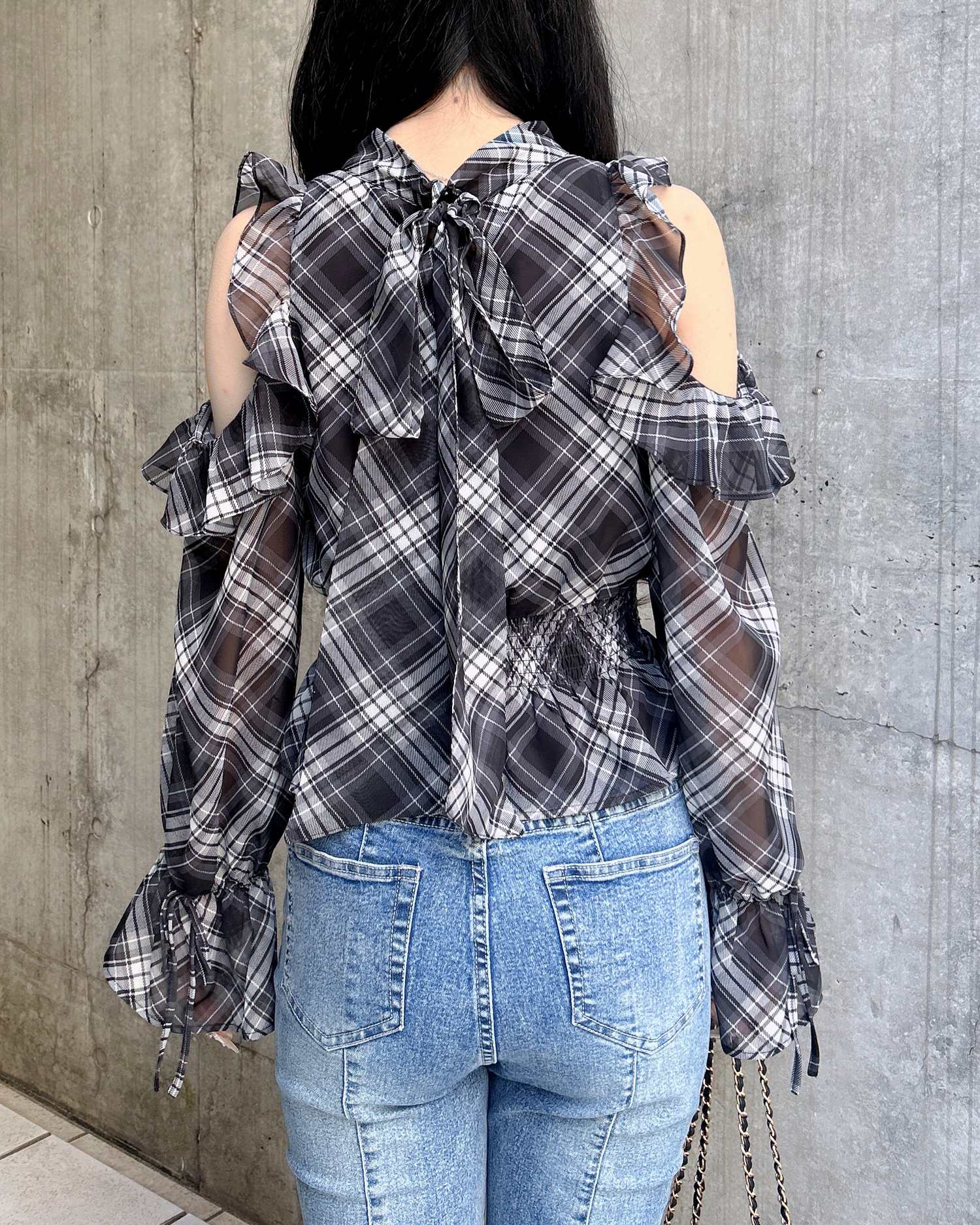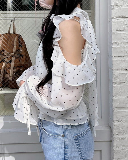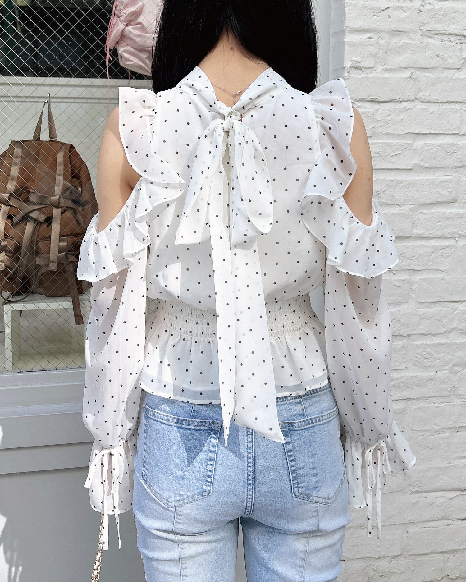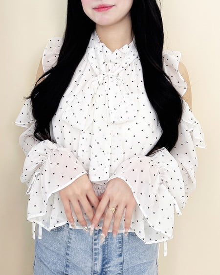 【1261-200152 2Wayリボン肩あきフリルブラウス】