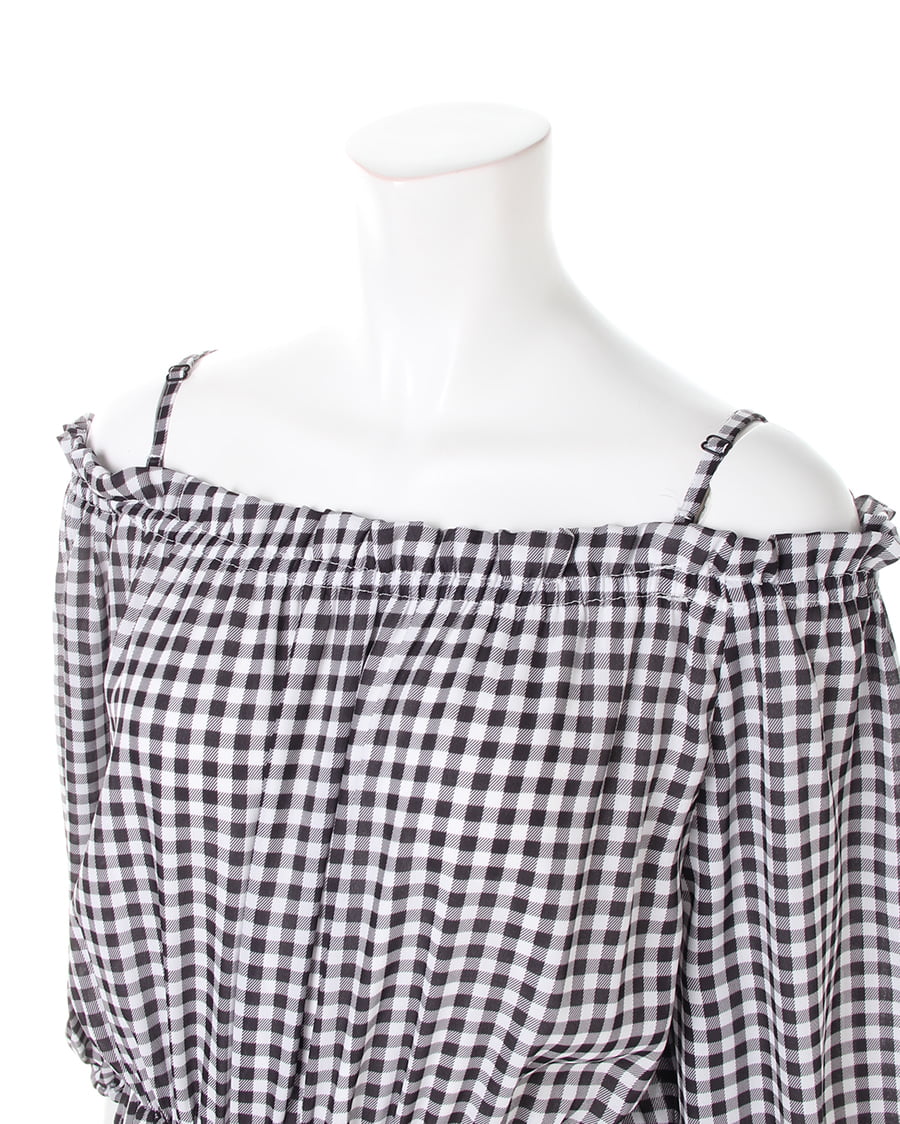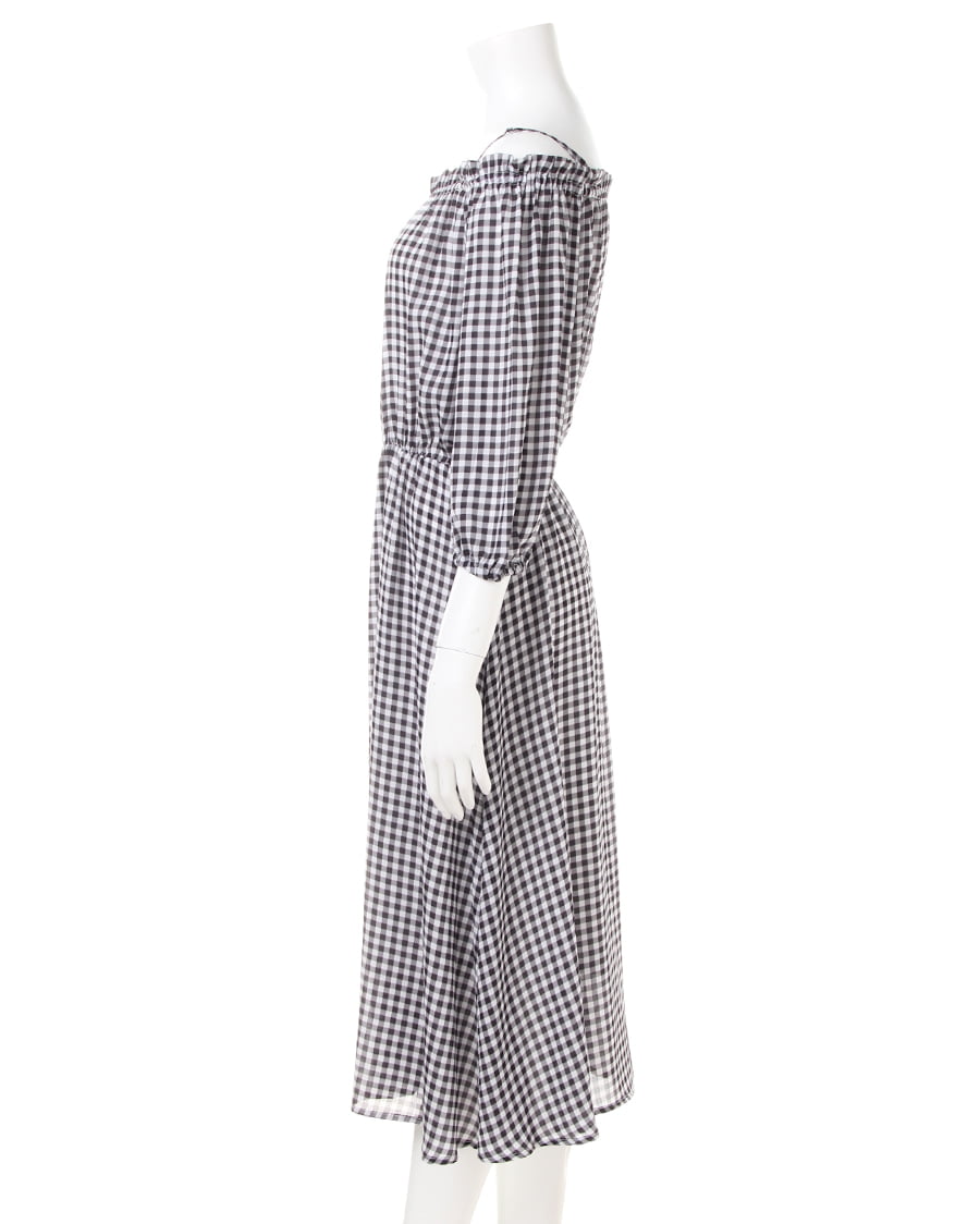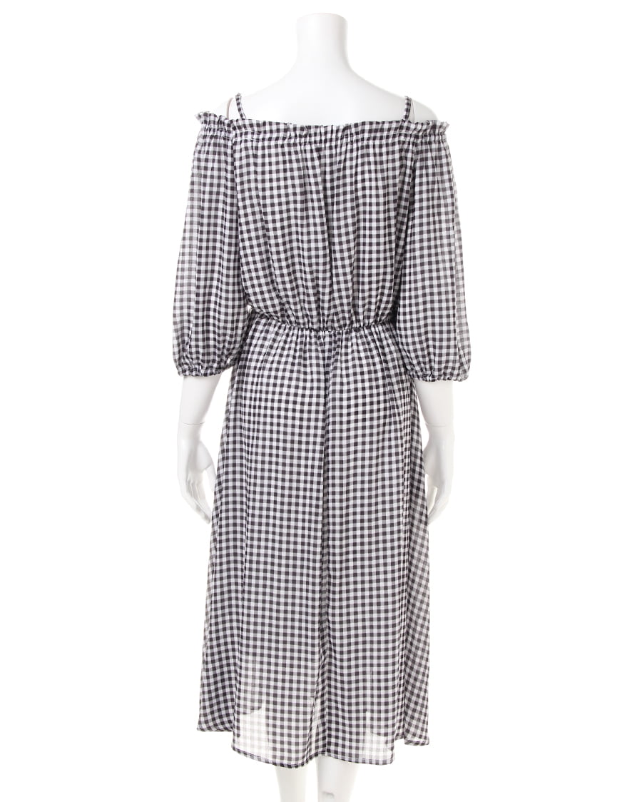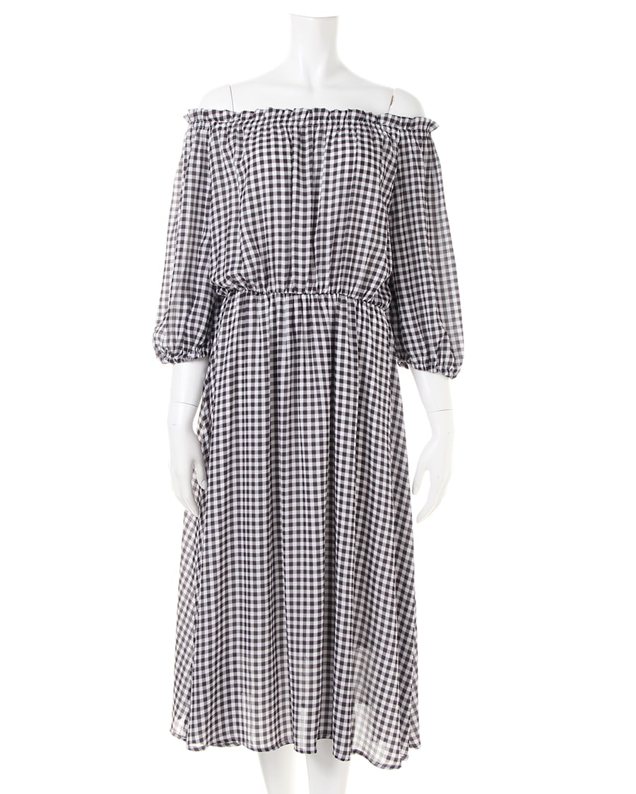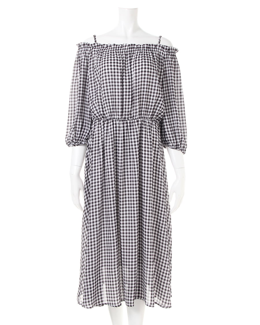 • INGNI(イング) 柄オフショル/ワンピース クロ/ギンガム