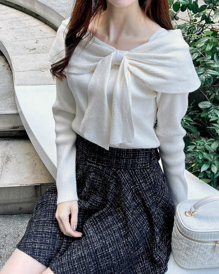バックにあしらった大きなリボンで後ろ姿も抜かりナシのアイテムです。