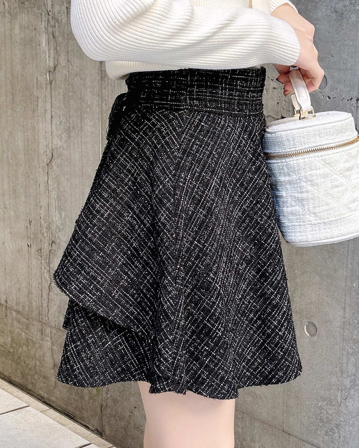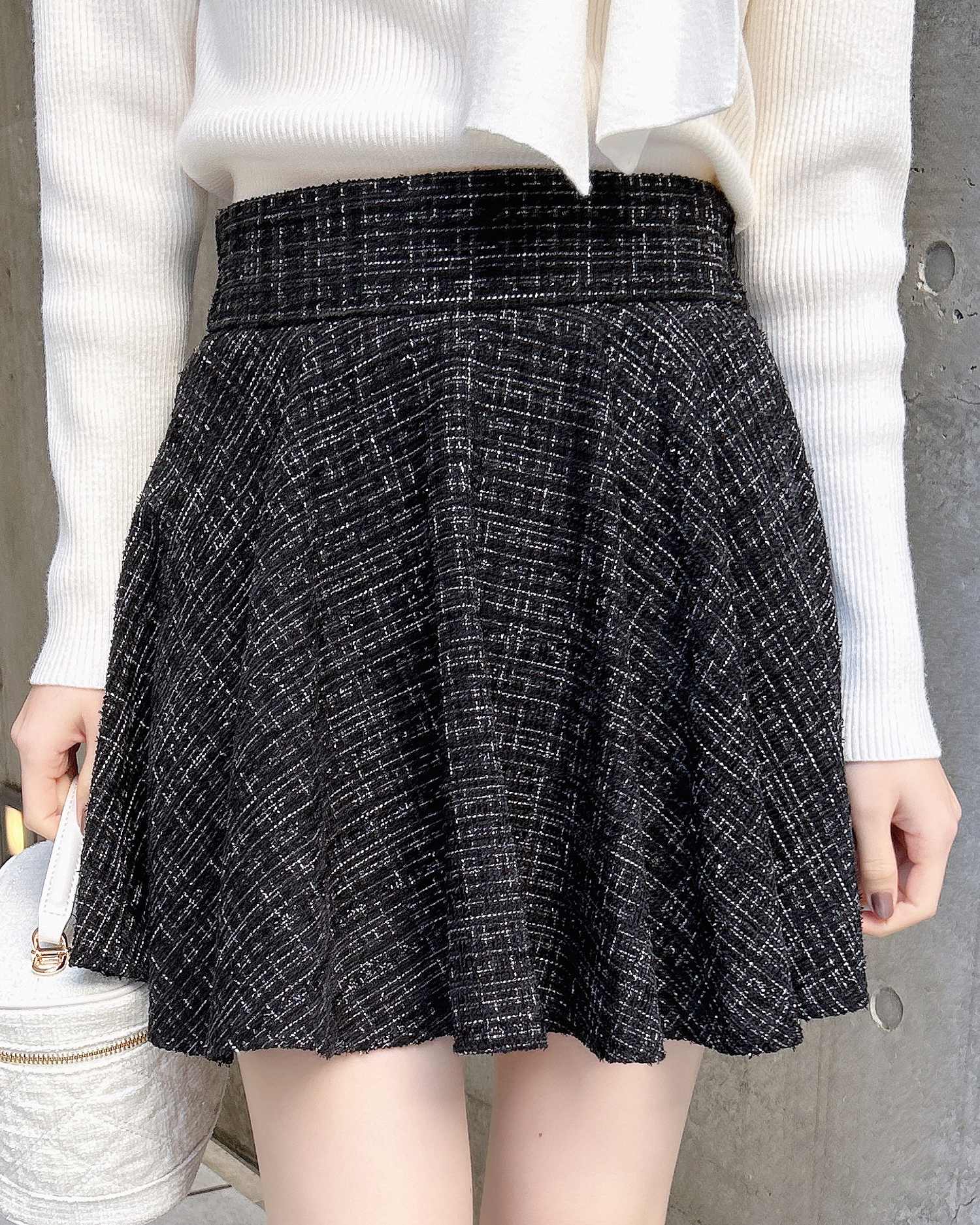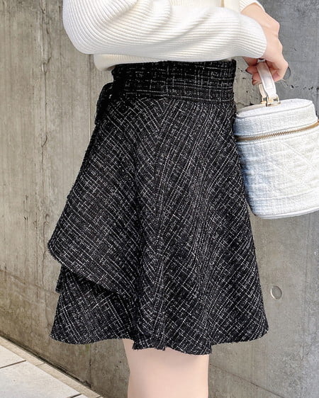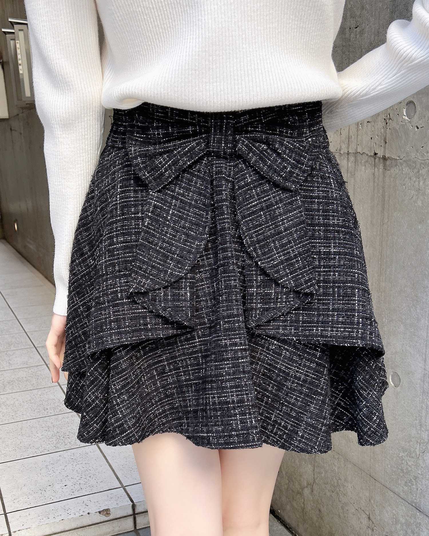 • INGNI(イング) バックリボンツイードフレアスカパン クロ/ツイード
