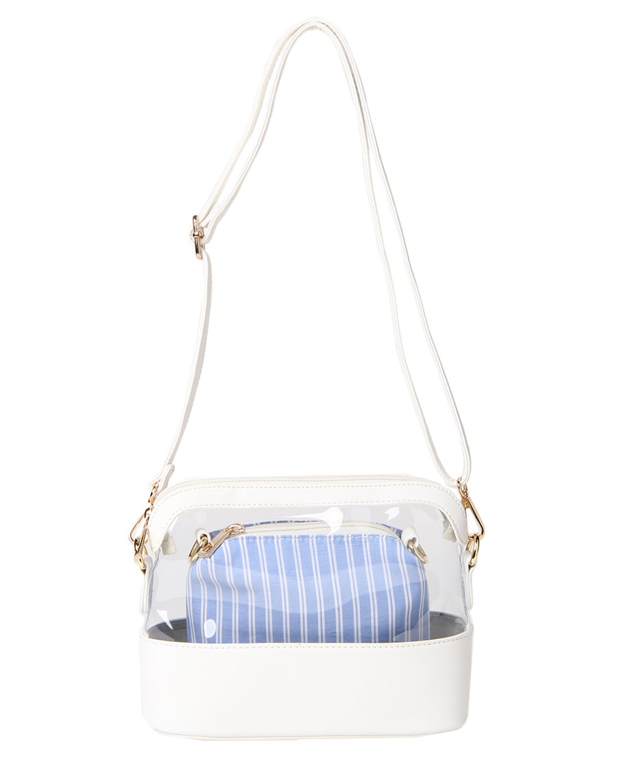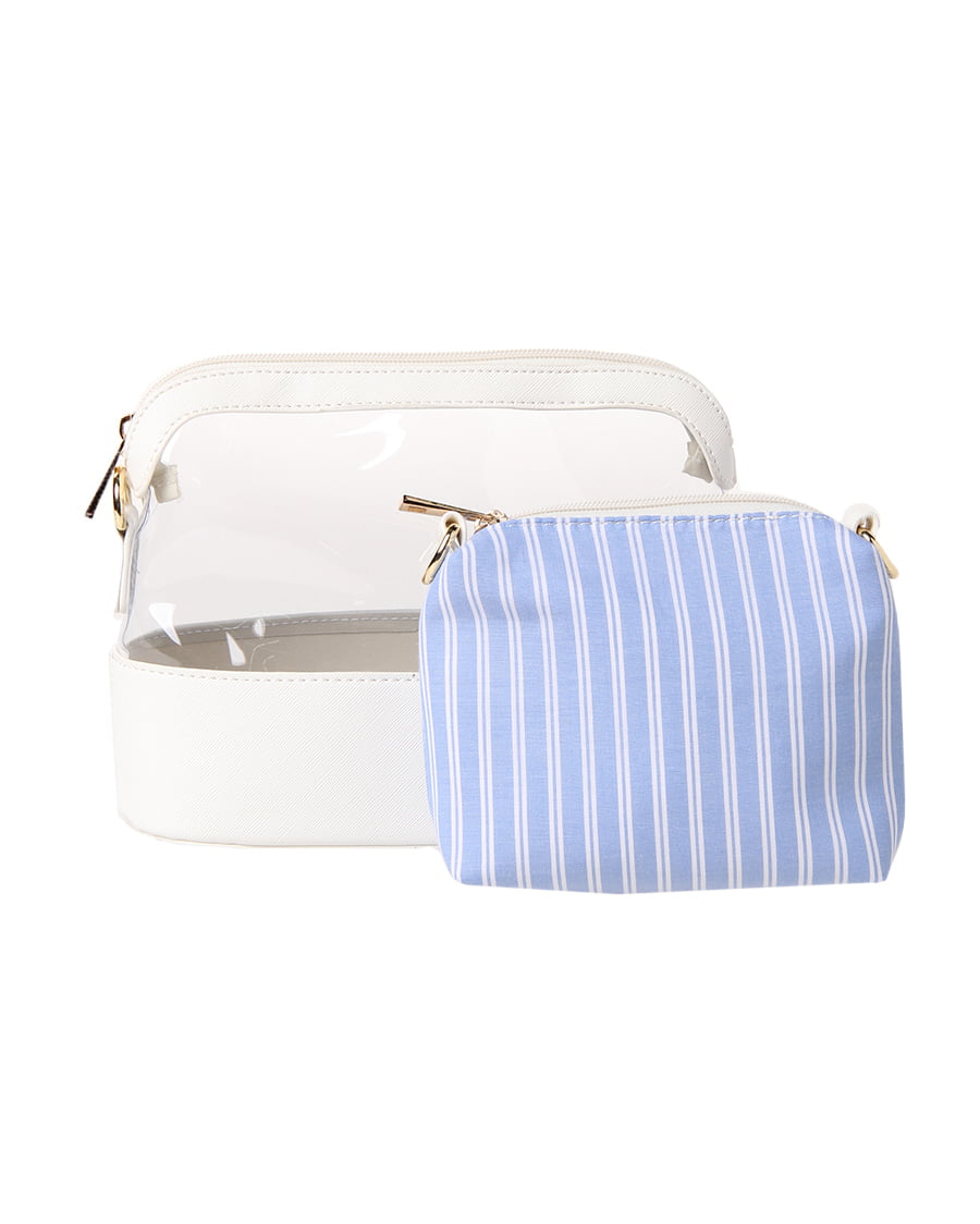 今季注目のビニール素材を採用、ポーチ付きが嬉しい4WAYショルダーバック。デザイン性が高くコーデにプラスすれば旬のスタイルが完成する優秀アイテム。光沢のある上品な質感、素材との組み合わせがエレガントな印象です。クリアバッグ本体と、中のポーチそれぞれにショルダーストラップが付けられるようになっています。あえて中を見せるのはもちろん、中身が見えないようにポーチを使うのもアクセントに。