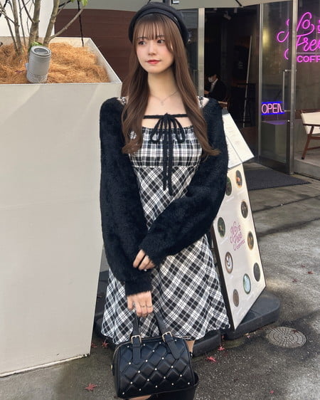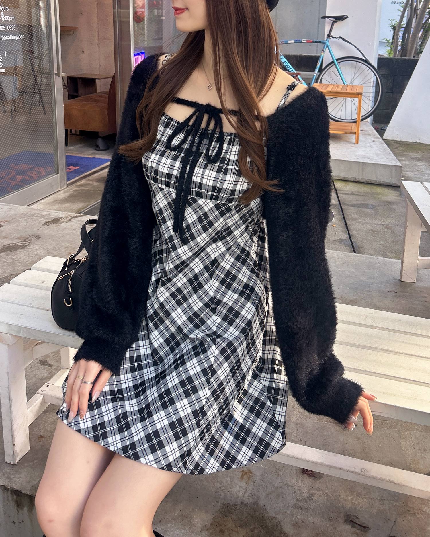キャミワンピは秋冬らしい落ち着いたカラーのチェック柄◎