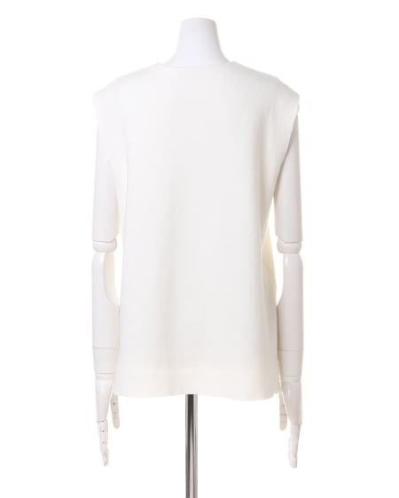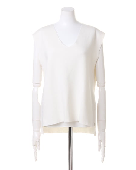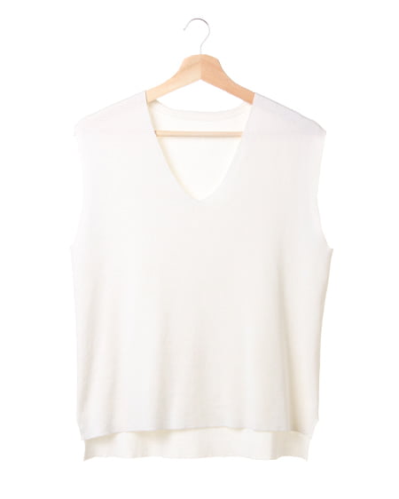 両サイドに大きく入ったスリットがポイントのVネックノースリーブニット。デコルテをすっきり魅せる絶妙なVネックラインが、大人の女性らしさを演出。薄手でサラッとした肌触りと、伸縮性を持ち合わせた薄手の生地で着心地も抜群。シンプルなデザインで、細身のパンツからボリュームのあるボトムまで合わせられるのが魅力。単品使いはもちろん、同素材のニットスカートとセットアップで着こなすのもオススメです。
