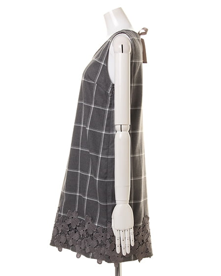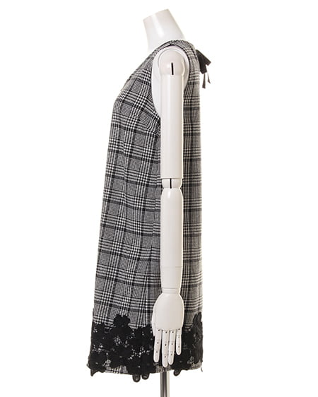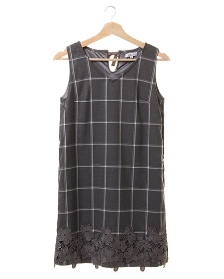 すとんと落ちたシルエットのサックワンピース。裾に施したレースで高級感を添え、女性らしく華やぎのあるデザインに。すっきりとしたシルエットとノースリーブで女性らしいラインを演出してくれます。デコルテをキレイに見せるネックラインもポイント。デイリー使いはもちろん、華やかなアクセサリーをプラスすれば、結婚式などオケージョンシーンにも対応もでき、エレガントな存在感を放ってくれます。ツイードやチェック柄など、印象が異なるカラーバリエーションも要チェック。