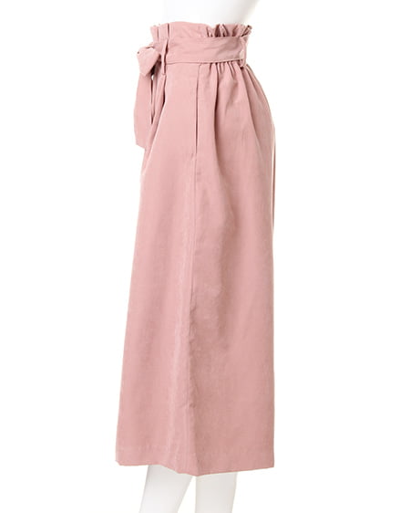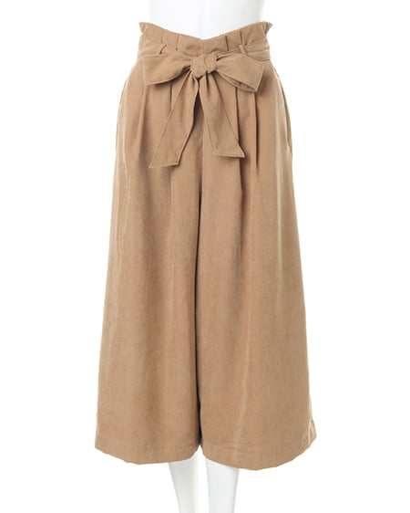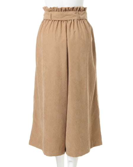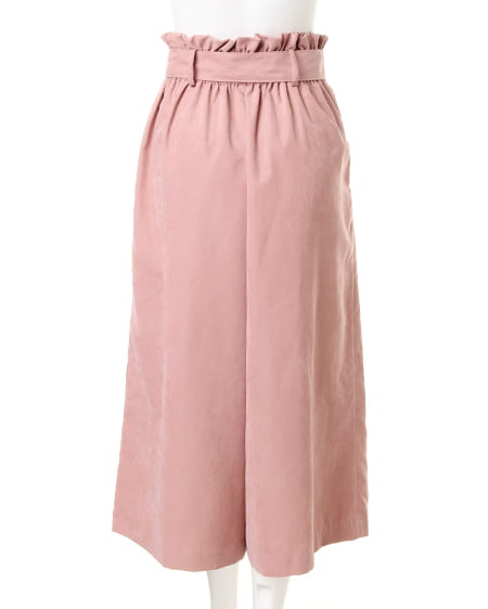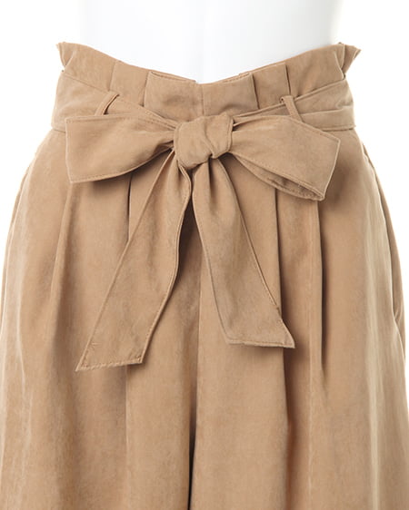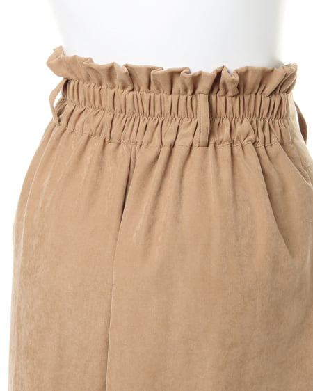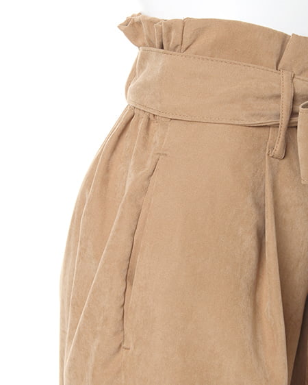 柔らかく、光沢のあるピーチ素材で仕立てられたパンツ。落ち感のある生地は、滑らかで着心地も抜群。しっかり重ねたウエストのタックが立体感を加えて、気になるレッグラインをカバーしてくれる効果も期待できます。足元の合わせを引き立たせる、クロップド丈もこだわりのポイント。共布のベルトでウエストマークすれば、メリハリのあるスタイルが完成します。