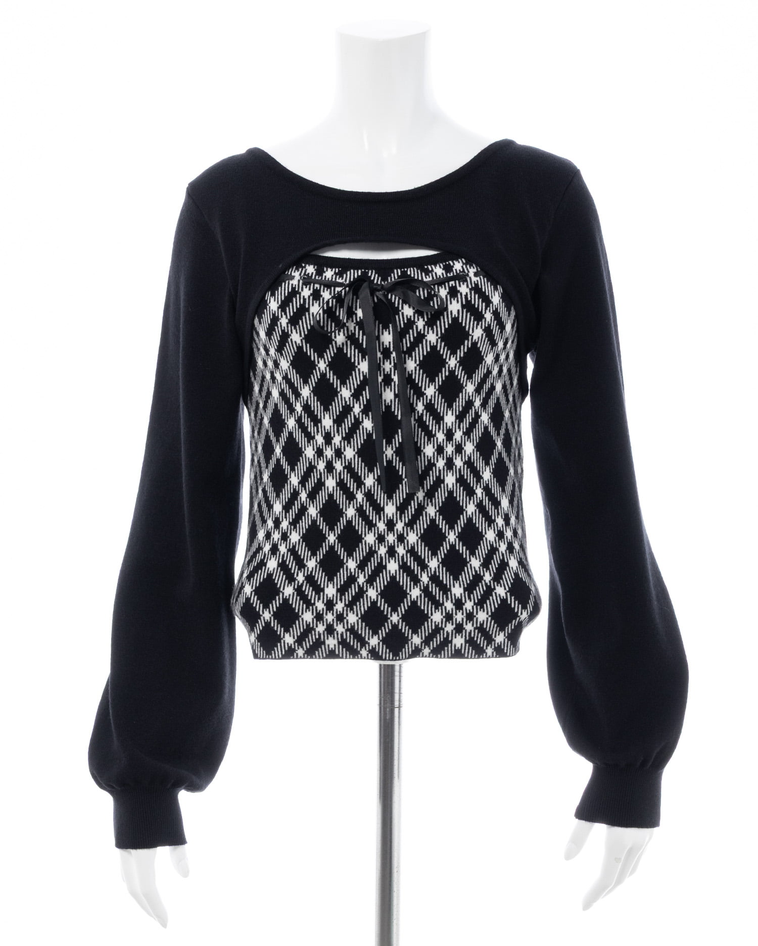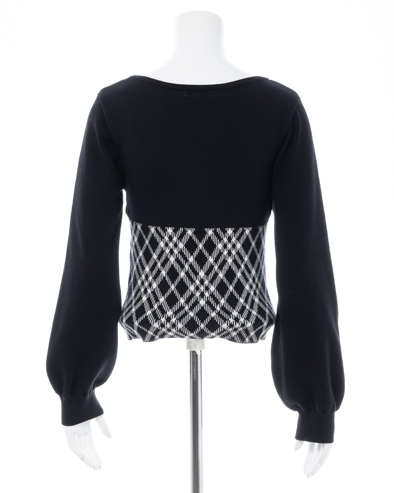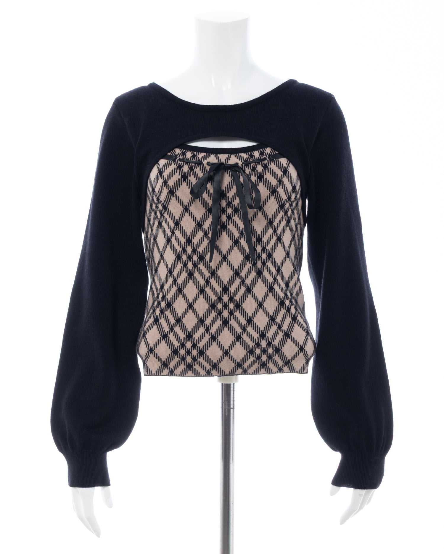 1254-900339 チェック柄デコルテオープンニット