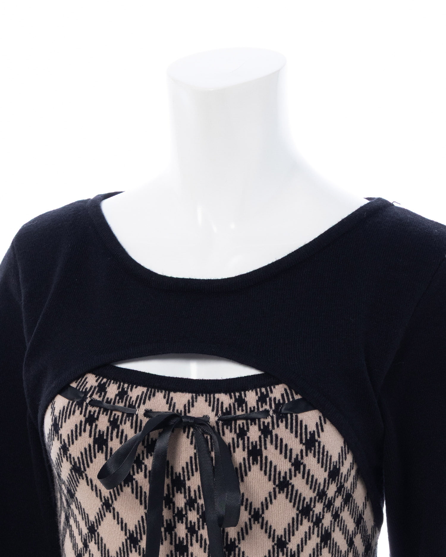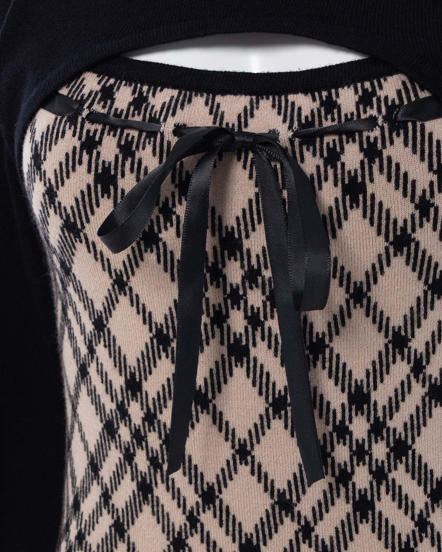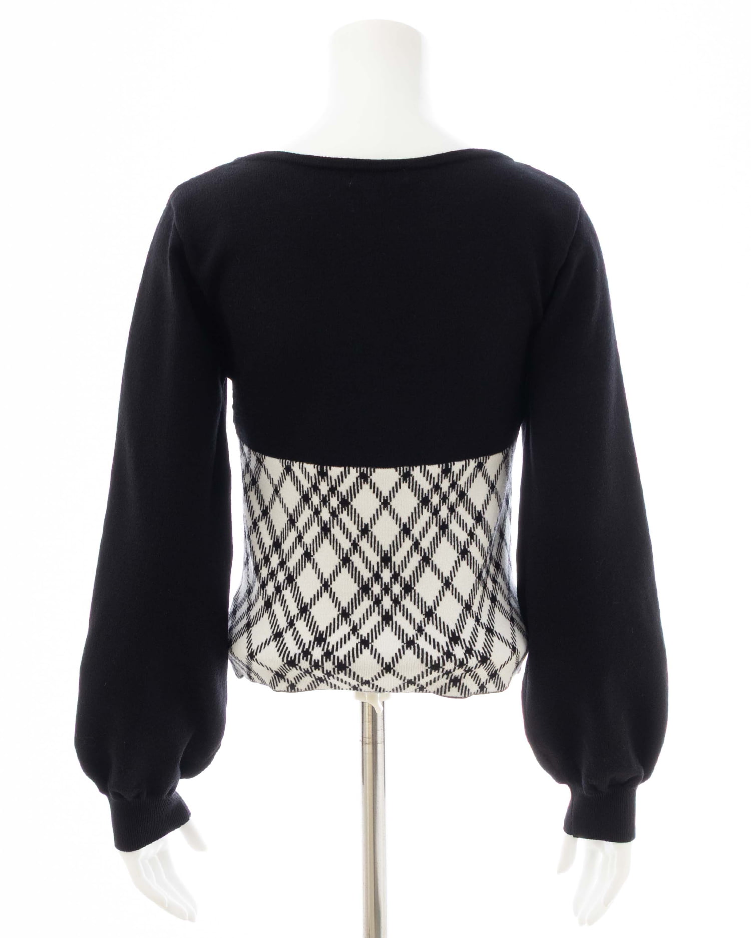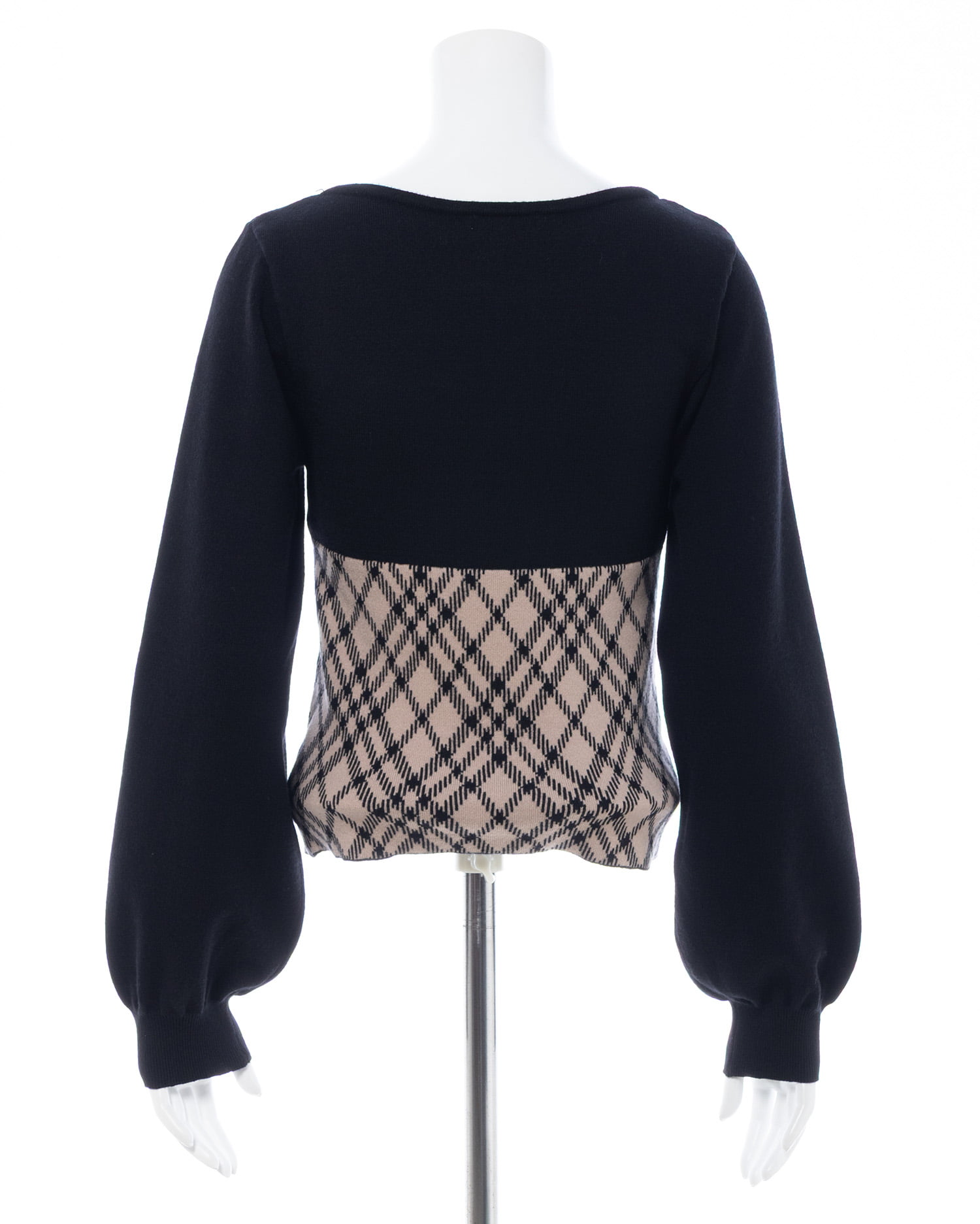 1254-900339 チェック柄デコルテオープンニット