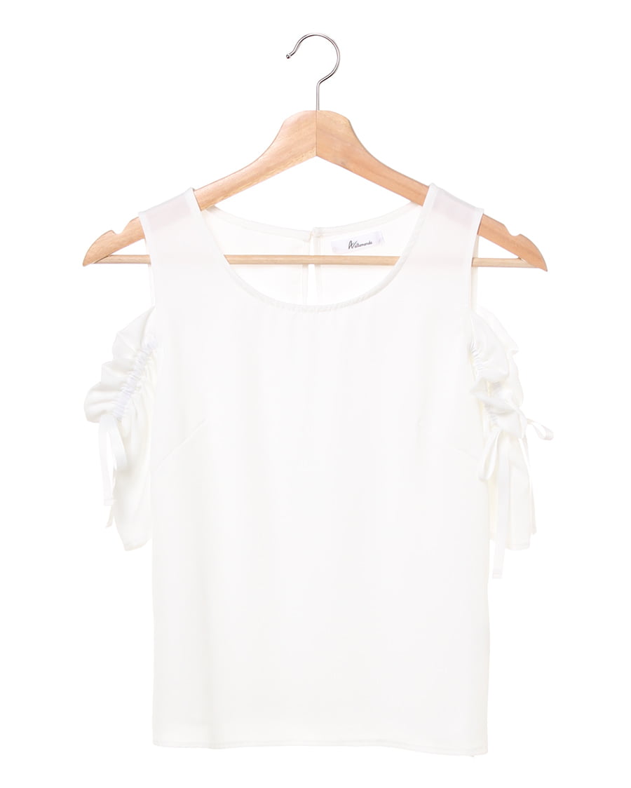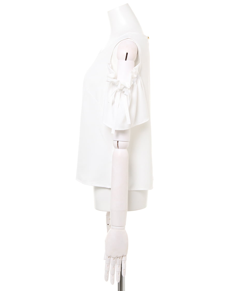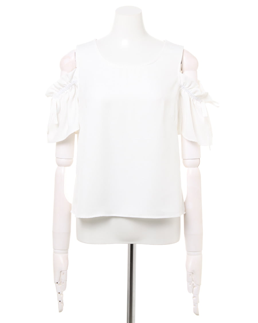肩部分の大胆なカット、ツイルリボンとふんわり揺れるスリーブが特徴的で今年らしいスタイルが決まるトップス。ボリュームのある袖が気になる二の腕のカバー効果も期待できる計算されたデザイン。さらっと滑らかで肌触り良好、デイリー使いに◎。ワンカラーで仕立てているので、コーディネイトの幅が広がるのも嬉しいポイントです。女性らしい雰囲気をあおる淡いカラー展開にも注目。