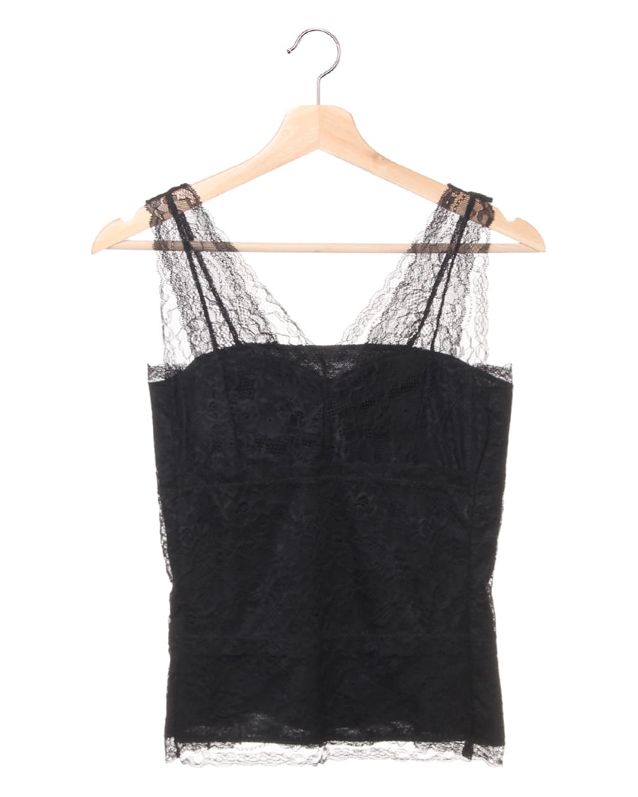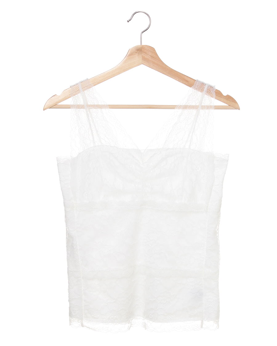 総レース使いが清楚な印象を漂わせる大人っぽいタンクトップ。繊細なレースがエレガントで華やかな1枚。深めに開いた首元が女性らしい雰囲気をあおります。身頃部分に柔らかくて肌馴染みのいい生地を張り付けているので、インナーを気にせず着れるのも魅力的。1枚でトップスとして着るのはもちろん、カーディガンやライトアウターのインナーとしてもおすすめです。