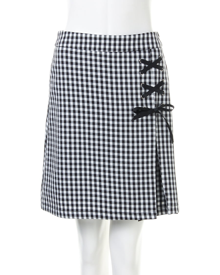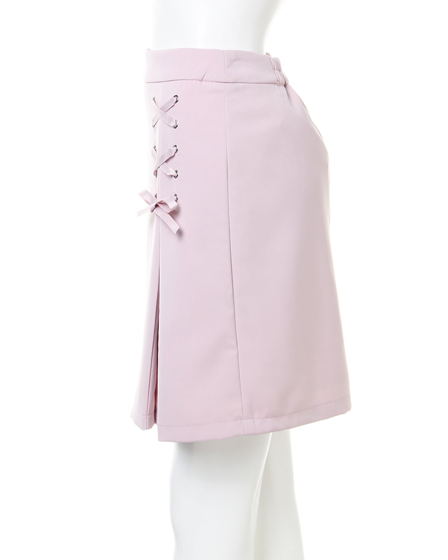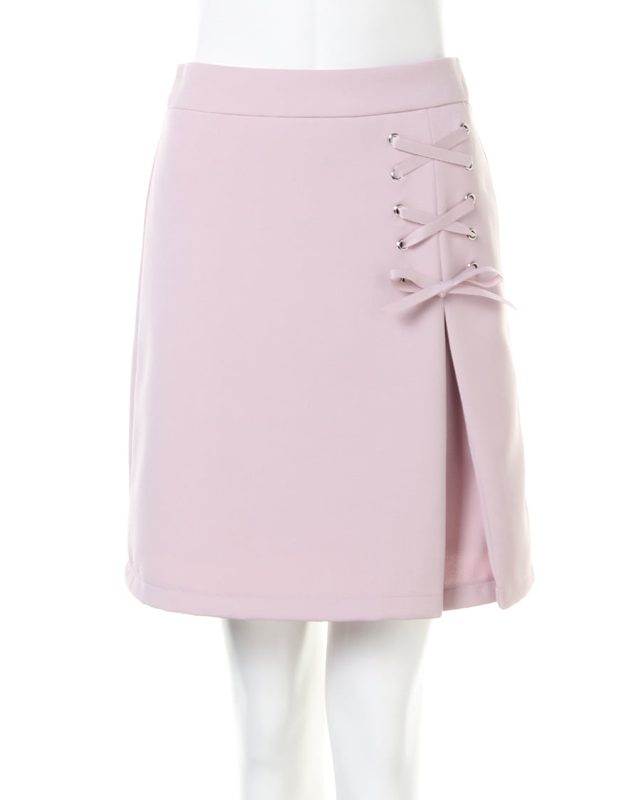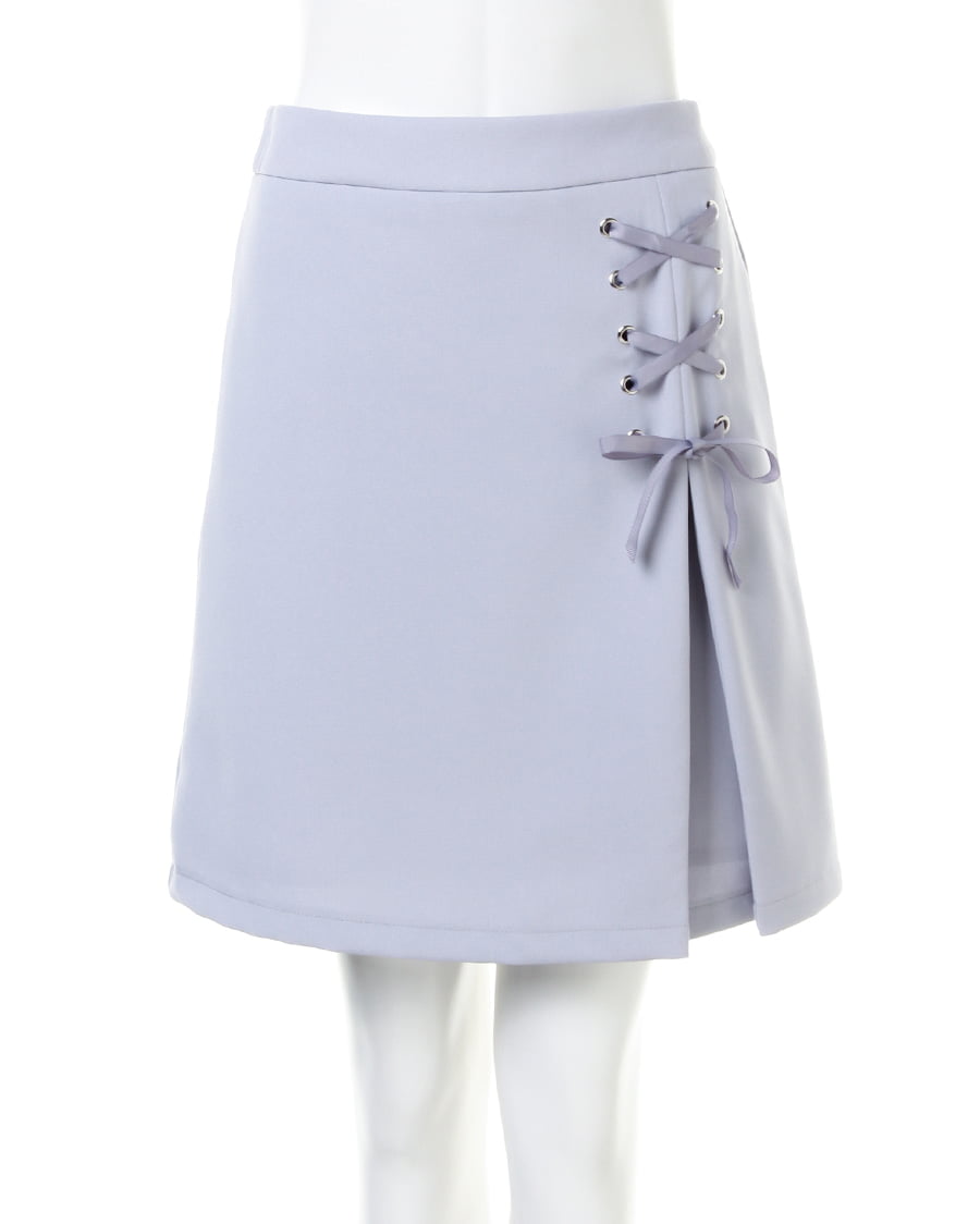 フロントのレースアップデザインがレディライクなスカート。ワードローブに一枚は欲しい、コーデの幅が広がる優秀アイテムです。ウエストから裾にかけて広がる台形シルエットが脚長効果を演出、スタイルアップを叶えます。バックウエストはゴム仕様で安定感があり、ストレスフリーが嬉しいポイント◎バックファスナーで着脱も楽チンです。