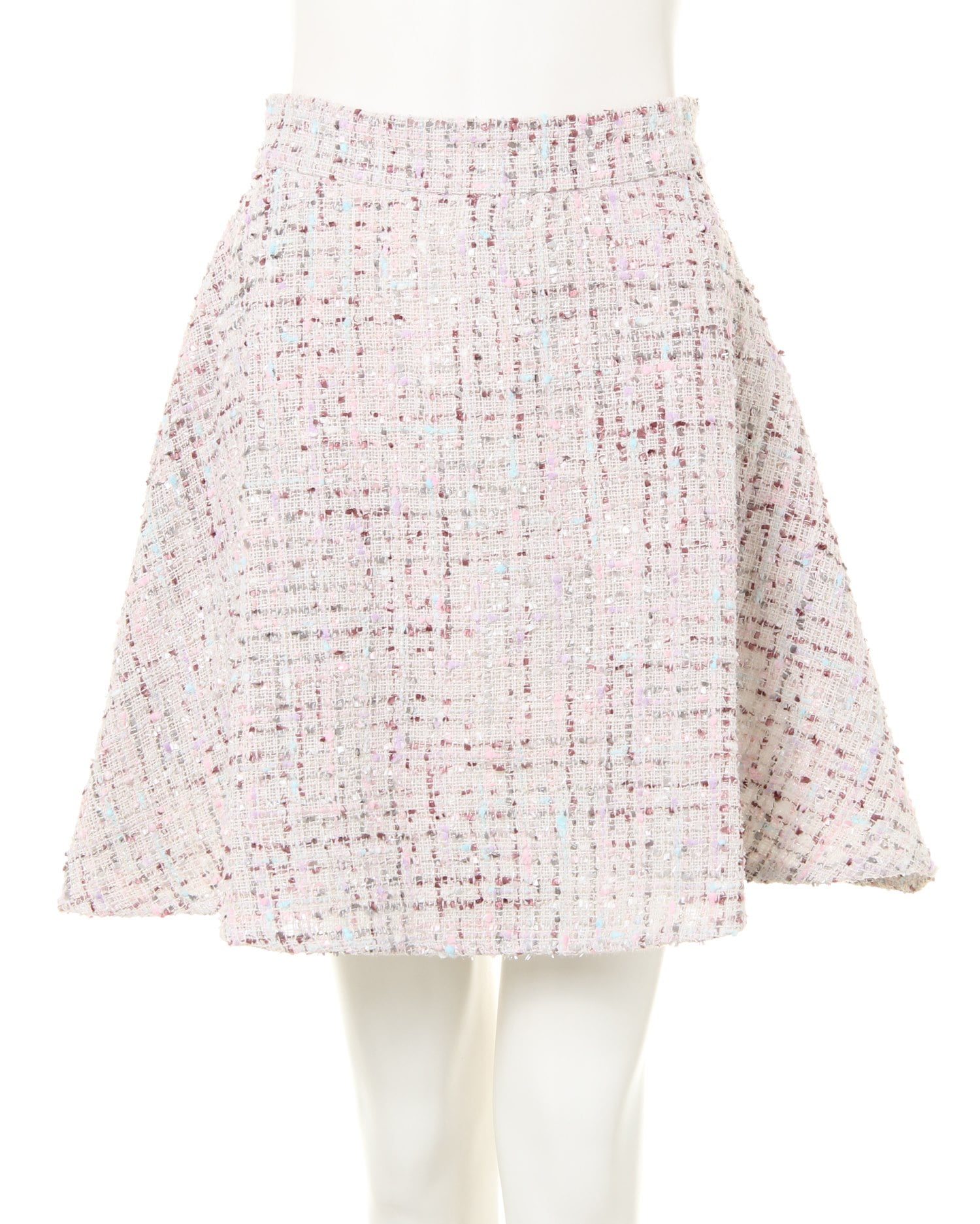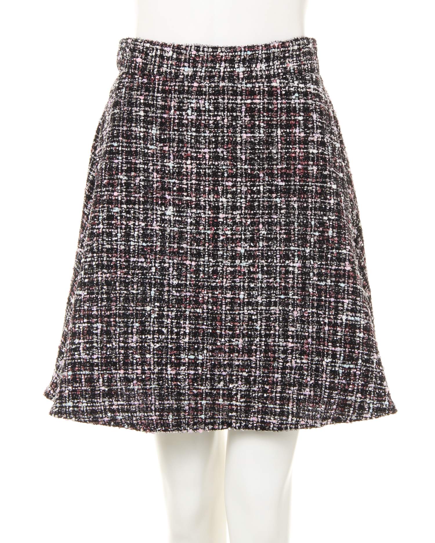 ぬくもりのあるツイード素材で仕立てたフレアシルエットのスカートです。裾へ向かってふわりと広がるエレガンスな1枚。気になるヒップラインも自然とカバーしてくれます。バックウエストはゴムになっているので脱ぎ穿きも楽チン。ツイードのカラー使いと上品な丈感で、オンオフ問わずに着回せるのも◎。