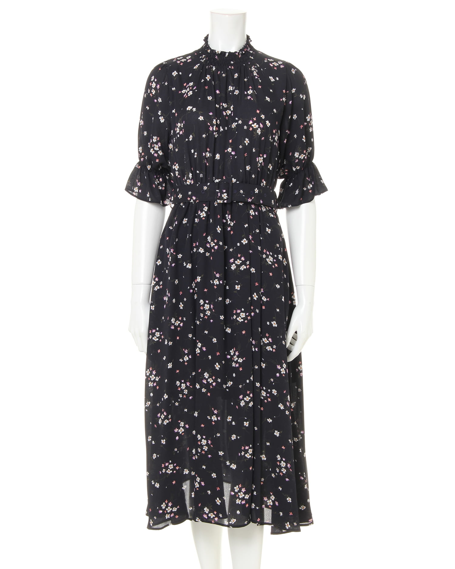 季節感溢れるベースカラ―に可憐なフラワープリントをあしらったマキシワンピース。落ち感のある素材で仕立てているので、流れるようなドレープが美しい1枚です。襟元はスタンドネックでクラシカルな雰囲気に。袖部分のフリルにはブラウジングも楽しめるゴム入りです。高めの位置に入れたウエストラインから広がるシルエットがスタイルアップを叶えてくれます。【セット内容】ワンピース、ベルト