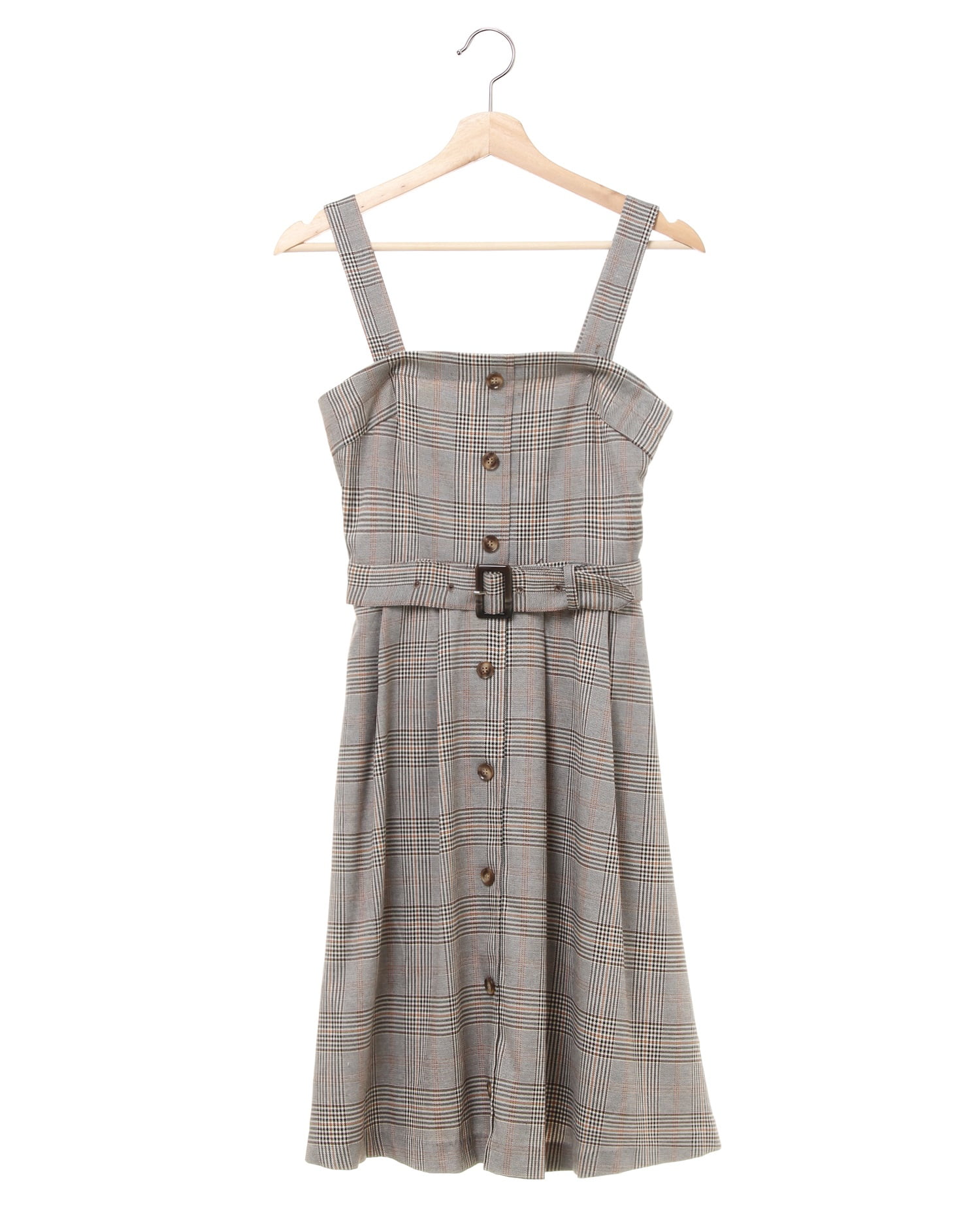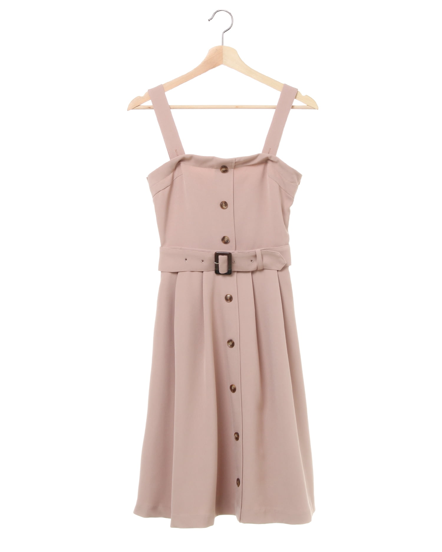 落ち着いたカラーがこれからの季節にぴったりのジャンパースカート。トレンチ風のデザインでトレンド感たっぷりの1枚です。高めに入れたウエストラインから広がるフレアシルエットでスタイルアップを狙えるのも◎。ショルダーストラップは取り外し可能なのでビスチェ風にも着られます。気分に合わせてお好みの着こなしを楽しんで。