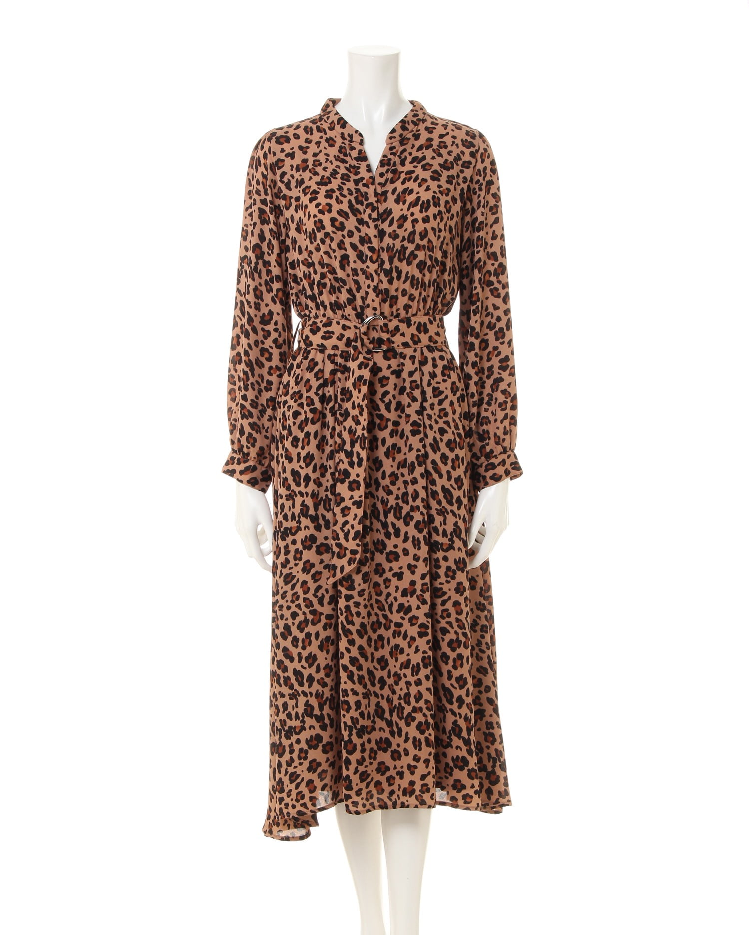 全体にあしらったヒョウ柄は着るだけで主役級の存在感。薄手の生地で動く度にふわりと揺れるレディな1枚に仕上げています。すっきりと開いた襟元のデザインは、インナーを合わせるのも◎。高めの位置に入れたウエストラインで上半身をコンパクトに見せ、スタイルアップを叶えます。サッシュベルト付きなので1枚でもメリハリのある着こなしが完成。