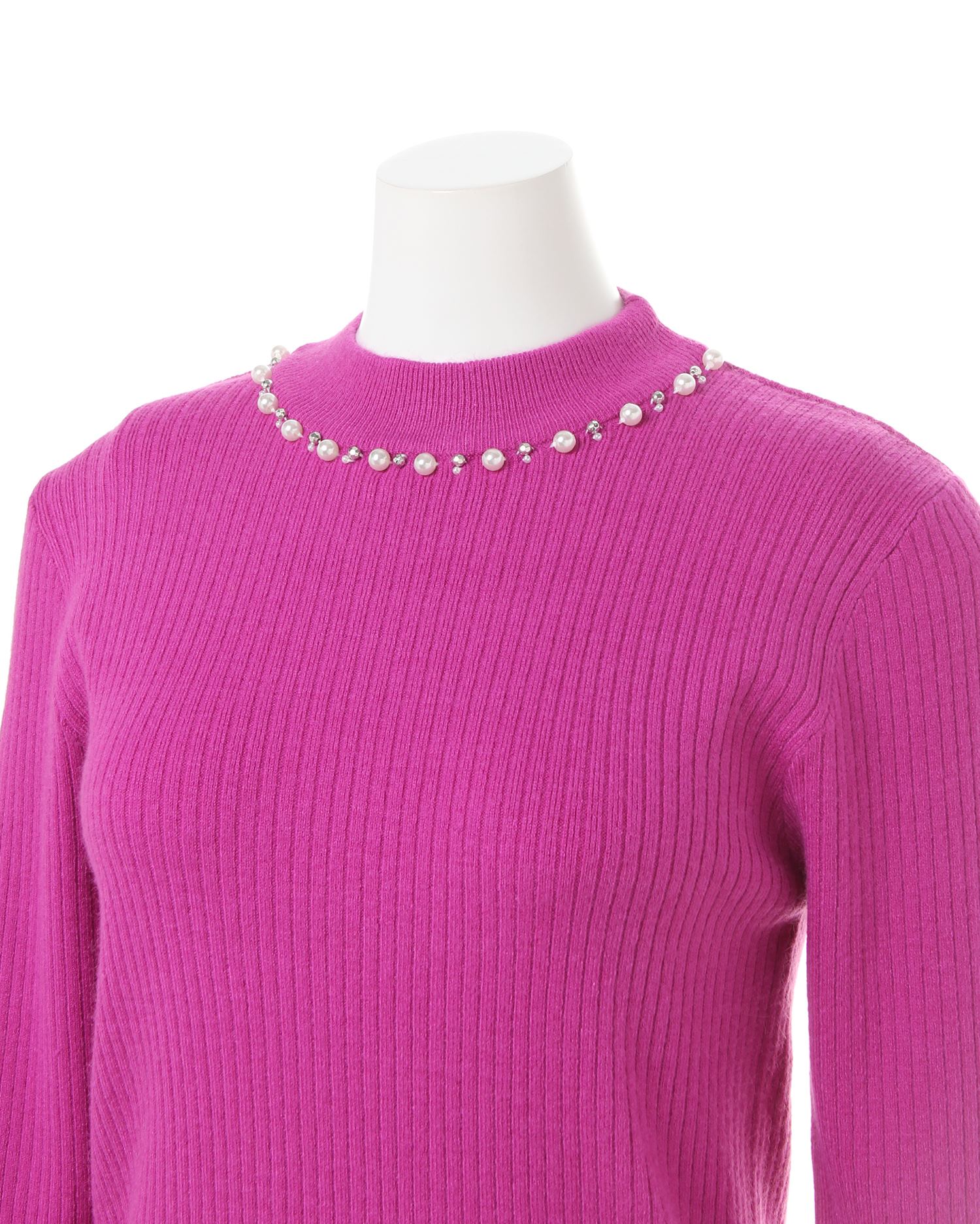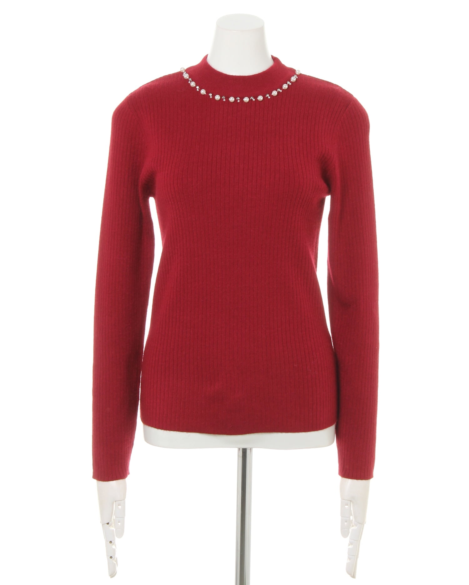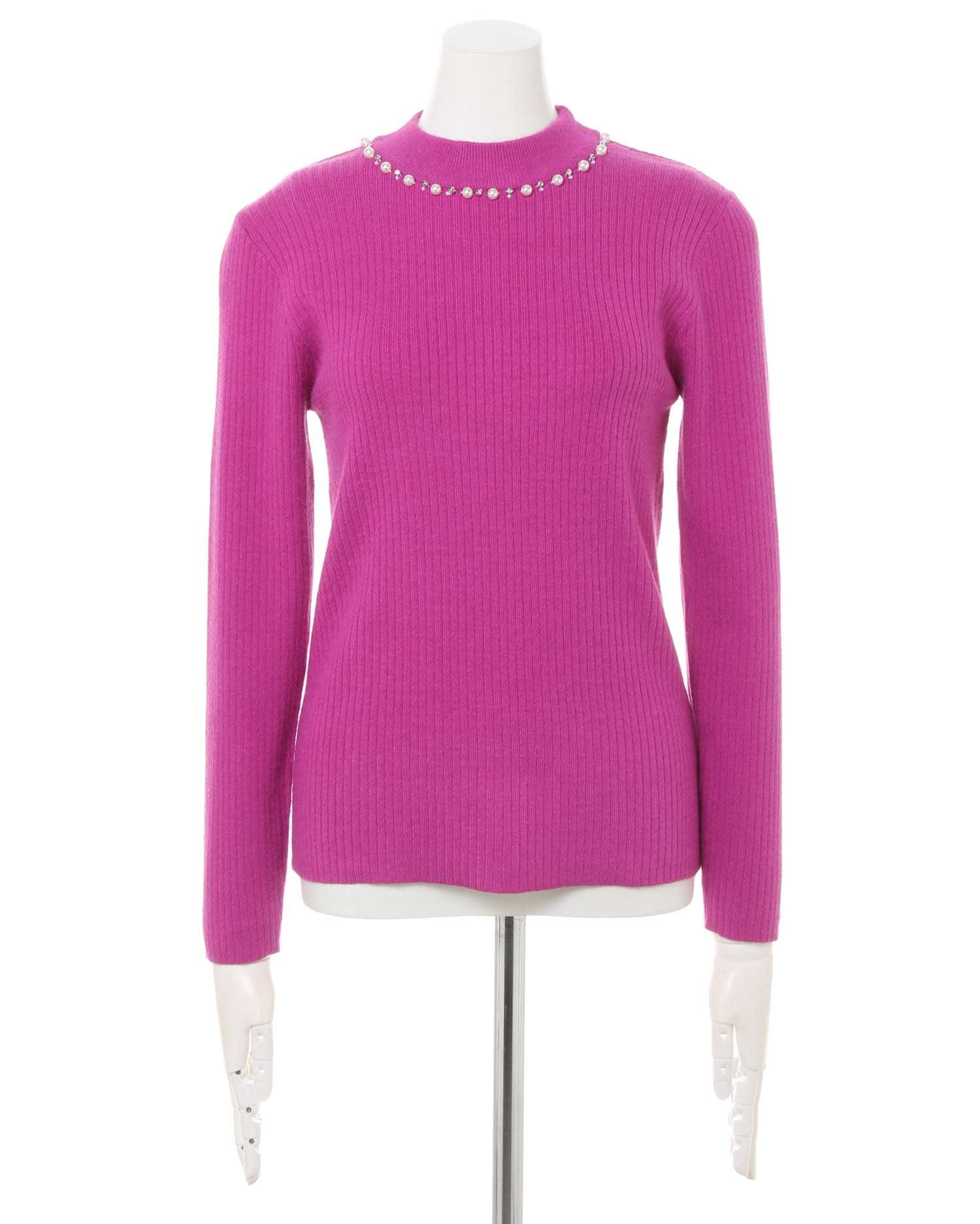 柔らかな肌ざわりとフィット感が着心地の良さを叶えるハイネックトップス。ネックラインにあしらったパールとビジュー装飾が、エレガントな女性らしさをプラス。アクセサリーのように顔周りを華やかに演出します。統一カラーは様々なコーデと好相性。着回し力抜群なので、デイリー使いに重宝すること間違いなしの逸品です。