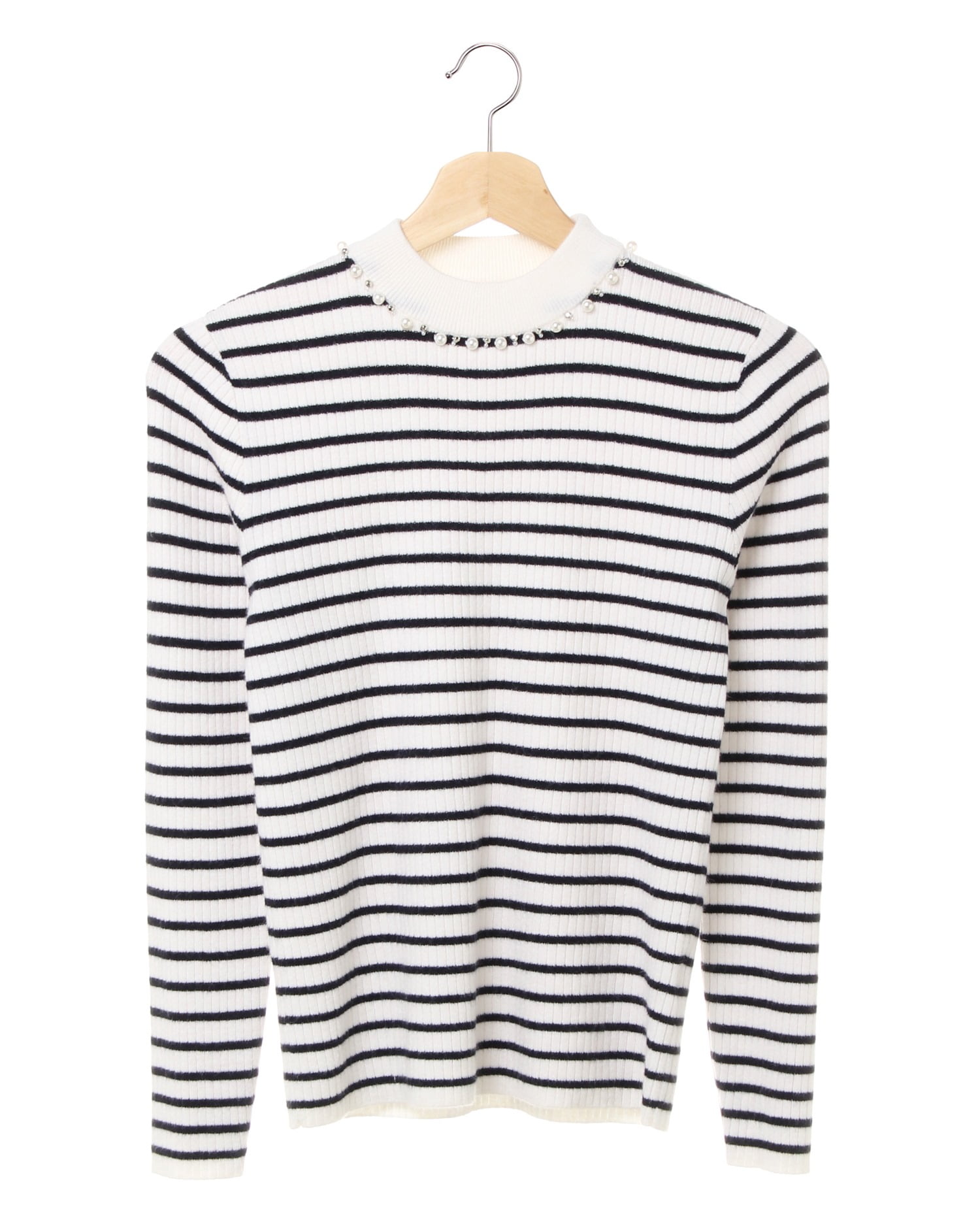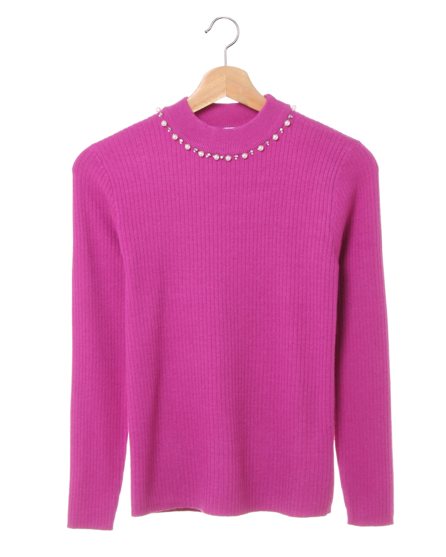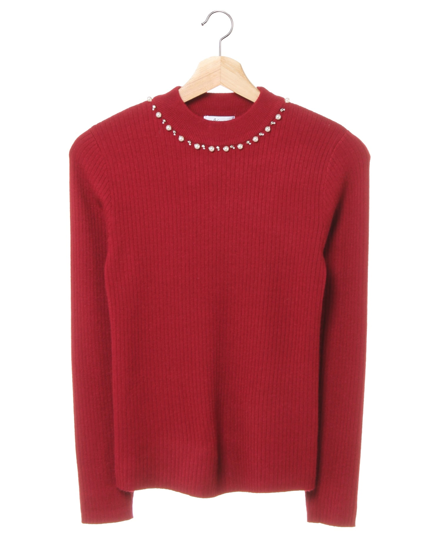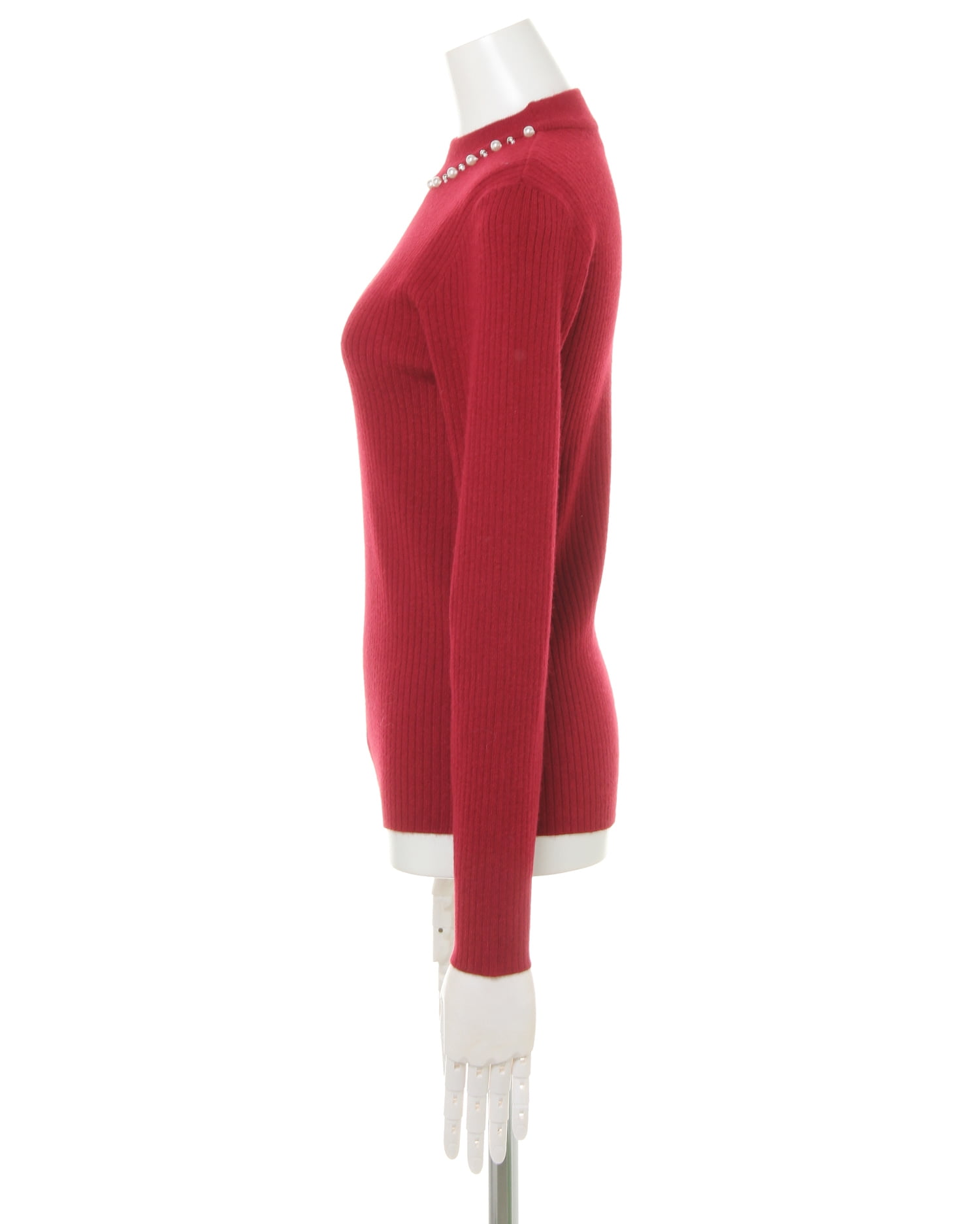 柔らかな肌ざわりとフィット感が着心地の良さを叶えるハイネックトップス。ネックラインにあしらったパールとビジュー装飾が、エレガントな女性らしさをプラス。アクセサリーのように顔周りを華やかに演出します。統一カラーは様々なコーデと好相性。着回し力抜群なので、デイリー使いに重宝すること間違いなしの逸品です。