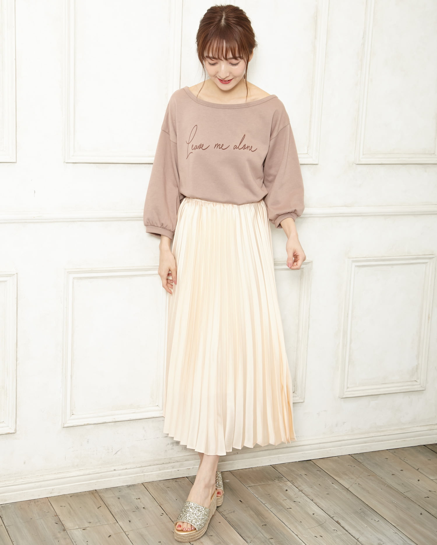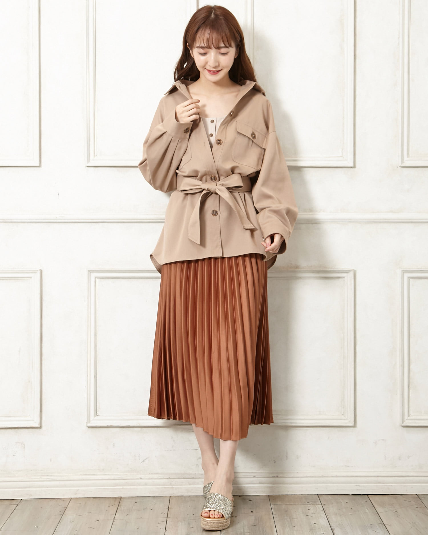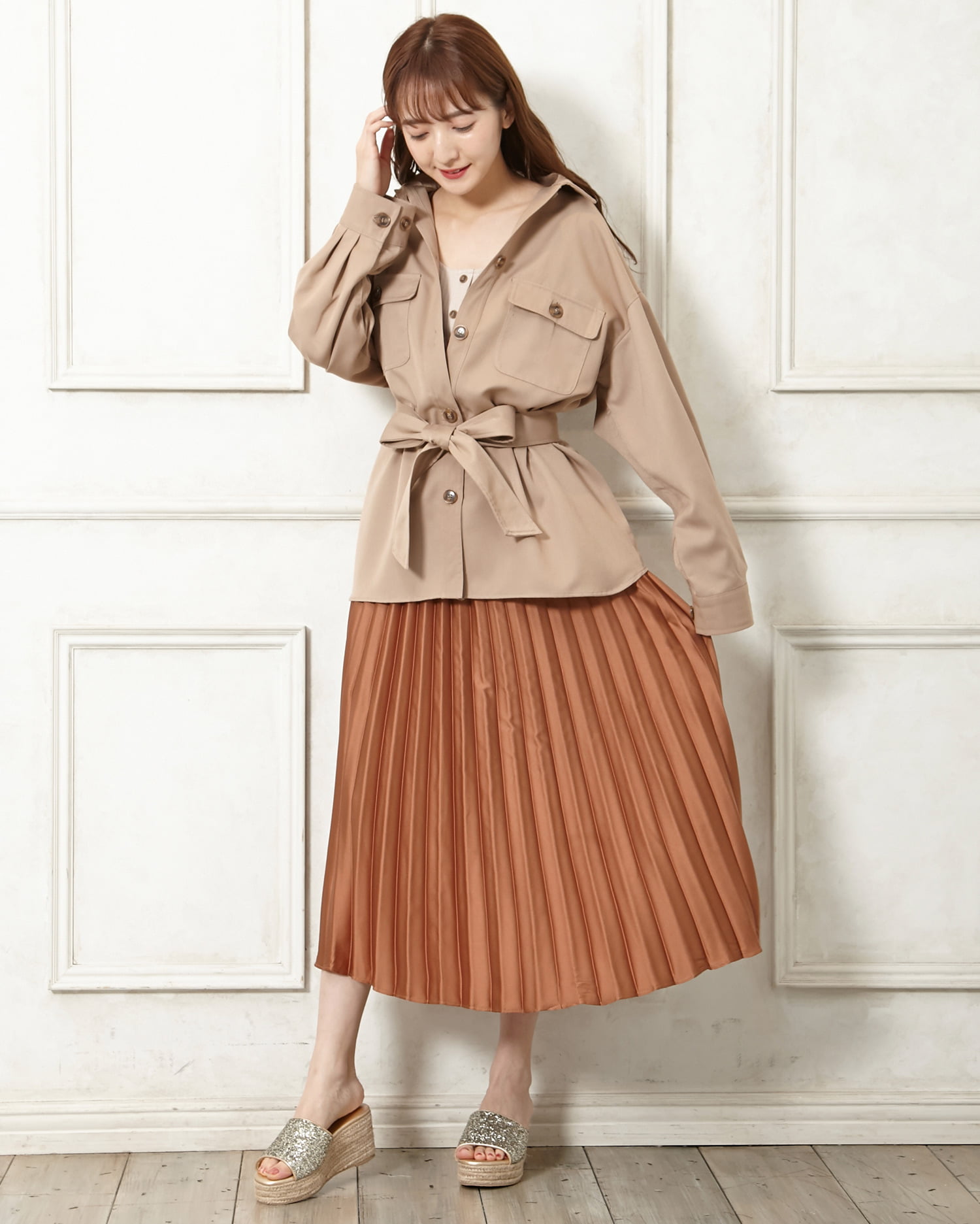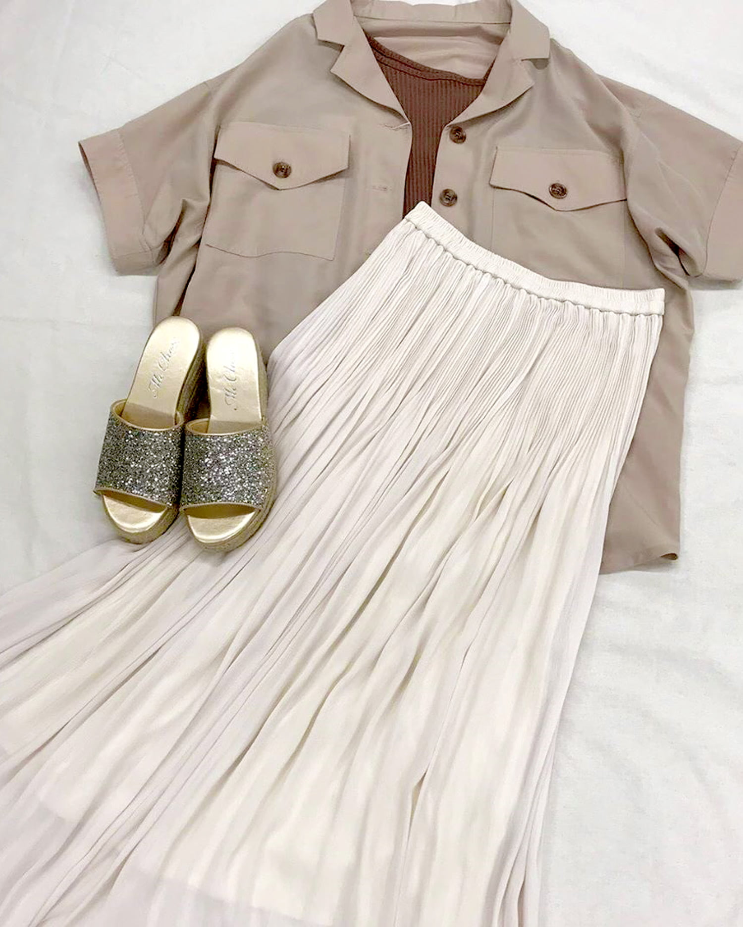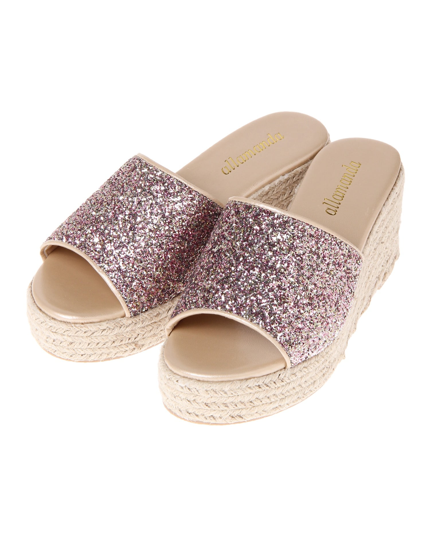 歩くたびにキラキラと光を反射するラメが足元を華やかに演出してくれるサンダル。アッパー部分をすっぽりホールドしてくれるワンバンドデザインで、脱ぎ履きがスムーズなのも魅力的。クッション性のあるインソールが歩行をアシスト。長時間の歩行も疲れにくい万能デザインです。ウエッジソールで安定感も抜群。ロング丈のふんわりスカートでフェミニンに履きこなして。