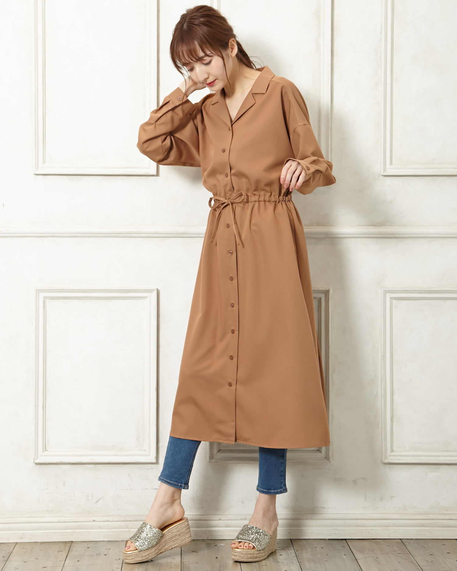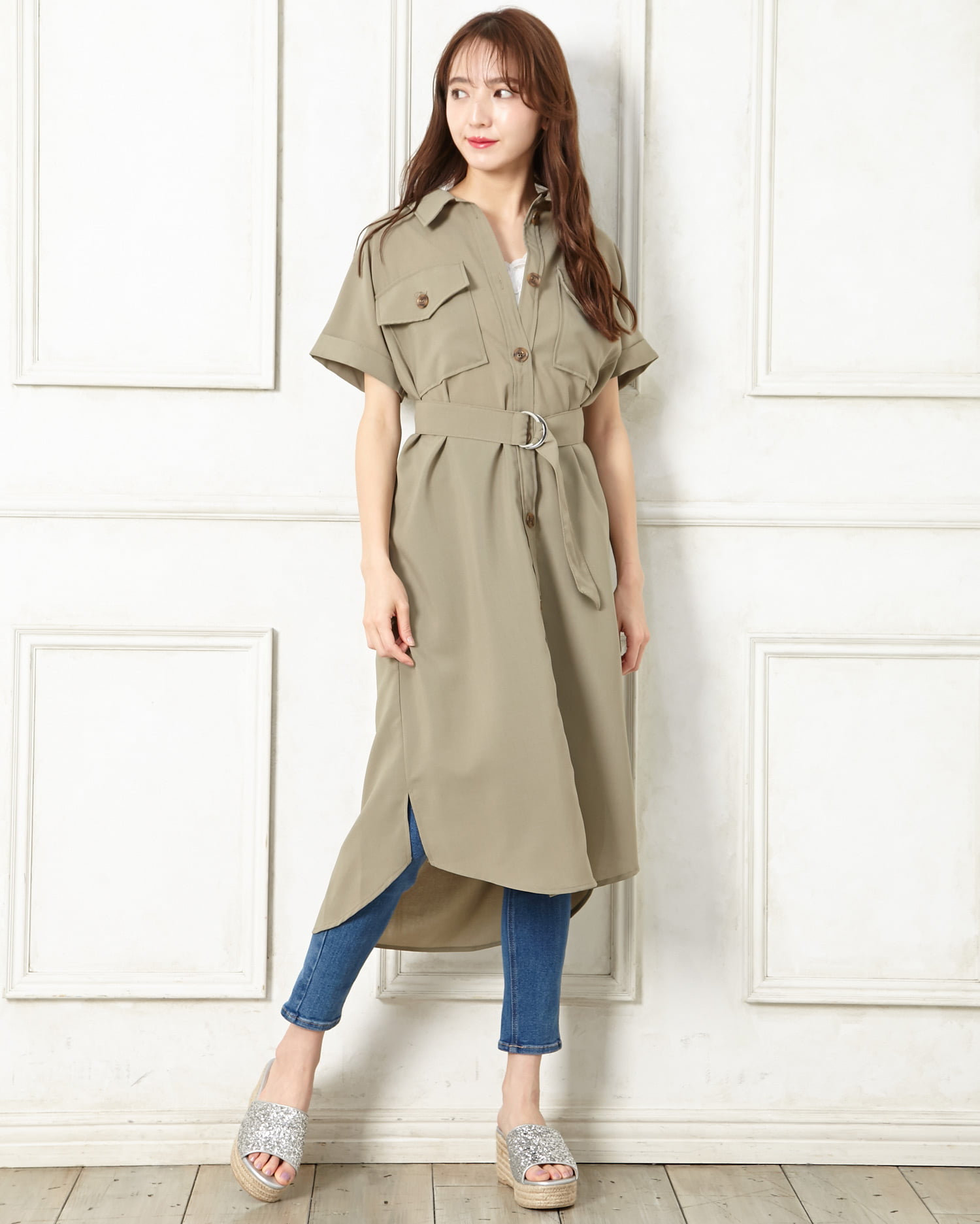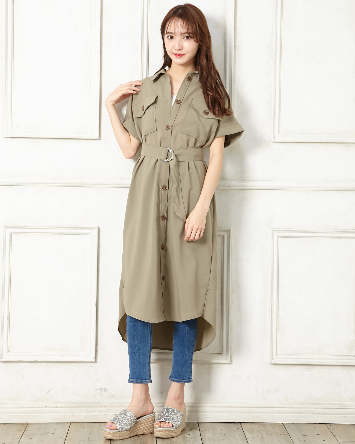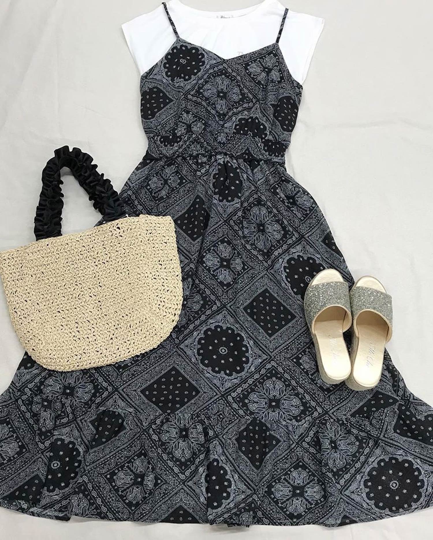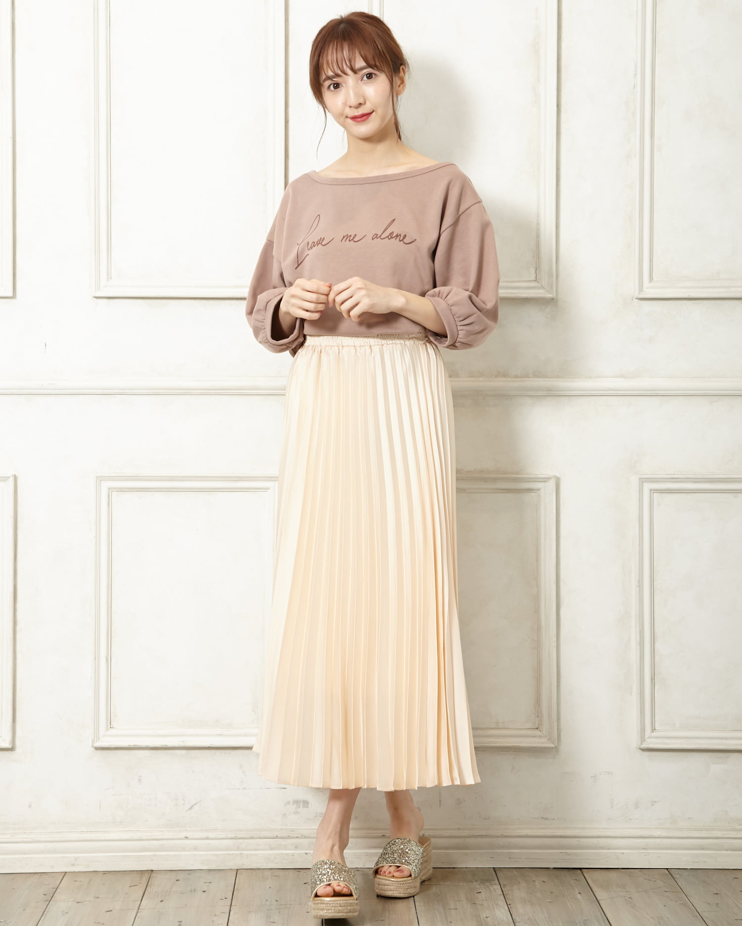 歩くたびにキラキラと光を反射するラメが足元を華やかに演出してくれるサンダル。アッパー部分をすっぽりホールドしてくれるワンバンドデザインで、脱ぎ履きがスムーズなのも魅力的。クッション性のあるインソールが歩行をアシスト。長時間の歩行も疲れにくい万能デザインです。ウエッジソールで安定感も抜群。ロング丈のふんわりスカートでフェミニンに履きこなして。