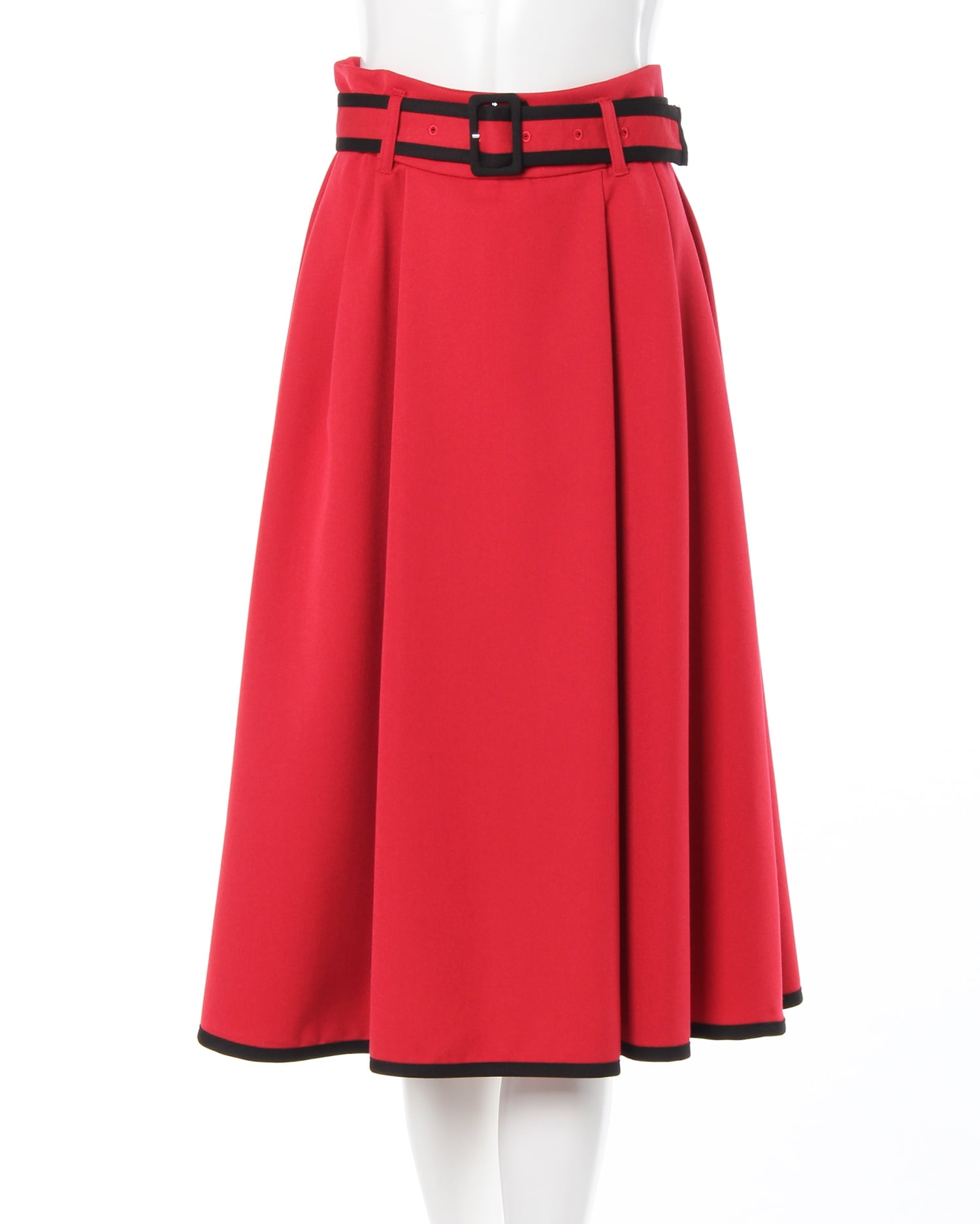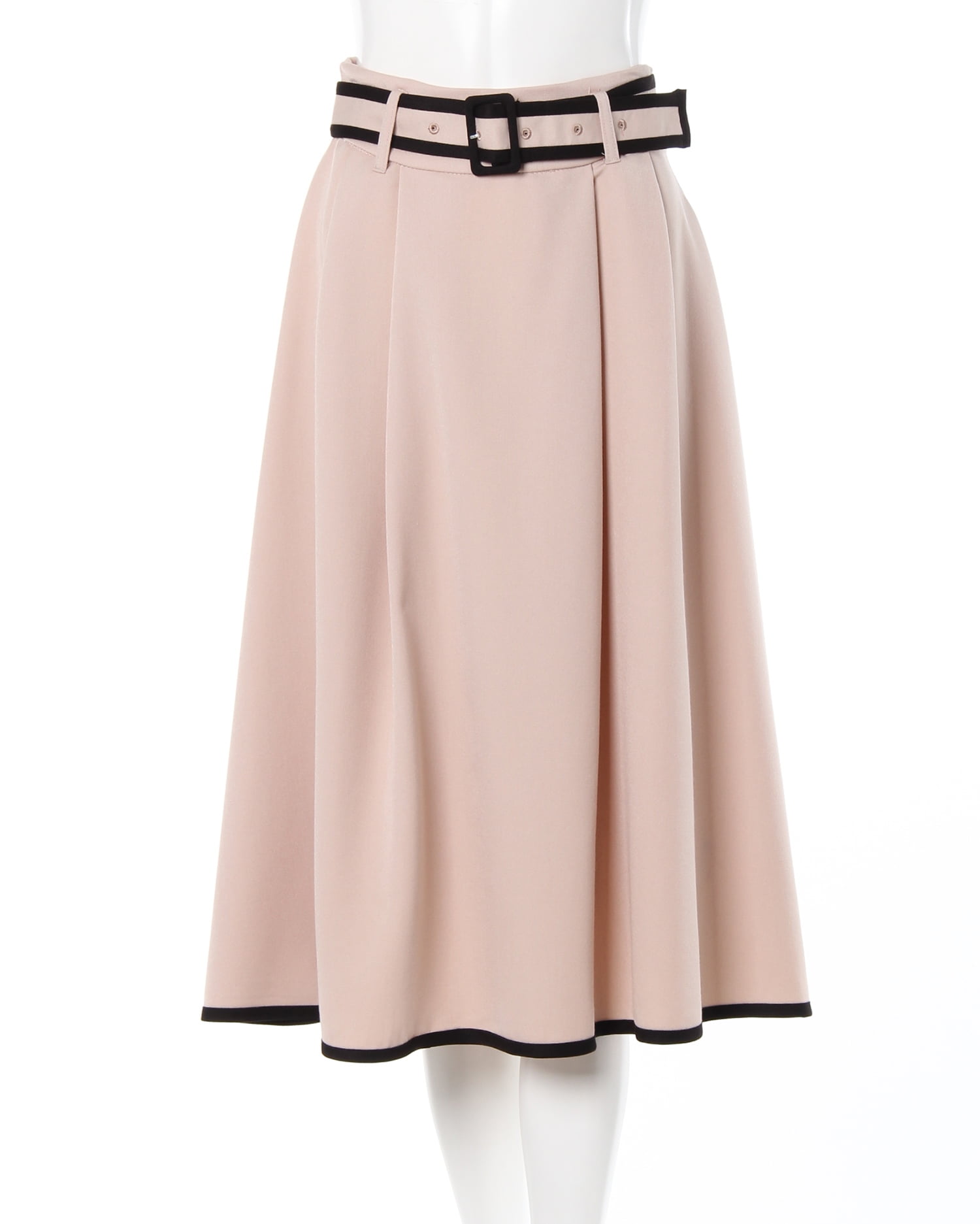 ウエスト下にタックを入れてふんわりとしたフレアーシルエットに仕上げたミディ丈のスカート。柔らかな素材はきちんと感もあり、オンオフ問わずに着回せます。バックウエストはゴムになっているので脱ぎ穿きも楽チン。ベルトと裾にはパイピングを入れてメリハリをプラス。ベーシックなカラーからアクセントになるカラーまで揃っているので、自分らしい1枚を見つけて。