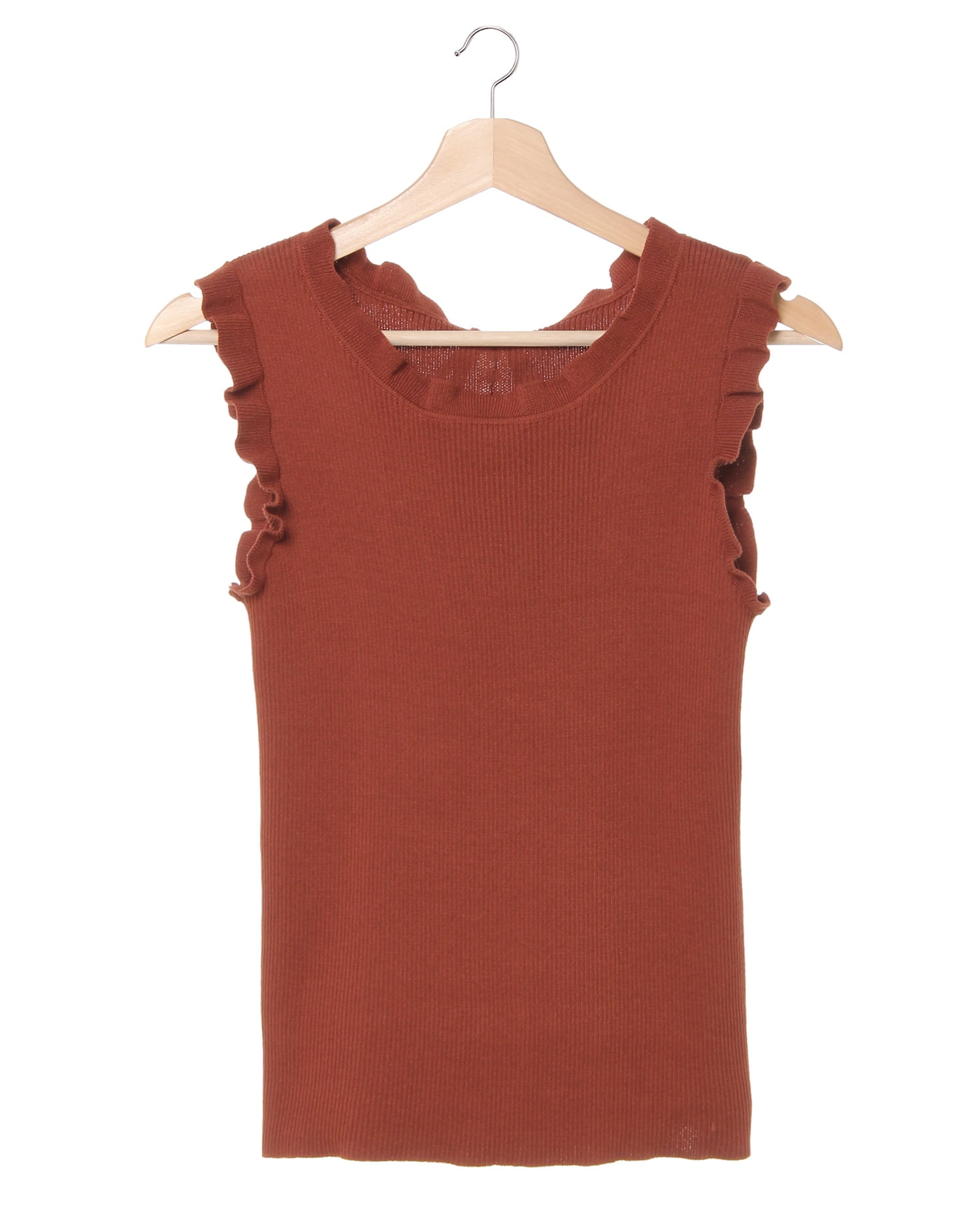 上半身をコンパクトにすっきり見せてくれるニットトップスは柔らかく肌触りの良い着心地にもこだわった1枚。ボディラインに沿いフェミニンで女性らしい着こなしに導きます。首元と袖口にはフリルをオン、コーディネイトにメリハリをプラスします。バックスタイルも抜かりないリボン&パール装飾にも注目。豊富なカラー展開も魅力的です。
