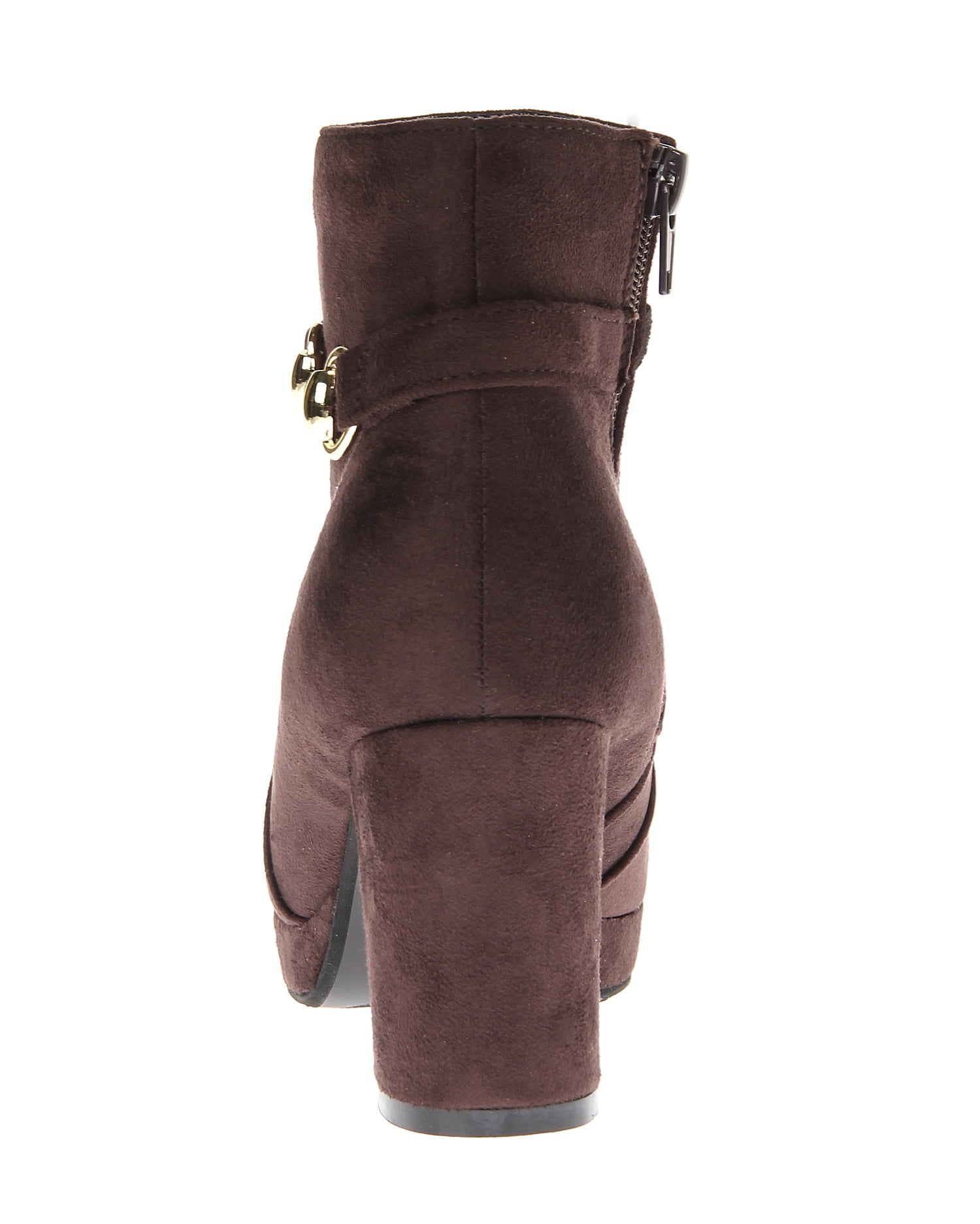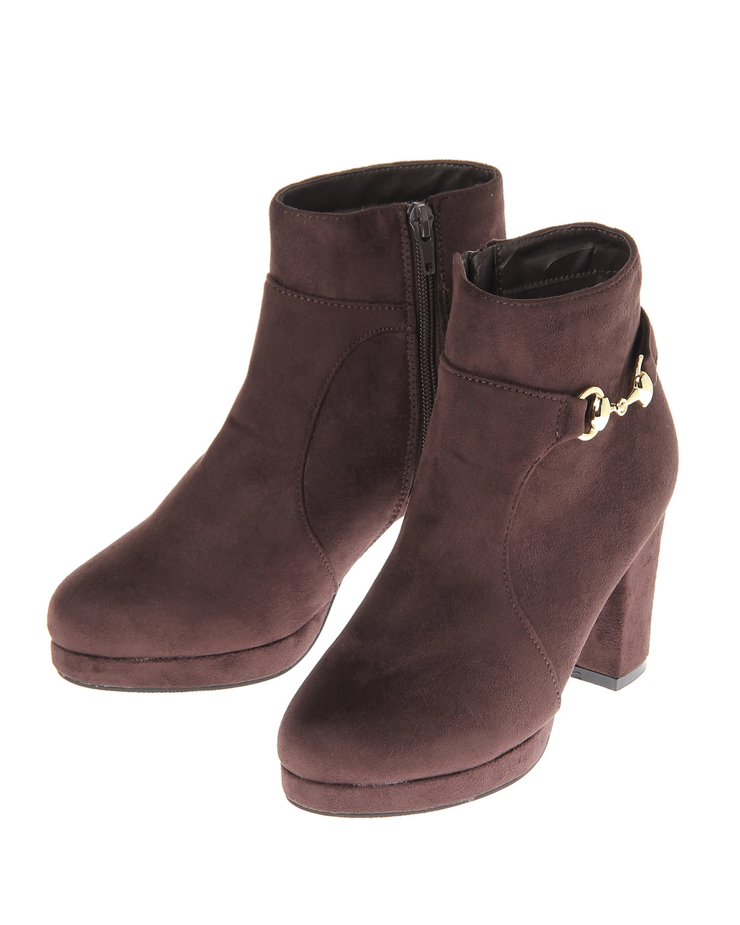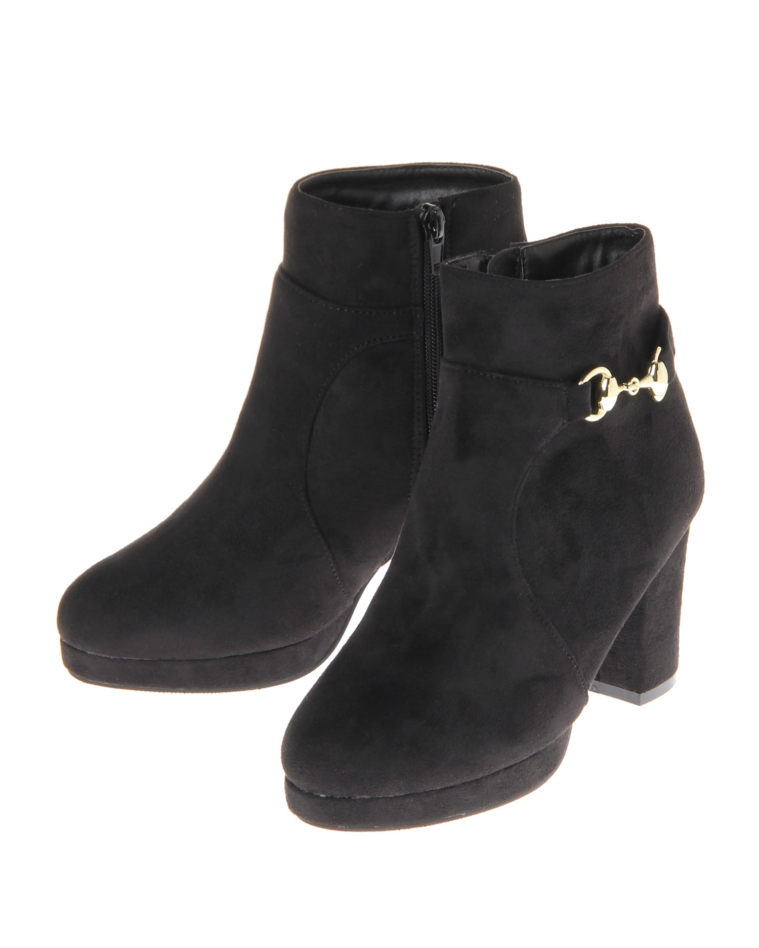 カジュアルからきれいめスタイルまで幅広いコーディネイトに取り入れやすいショートブーツは1つ揃えておくと重宝します。光沢を抑えたスウェード調素材にビット使いが大人っぽくリュクスな印象に。高めのヒールながらストームに厚みがあるので長く履いても疲れにくく、脚長効果も叶えてくれます。サイドジップで脱ぎ履きしやすいのも魅力。デイリーユースに活躍します。