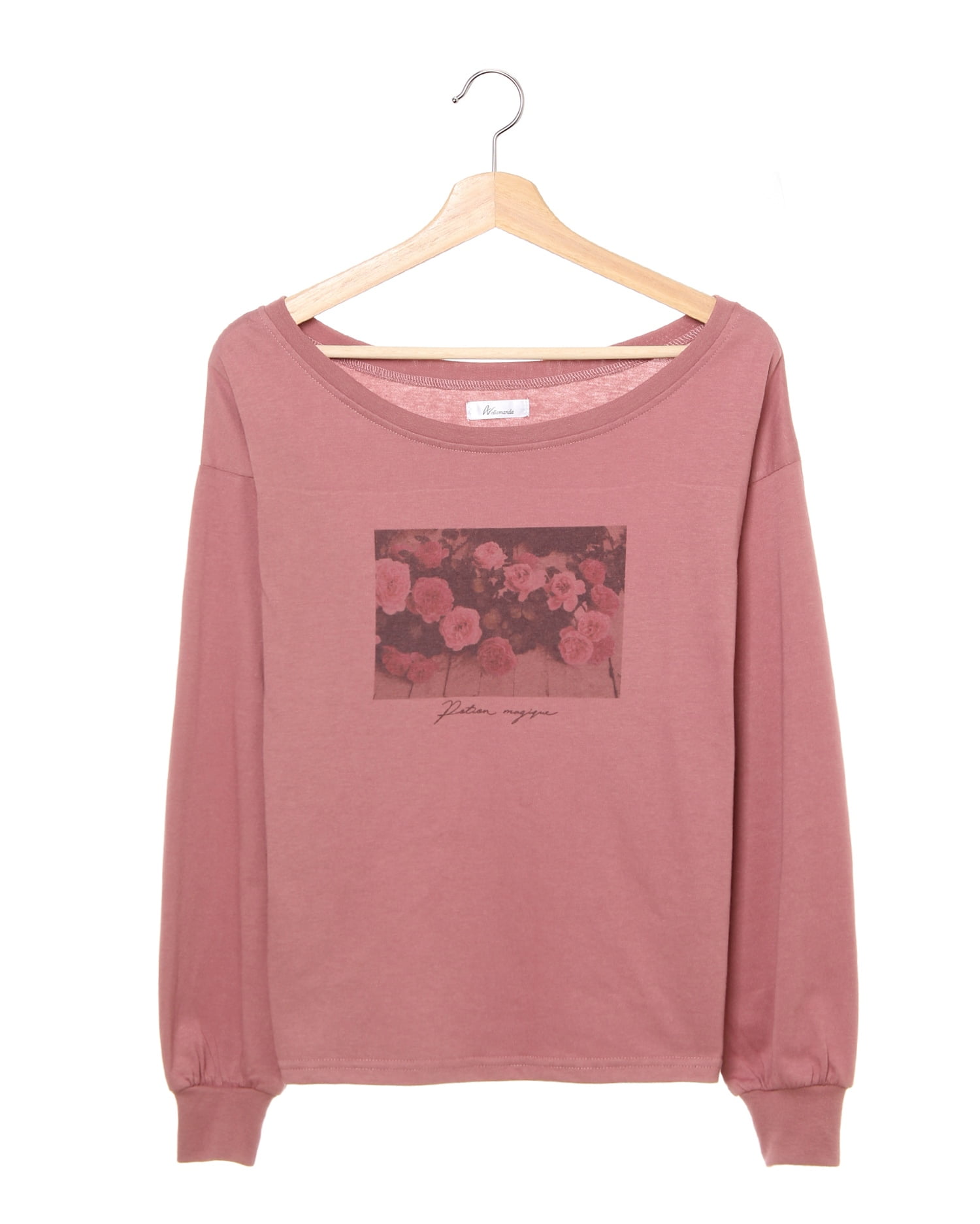 ゆったりめのシルエットで今年らしい着こなしが完成するロンTはワードローブの必須アイテム。程よい厚みの生地は柔らかく、着心地も快適。スイッチ期から長く活躍します。フロントにあしらったフェミニンなフォトプリントがアクセントに。袖はふんわりとボリュームを持たせ、柔らかな雰囲気に仕上げています。程よい裾丈はトップスインスタイルも◎。