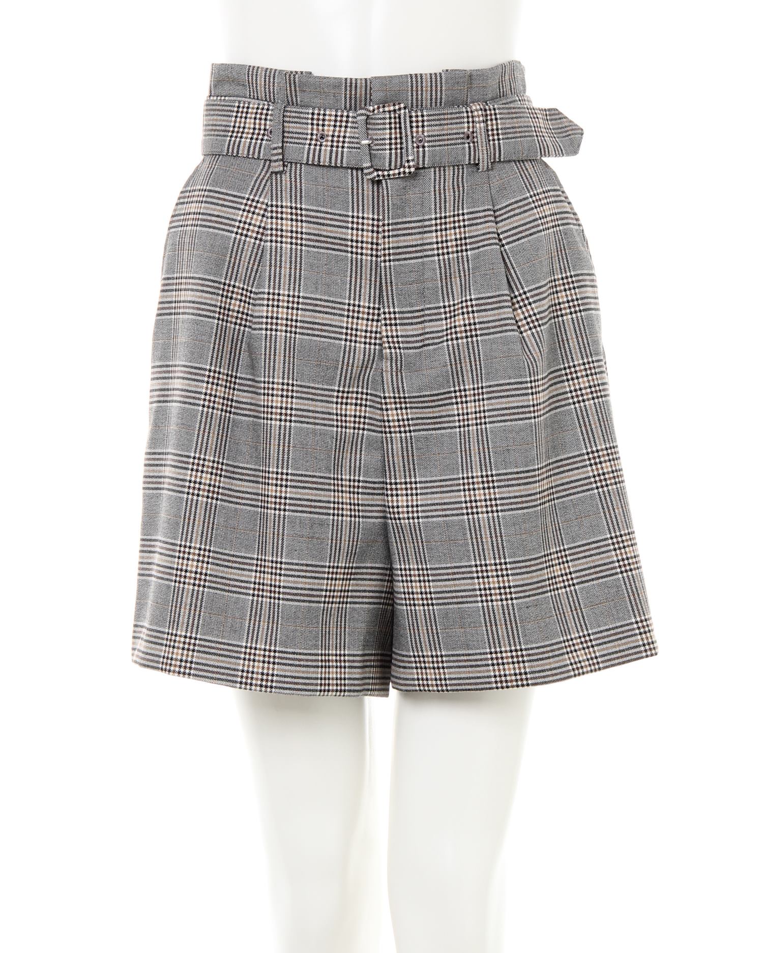 落ち着いたトーンのチェック柄でマニッシュなスタイルが大人っぽく決まるショート丈のパンツ。脚長効果も狙える裾に向かって広がるシルエットが魅力的です。程よく広めな裾幅でアクティブな動きにも対応。ほんのりハリのある素材がきれいなラインをキープしてシワになりにくいのも嬉しい、普段使いに重宝します。ウエストマークに便利な共布のベルトが付き。