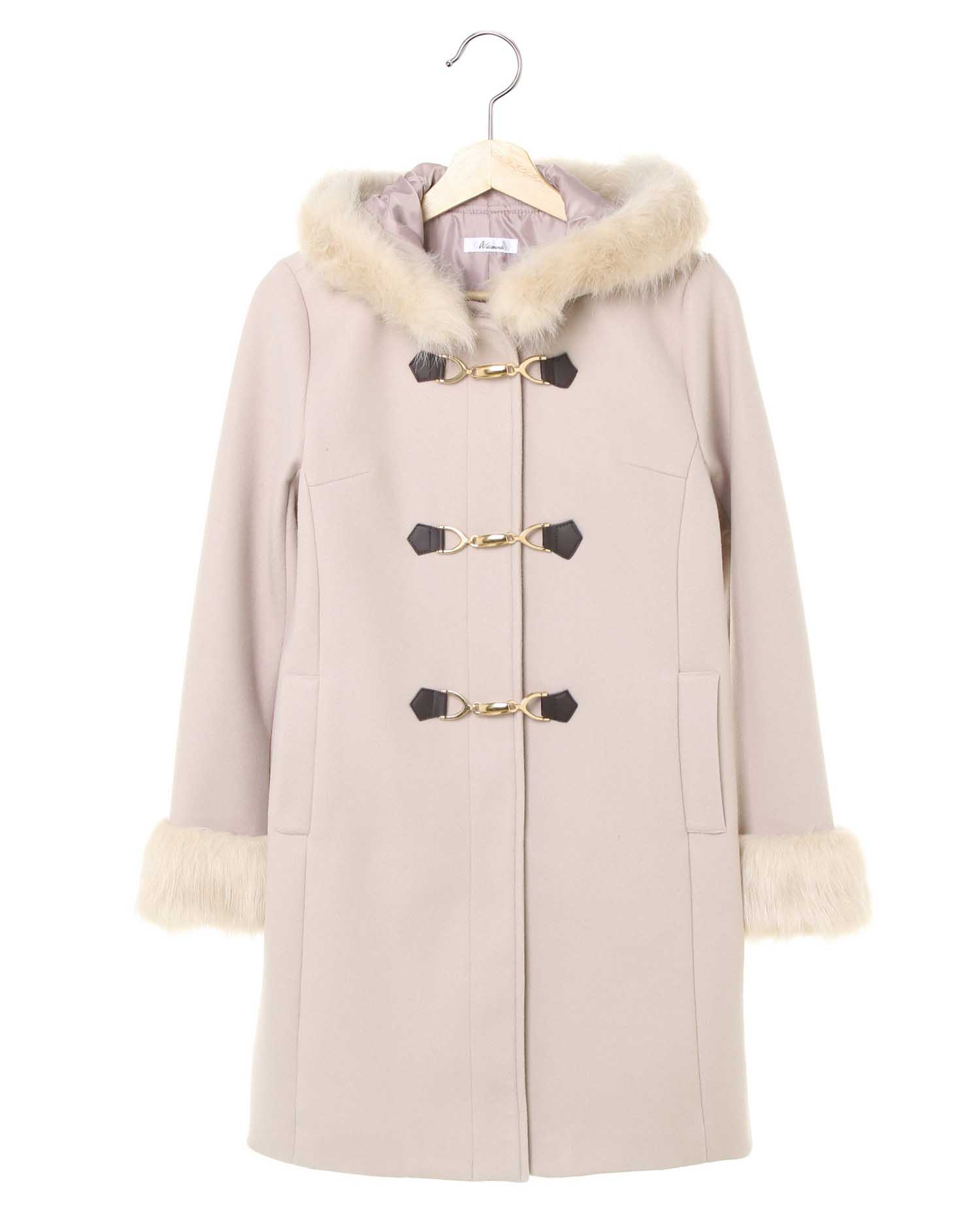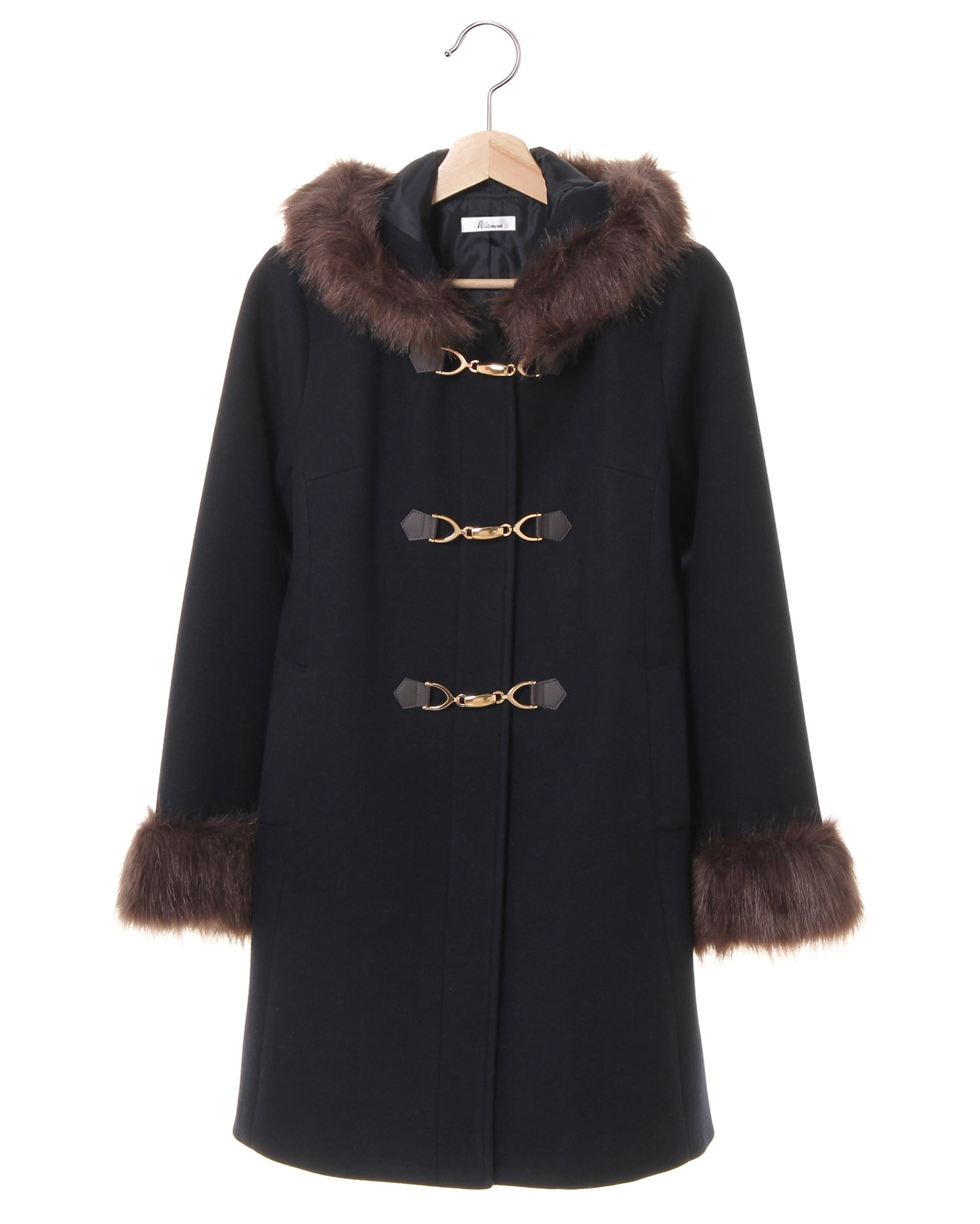 かっちりとしたハリ感のある生地とほんのり広がるAラインがフェミニンな印象のハーフコート。ヒップを包み込む丈感は暖かく、スカートにもパンツにもバランス良く合わせられます。すっきりとしたシルエットにフード部分と袖口のファーがアクセント。上品な胸元のビットデザインも見逃せません。ファーはどちらも取り外しが可能なのでシンプルなフードコートとしても着用できます。