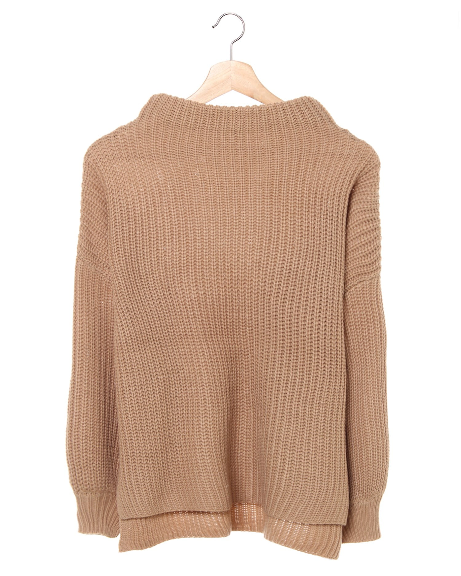 ざっくり編まれた編地とゆったりシルエットでトレンド感のある着こなしが叶うボトルネックニット。シンプルなワンカラーながら着るだけでサマになる計算されたシルエットが魅力です。モックネックで小顔効果も期待。裾サイドにはスリットを入れ、前後差を付けることで長めの裾もバランス良く合わせられます。ガーリーなスカートと合わせたフェミニンなスタイルがオススメ。