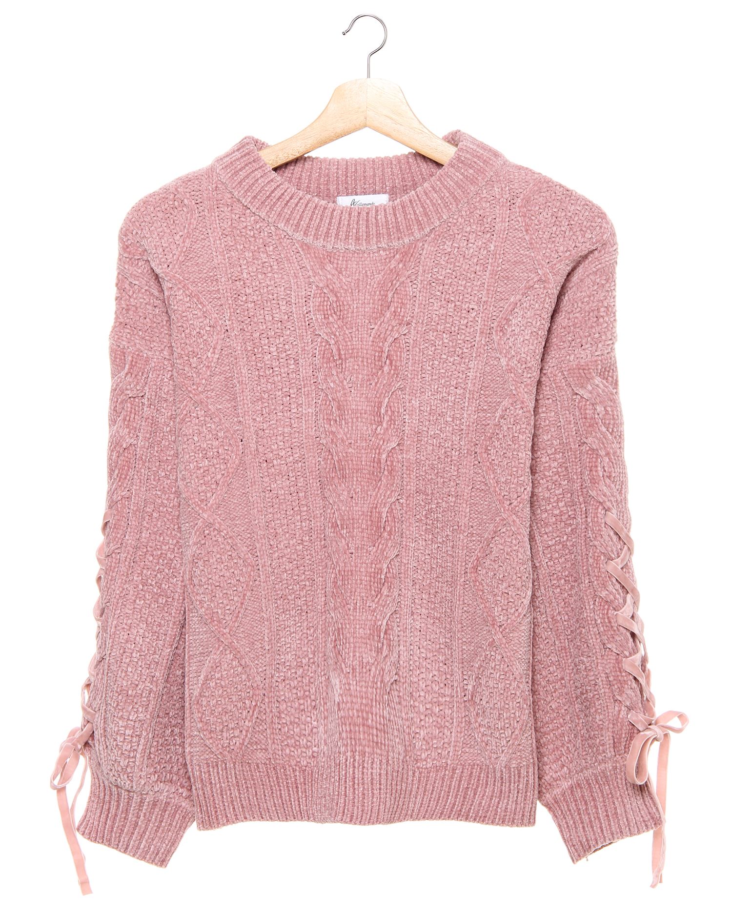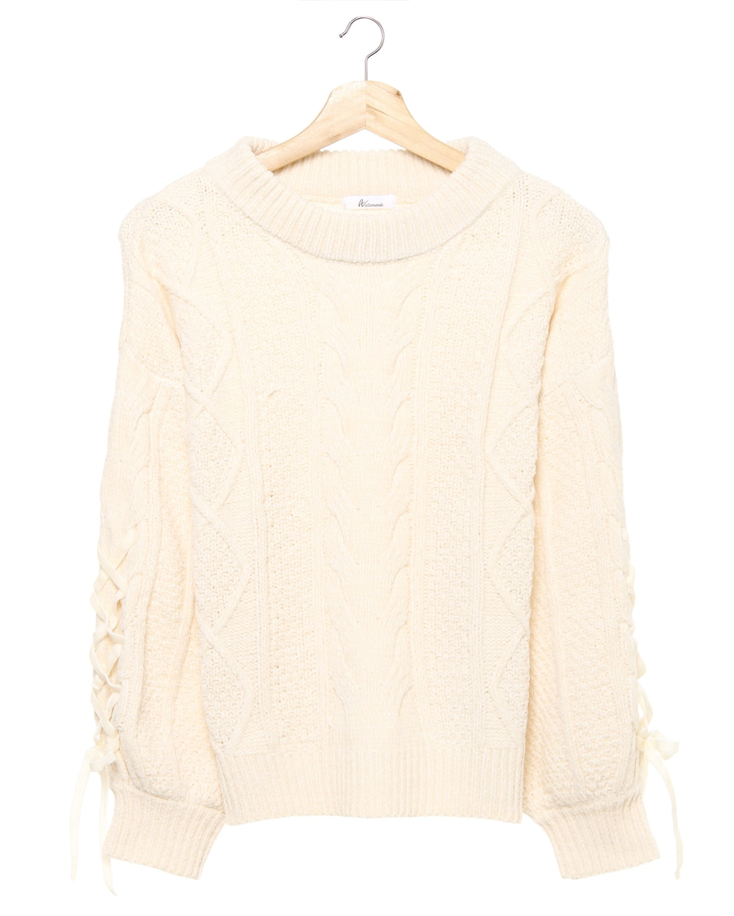 ほんのり光沢のあるブライトモールで仕立てたニットトップス。すっきり開いたネックラインとボリュームスリーブの組み合わせで計算された愛されシルエットが完成します。程よい裾丈はどんなボトムスにも相性抜群。なめらかで暖かな素材は着心地も快適です。シンプルなワンカラーも表情のある着こなしに。ベロア素材のレースアップデザインでキュートな雰囲気をプラスしています。