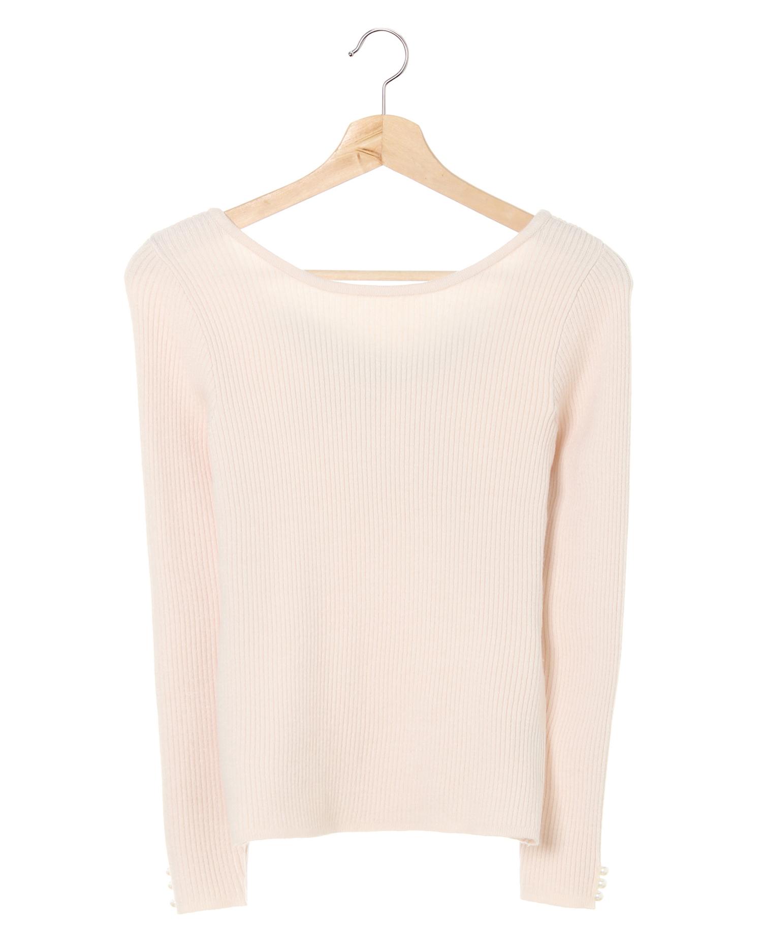 キュートなバックリボンが魅力のニットトップス。フロントはシンプルなクルーネックで合わせやすくなっています。ふんわり肌触りの良いリブニットがボディラインに沿い、すっきりとした着こなしに。袖口にはパールビジューでアクセントをプラスしています。背中の配色リボンで後ろ姿も抜かりなし。長めの裾丈でトップスインスタイルも快適です。