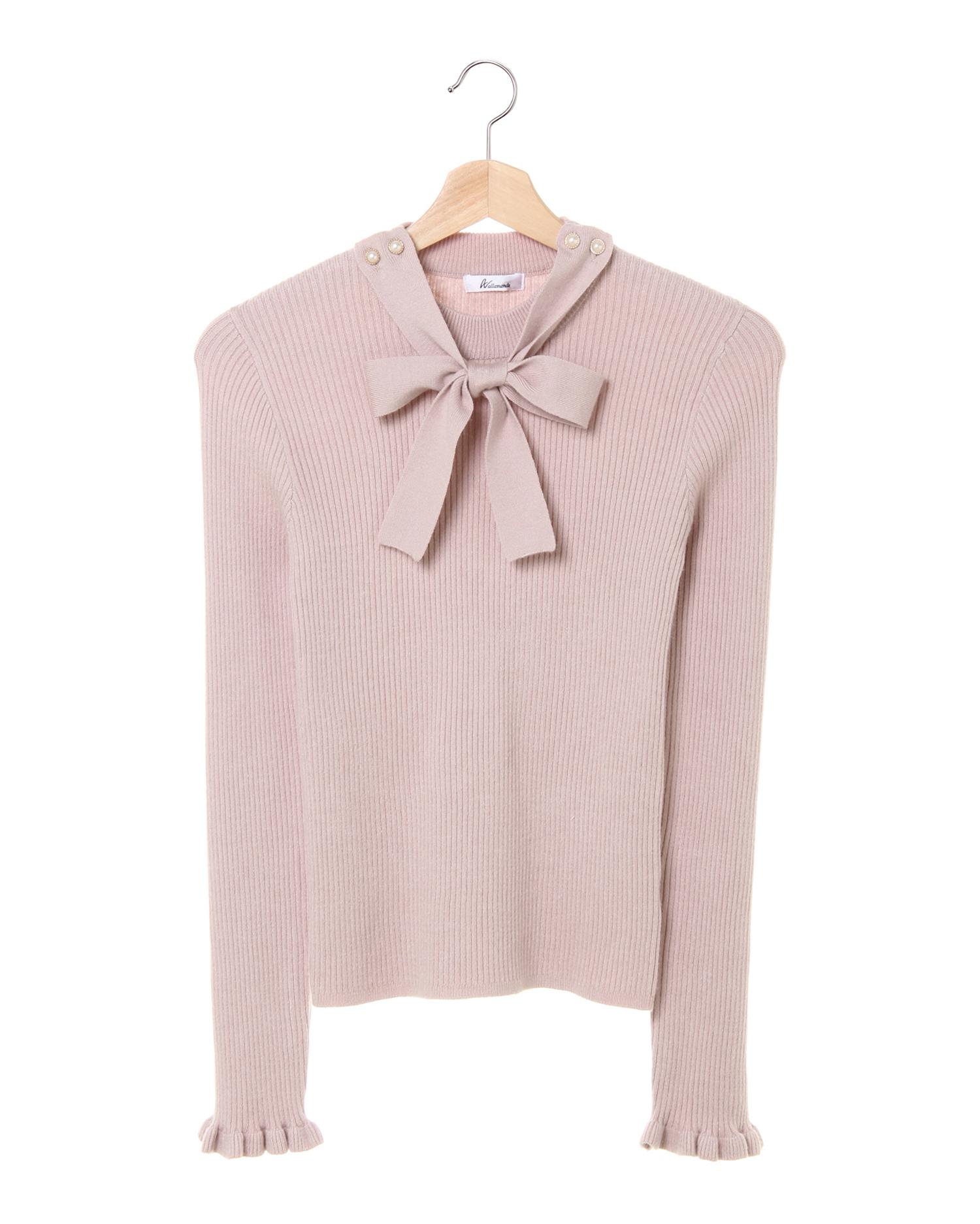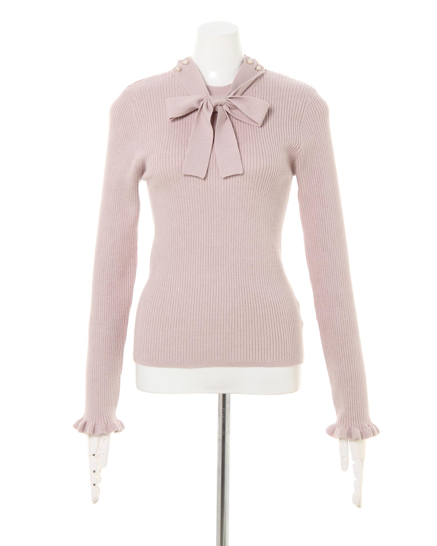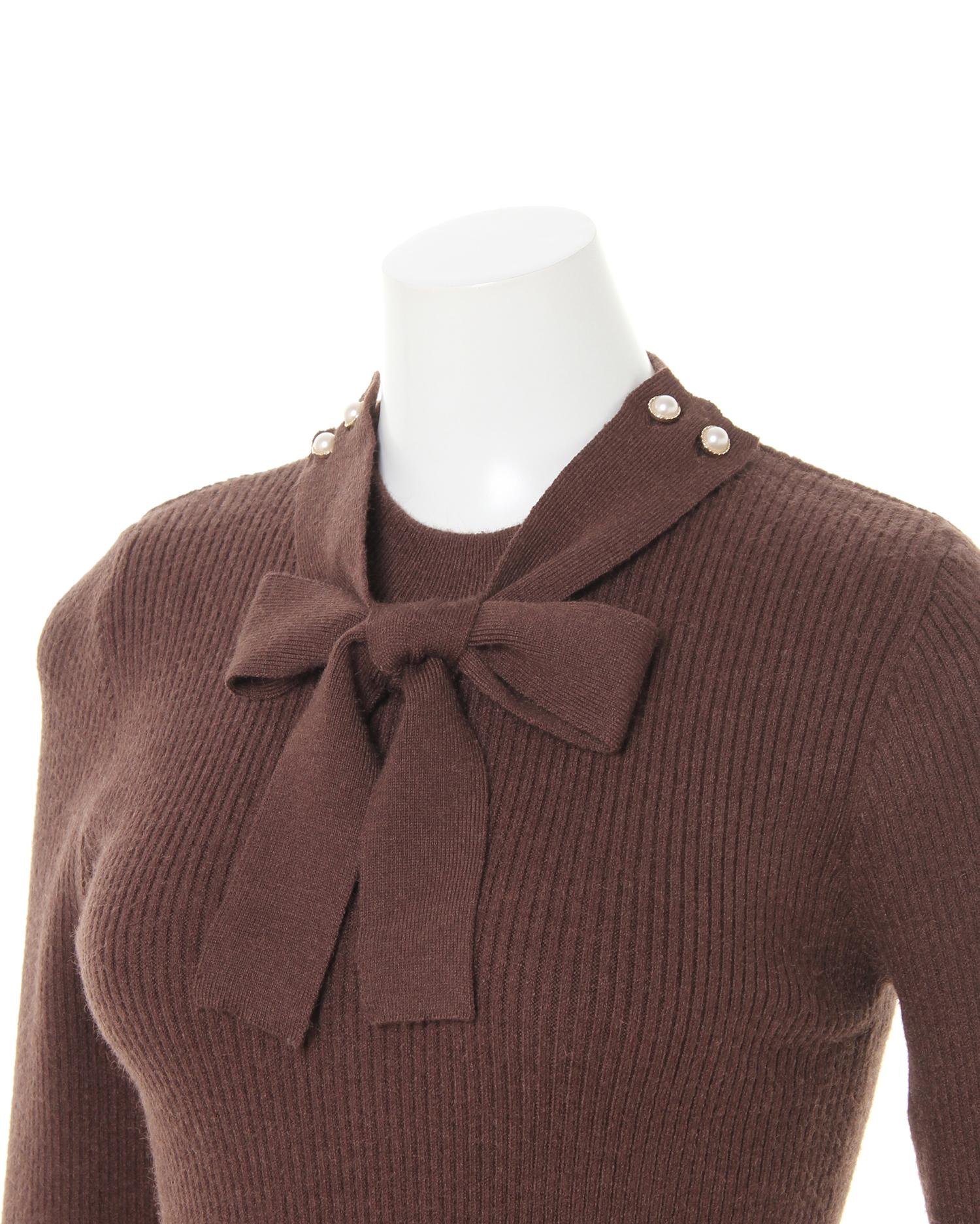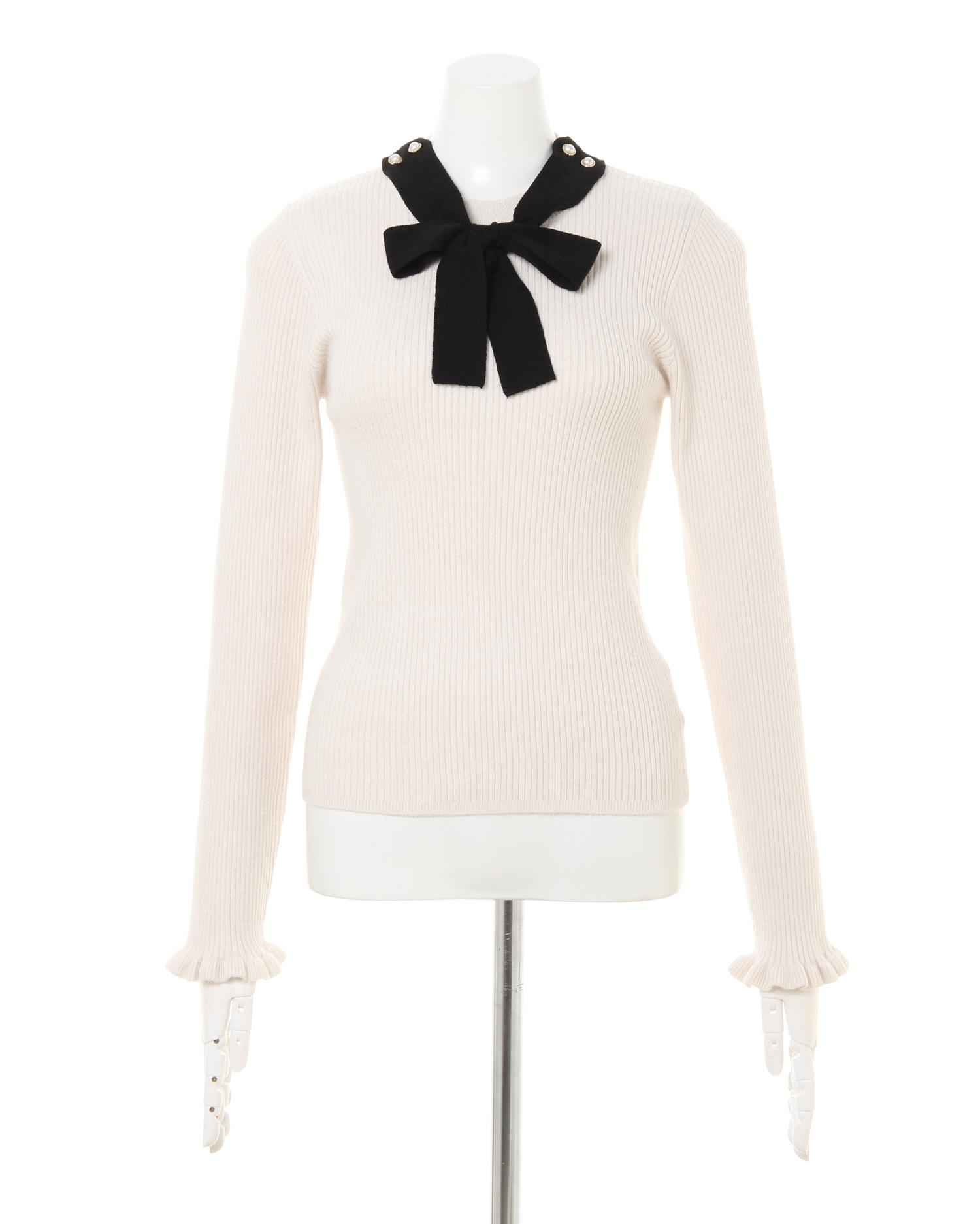 シンプル&ベーシックなリブニットはボウタイデザインが新鮮。ボディラインに沿うコンパクトなシルエットでスタイルアップも狙えるアイテムです。パールビジューが大人っぽいボタンで取り外し可能なボウタイ付き。きちんと感があるのでオフィススタイルにもおすすめです。袖口には控えめフリルでフェミニンなアクセントをプラスしています。