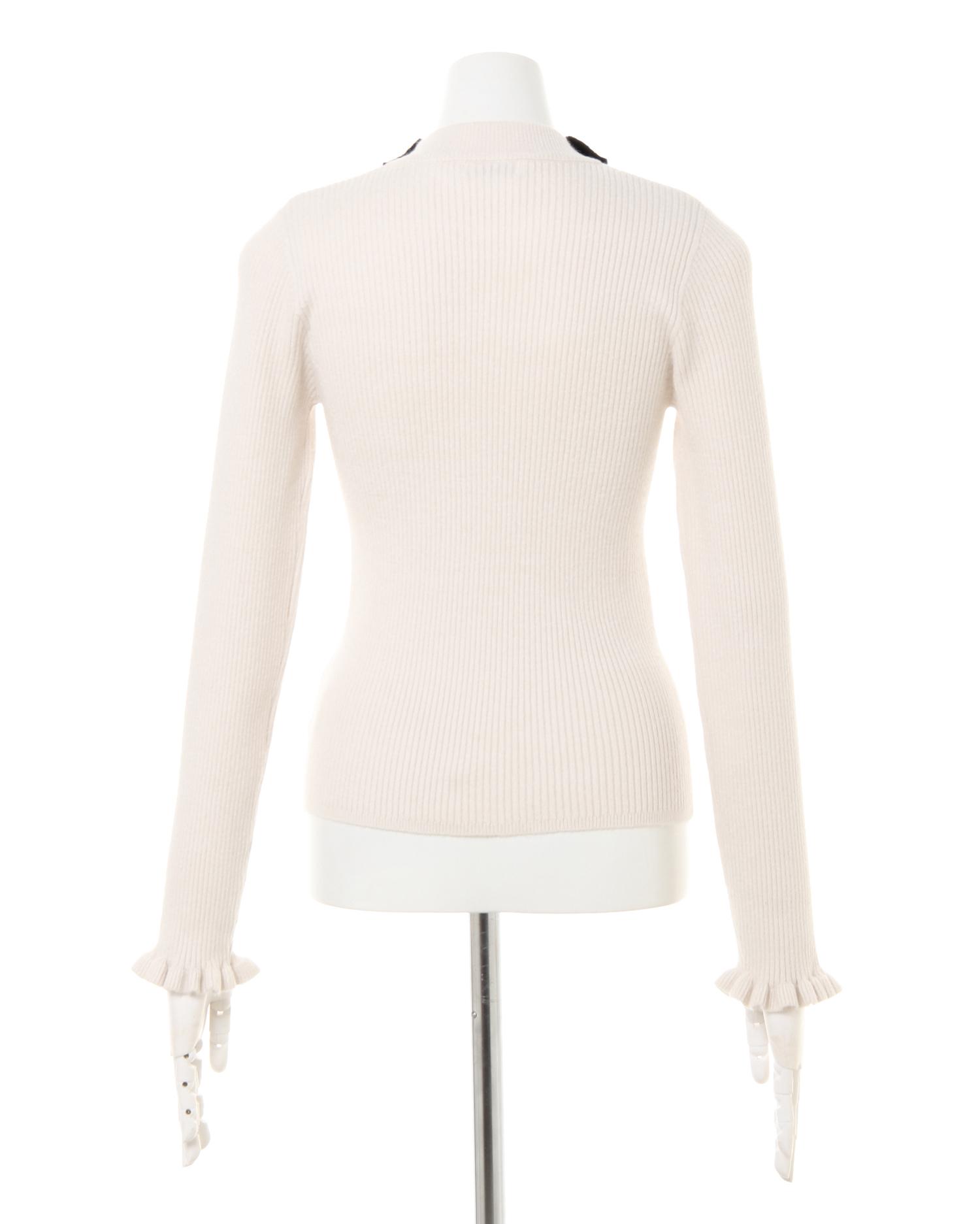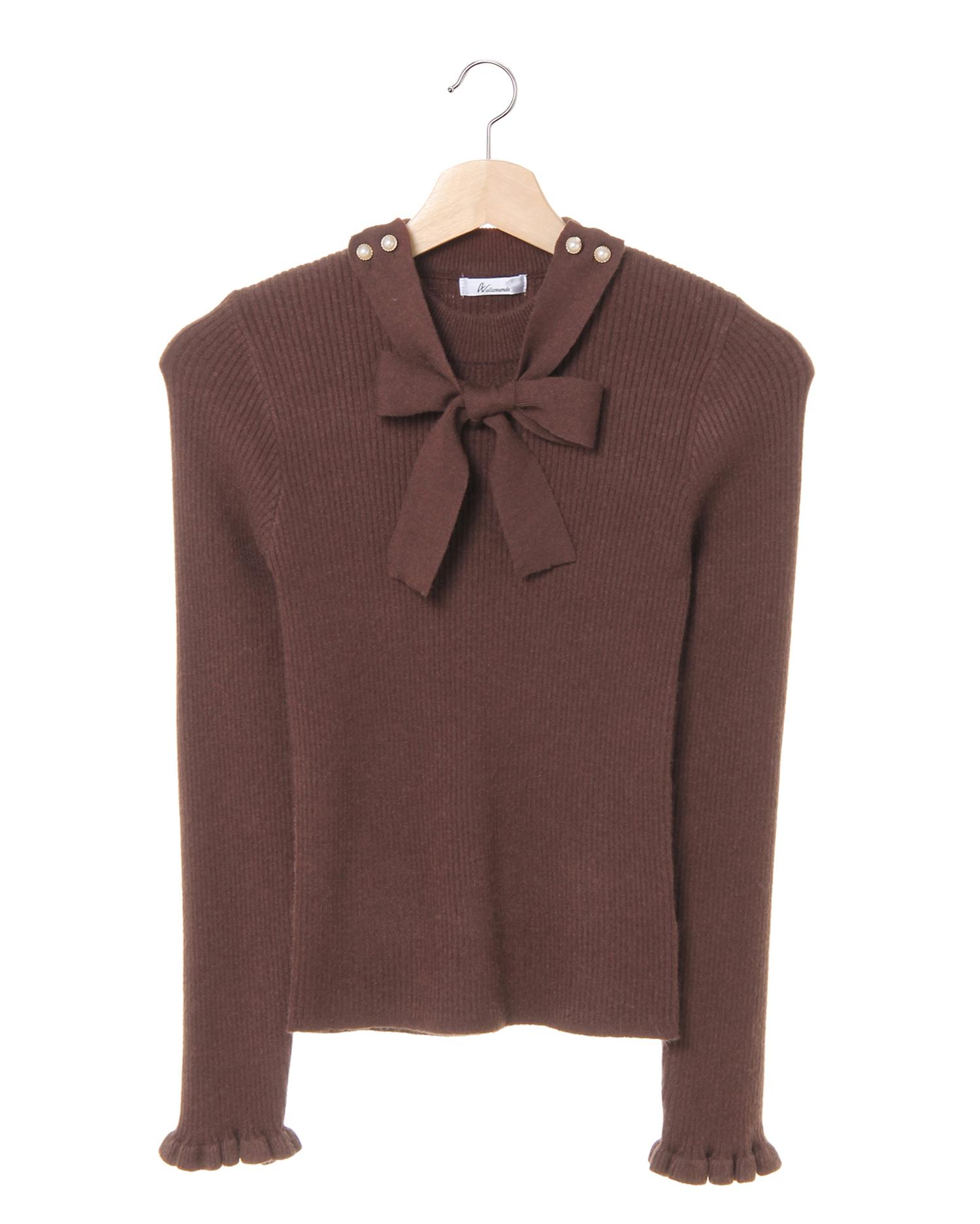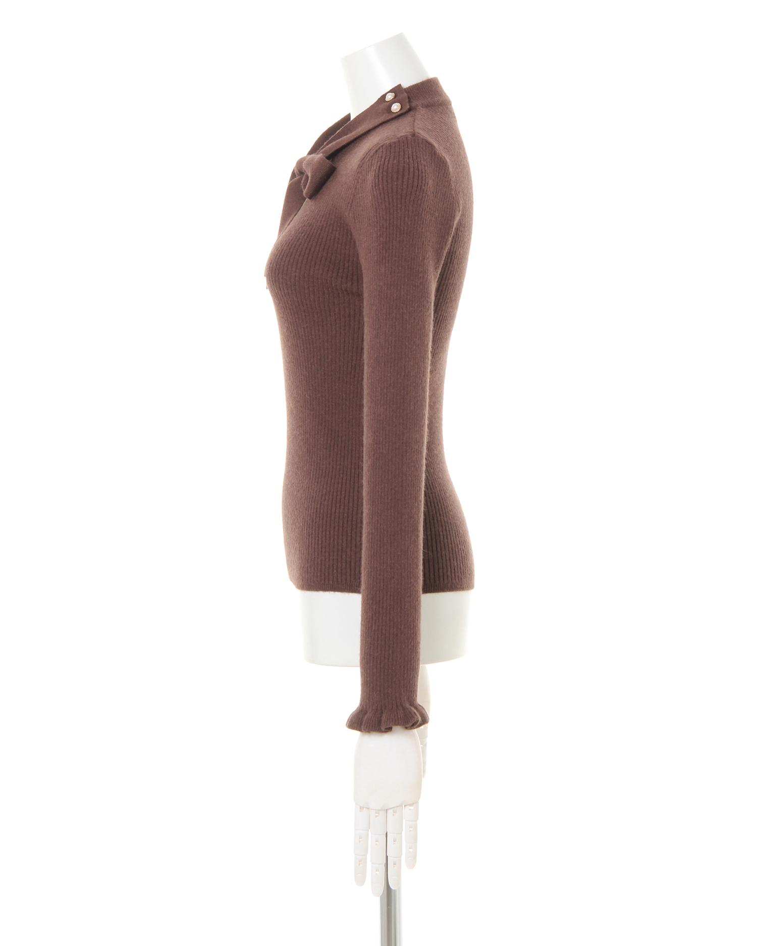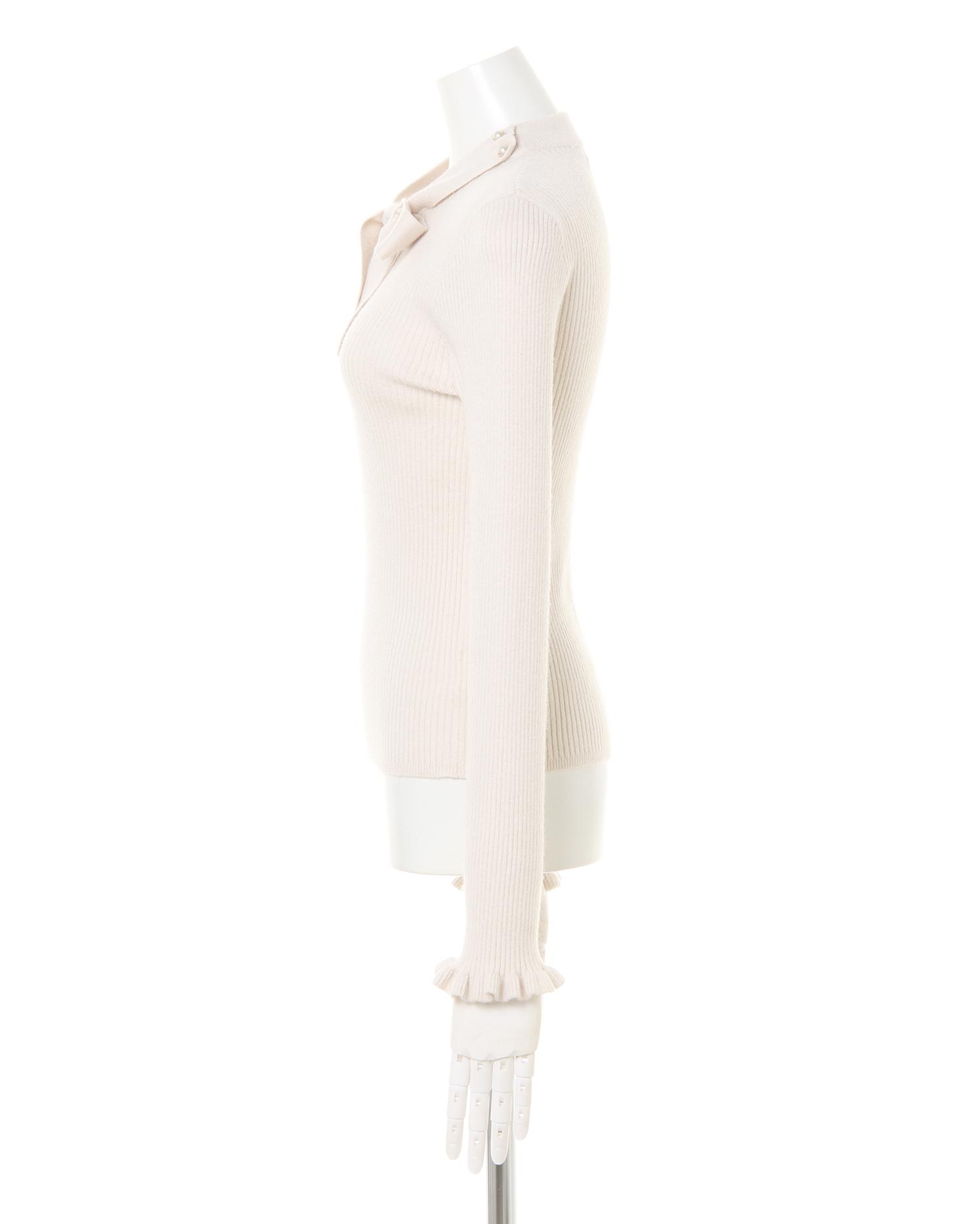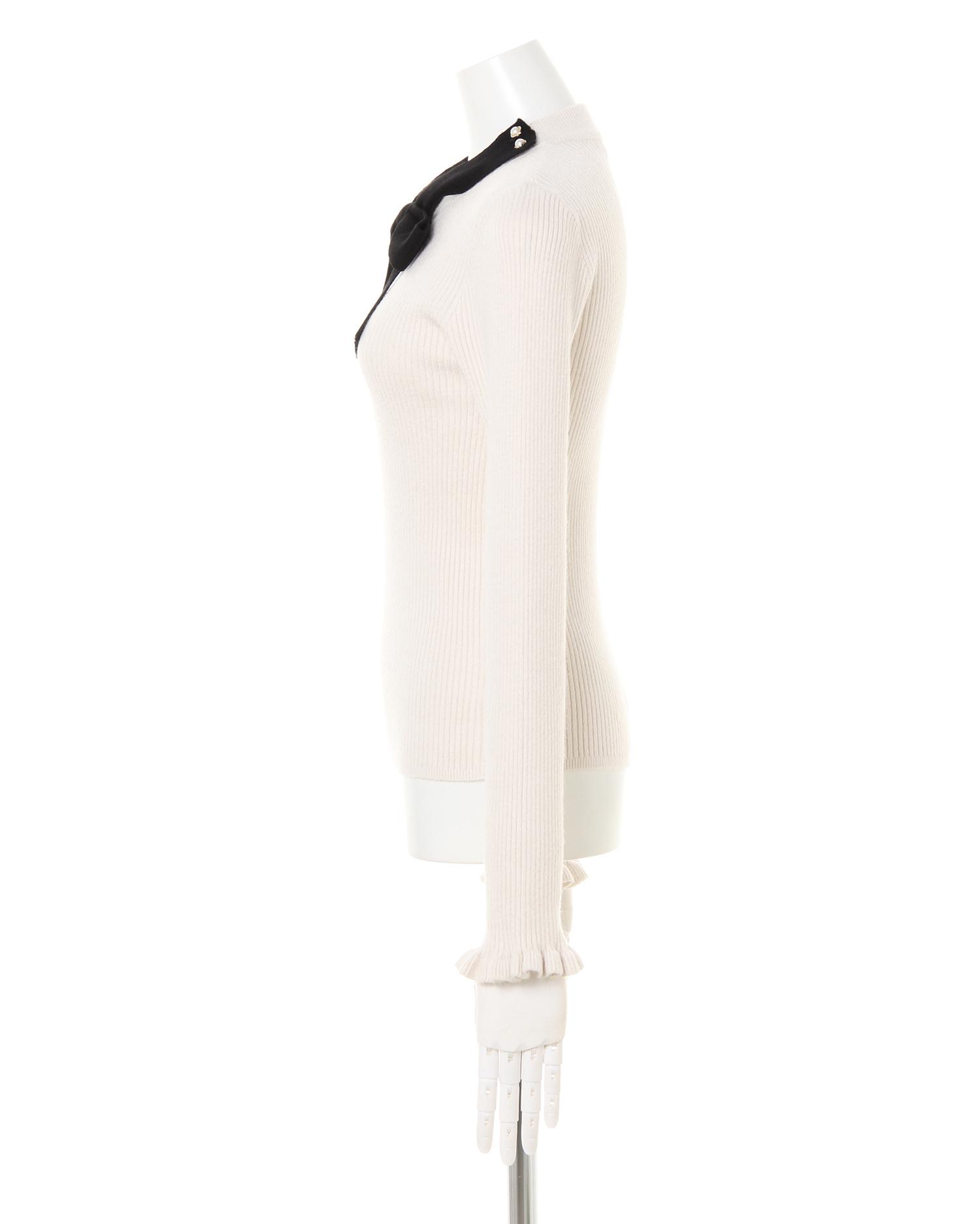 シンプル&ベーシックなリブニットはボウタイデザインが新鮮。ボディラインに沿うコンパクトなシルエットでスタイルアップも狙えるアイテムです。パールビジューが大人っぽいボタンで取り外し可能なボウタイ付き。きちんと感があるのでオフィススタイルにもおすすめです。袖口には控えめフリルでフェミニンなアクセントをプラスしています。