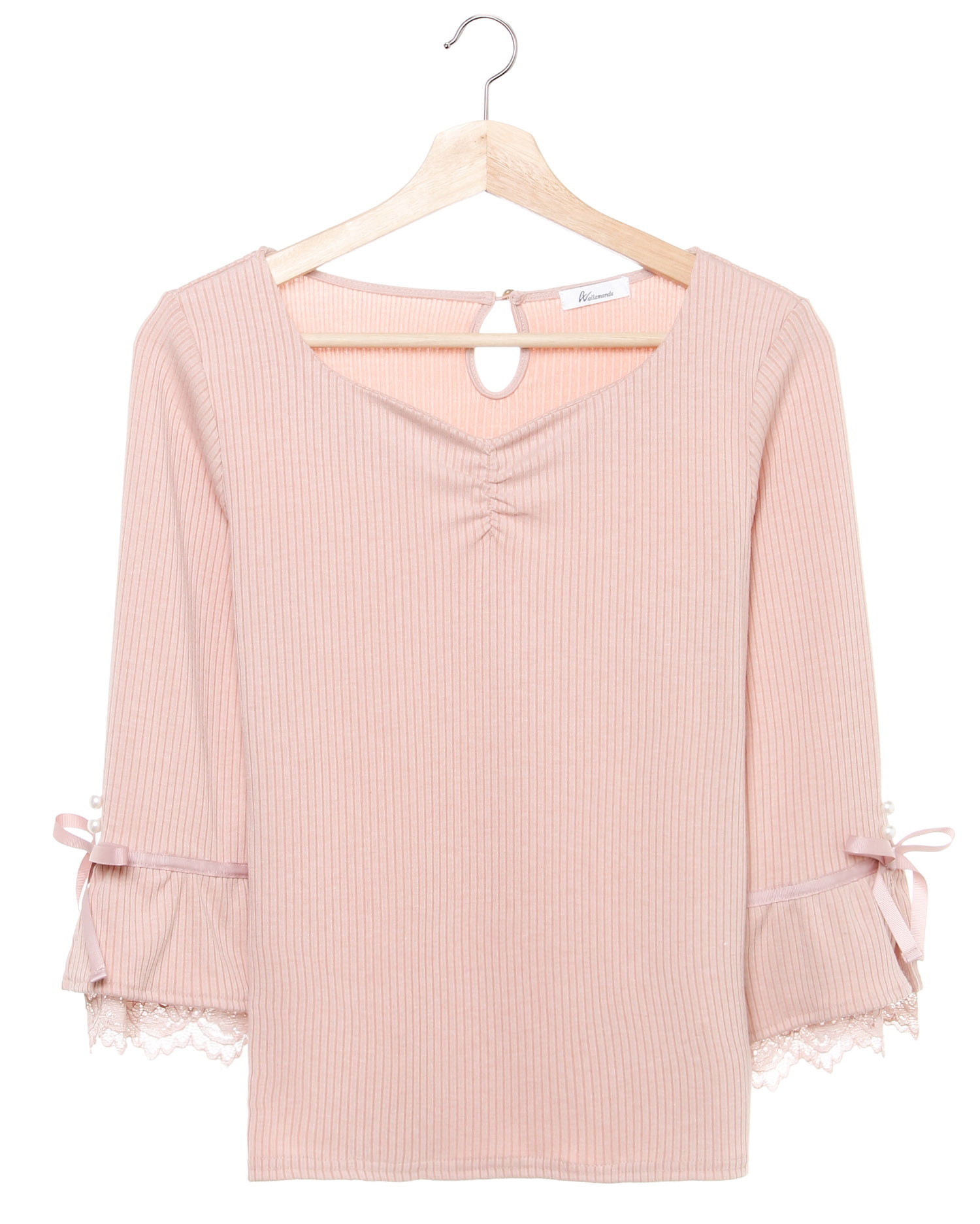 キュート&スウィートなリブトップスはやわらかな生地で着心地抜群。細めのリブがボディラインに沿い、スタイルアップも狙えます。バスト部分にはギャザーを入れているのでメリハリのある着こなしが完成。ヒラリとしたスリーブにはパールビジューとリボンをあしらいアクセントに。袖口からチラリと覗くレースが上品なアイテムです。
