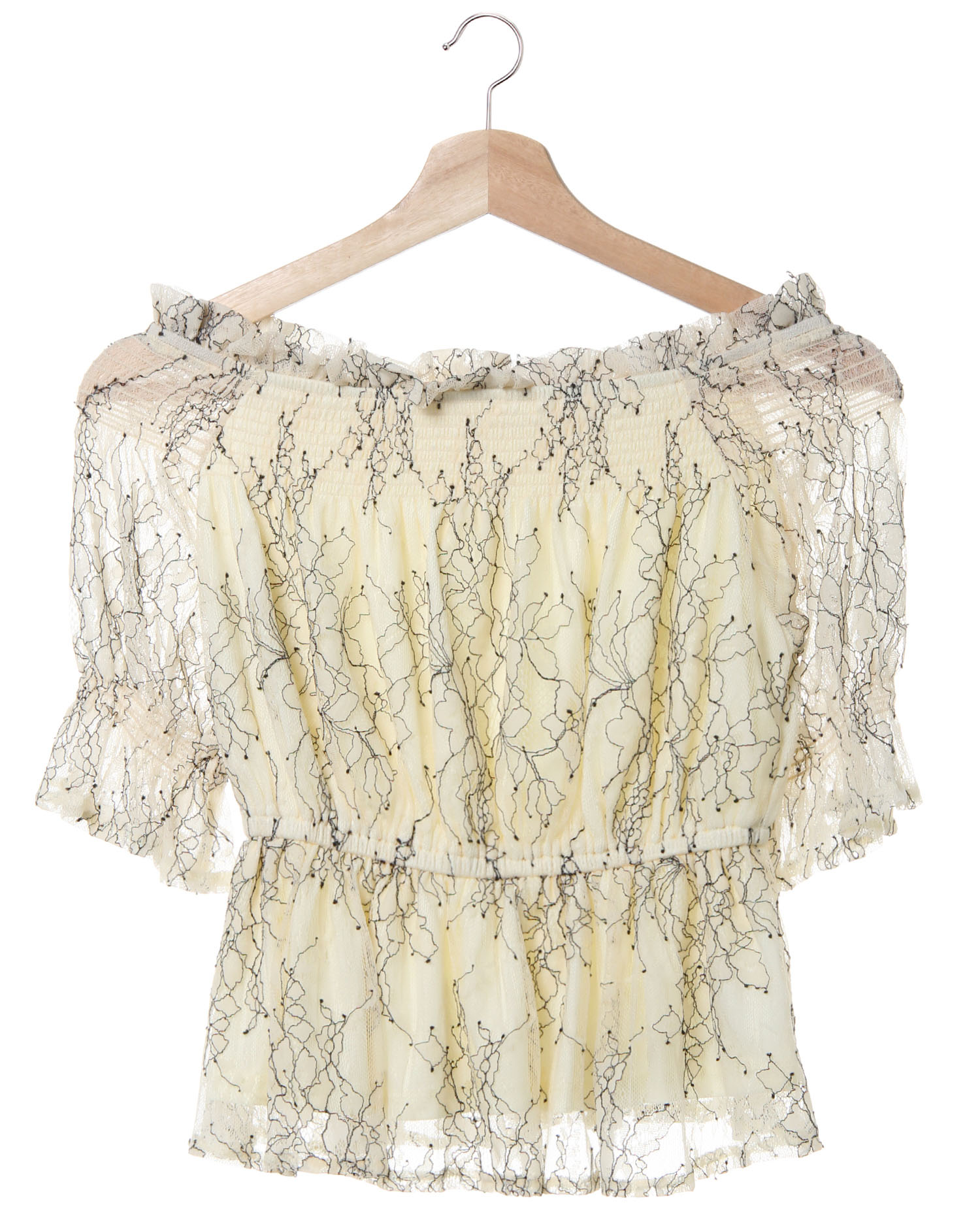 レディな抜け感コーデが完成するオフショルダーブラウス。繊細な配色レースが華やかな印象です。ボディ部分には伸縮性のある裏地付きで着心地も良く、1枚でも安心。バスト下にはゴムを入れているのでメリハリのあるシルエットで着られます。程よい肌見せとレースから透ける素肌で季節感たっぷりのスタイルを楽しんで。