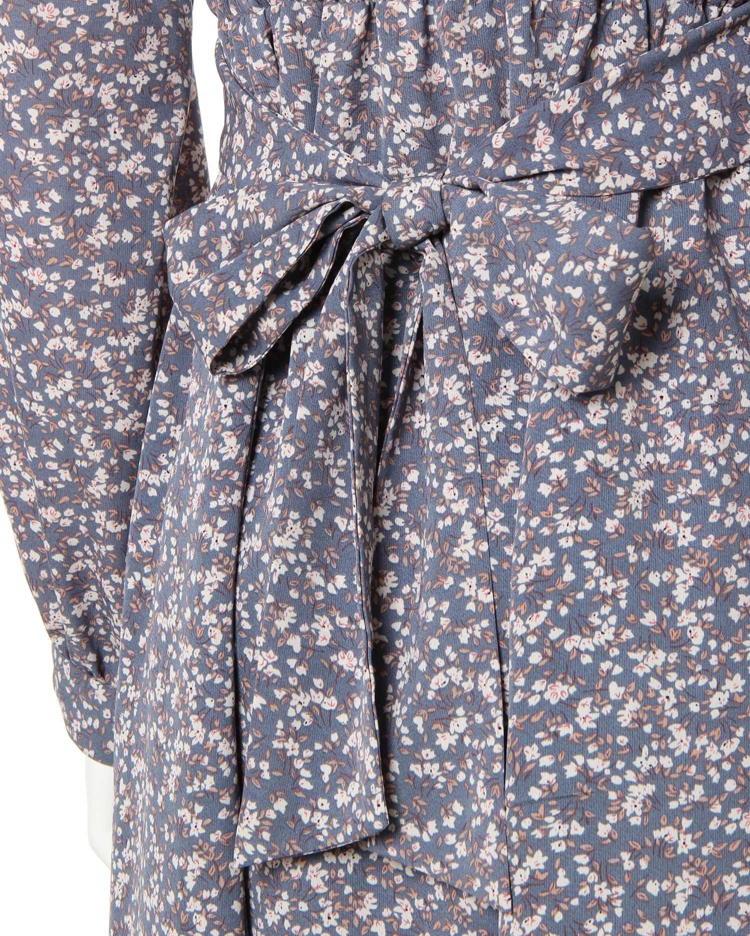 美シルエットで上品&フェミニンなスタイルを演出するワンピース。落ち着いた色使いと控えめなフラワープリントで大人っぽく着られます。Vネックは顔周りをすっきり明るく演出、タートルとのレイヤードも相性抜群です。高めのウエスト位置から裾に向かってい広がるフレアデザインでスタイル効果も絶大。バックスタイルのリボンで後ろ姿も抜かりなし。コロンとした共布の飾りボタンがクラシカルなアクセントになっています。