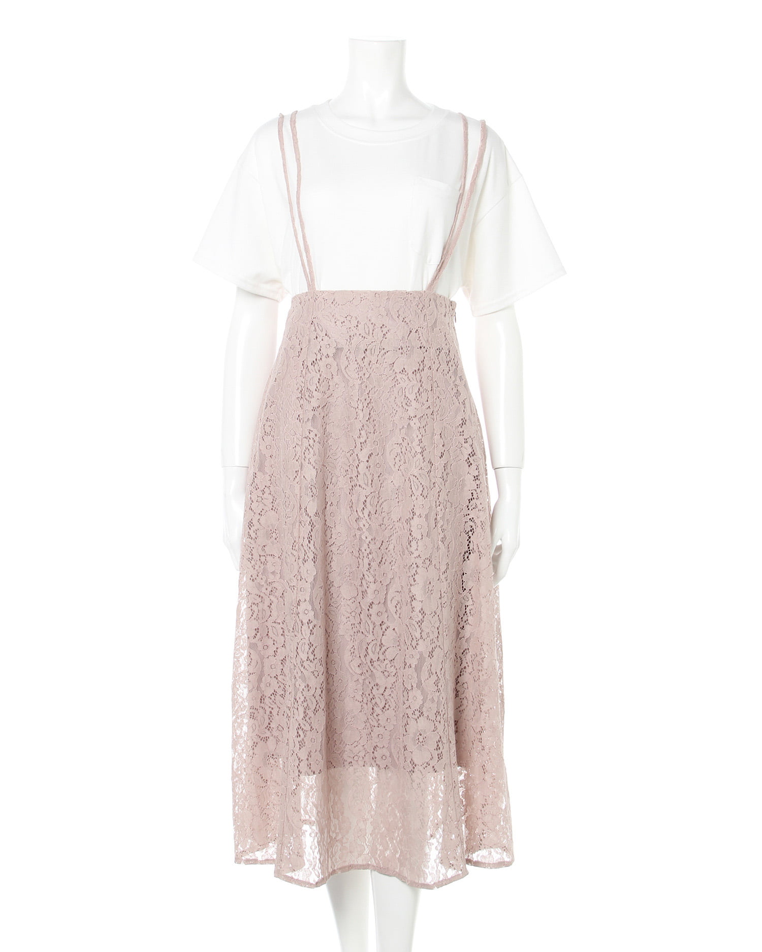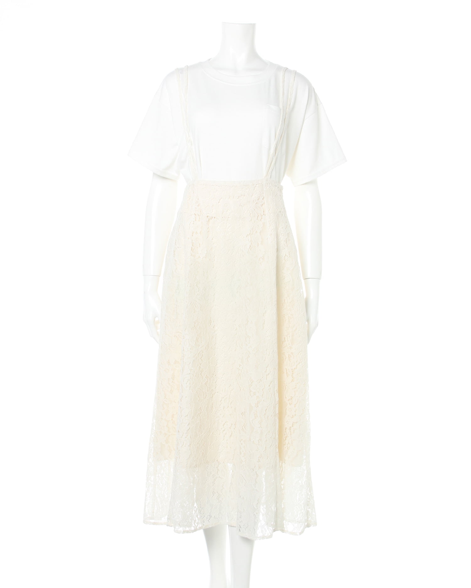 クラシカル&エレガントな総レースのサスペンダー付きスカート。繊細なフラワーレースでワンカラーも表情のある着こなしへと導きます。細めのサスペンダーで大人っぽく。バックウエストにはレースアップデザインでアクセントをプラスしています。サイドジップで脱ぎ穿きも楽ちん。裾へ向かってふわりと広がるシルエットがフェミニンなアイテムです。