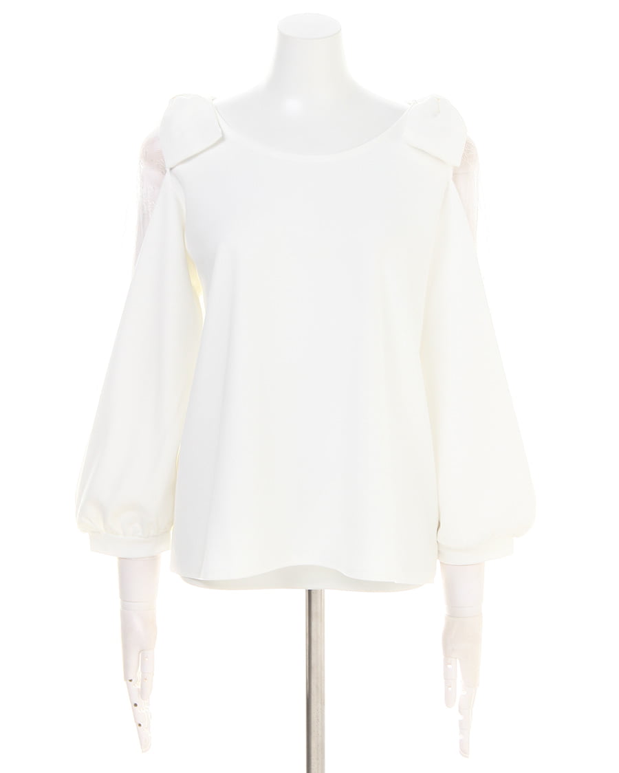 • INGNI(イング) 梨地ポンチ袖割れリボン8分袖 オフホワイト