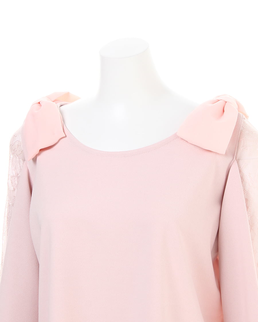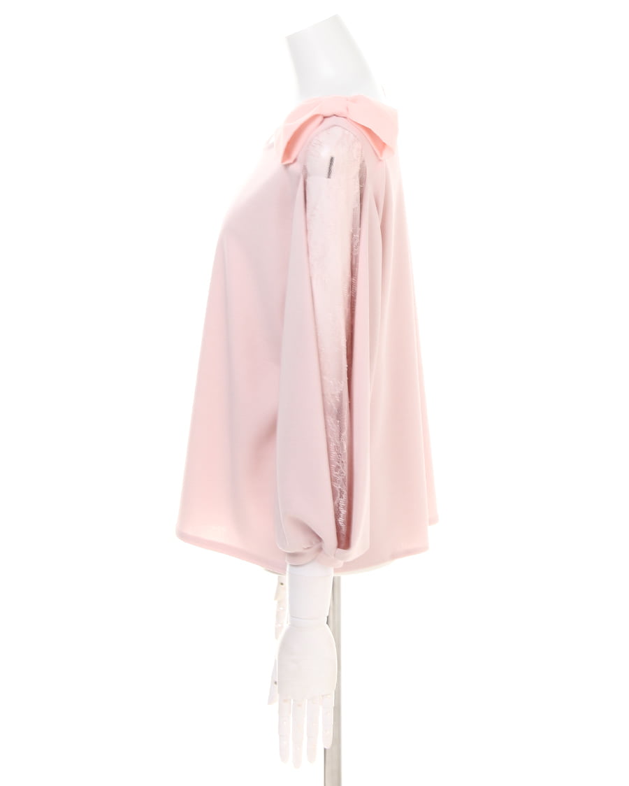さらりとした梨地生地が着心地の良いブラウスは袖部分のレース使いがポイント。伸縮性がありながらもゆったりとした着心地でオンスタイルにもおすすめです。ショルダー部分の立体的なリボン使いがアクセントに。視線を上に向け、すっきりとスタイルアップを叶えてくれます。インスタイルももたつかずに合わせられる絶妙な裾丈が◎。