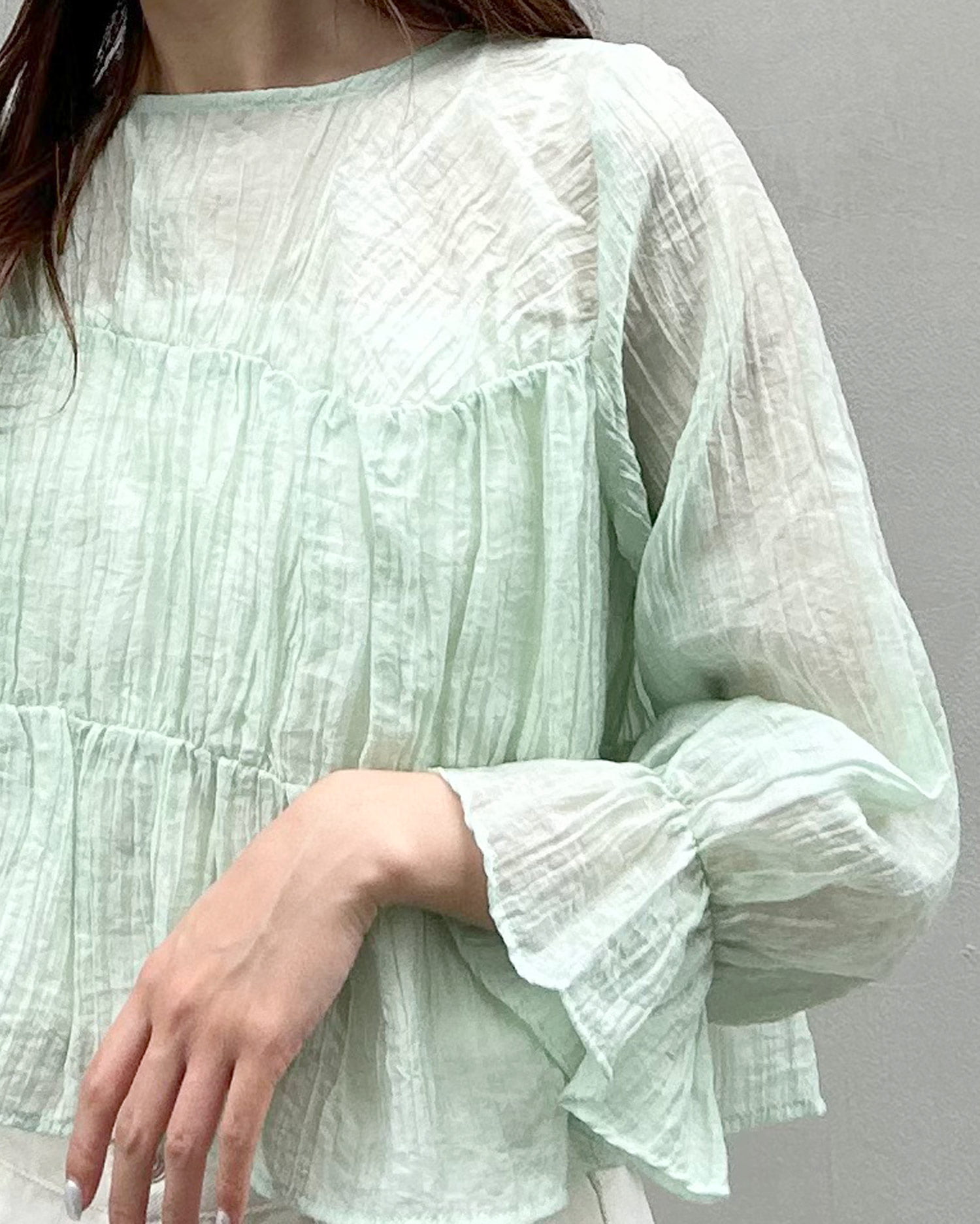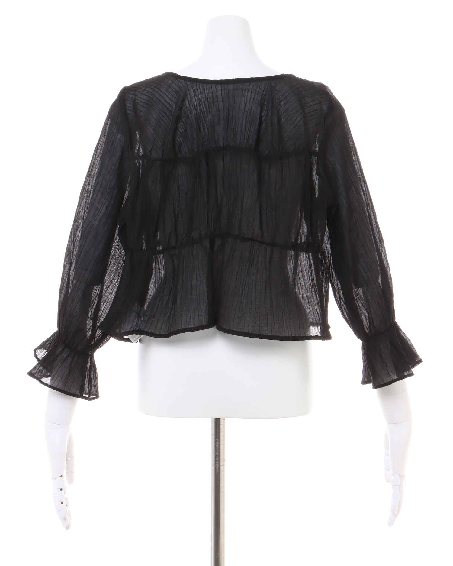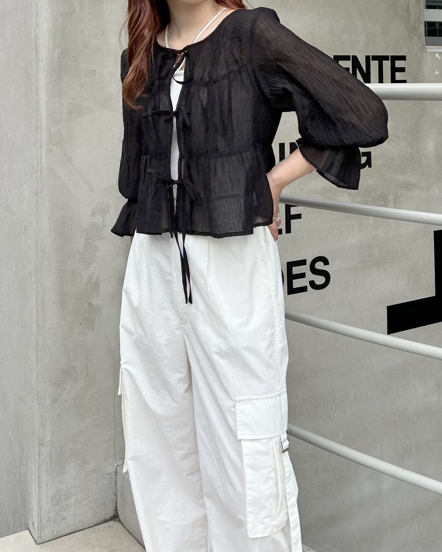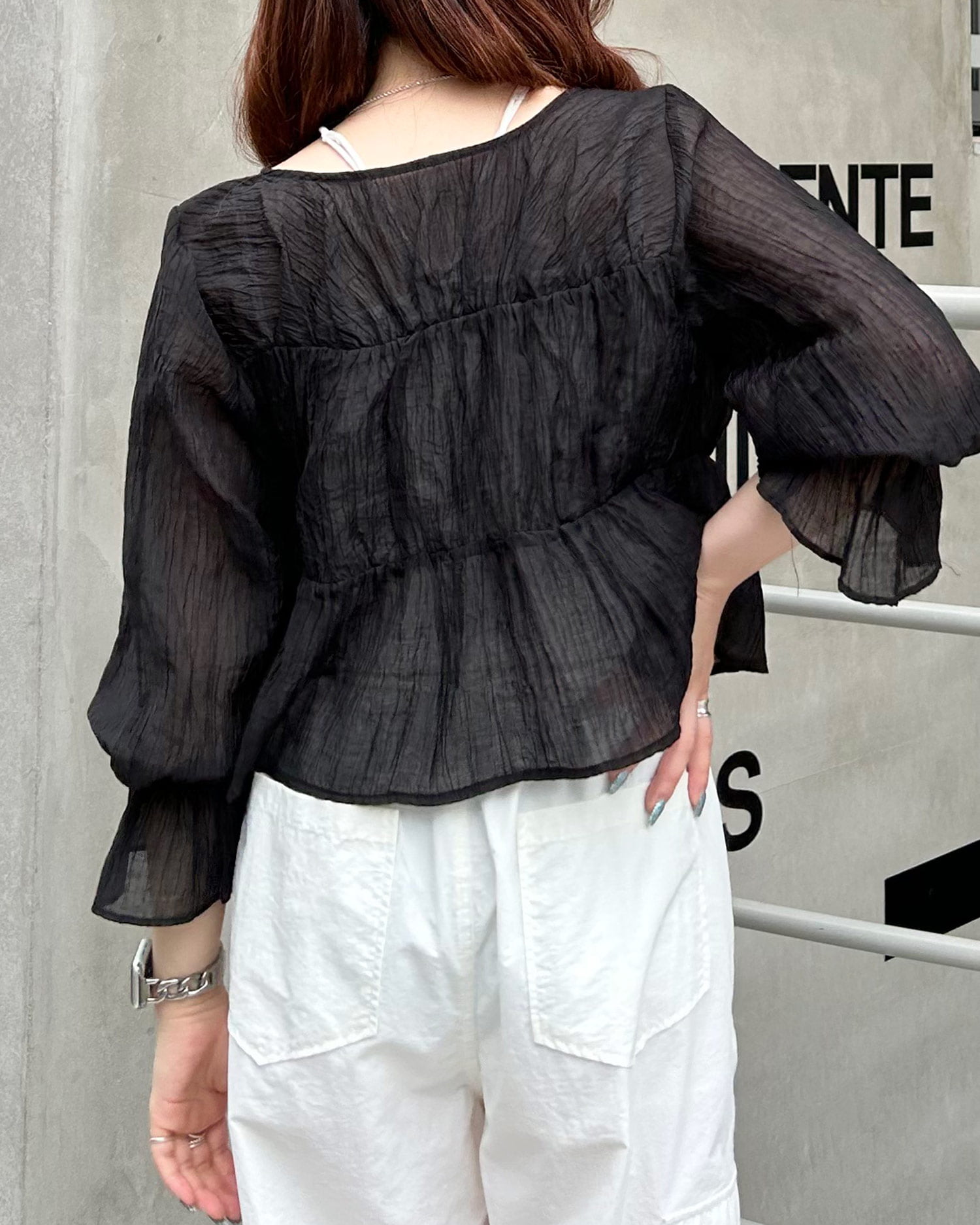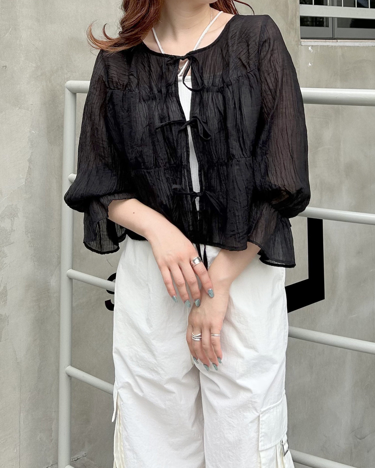 表面感のある素材で仕立てることで表情のある着こなしへと導く2wayブラウス。