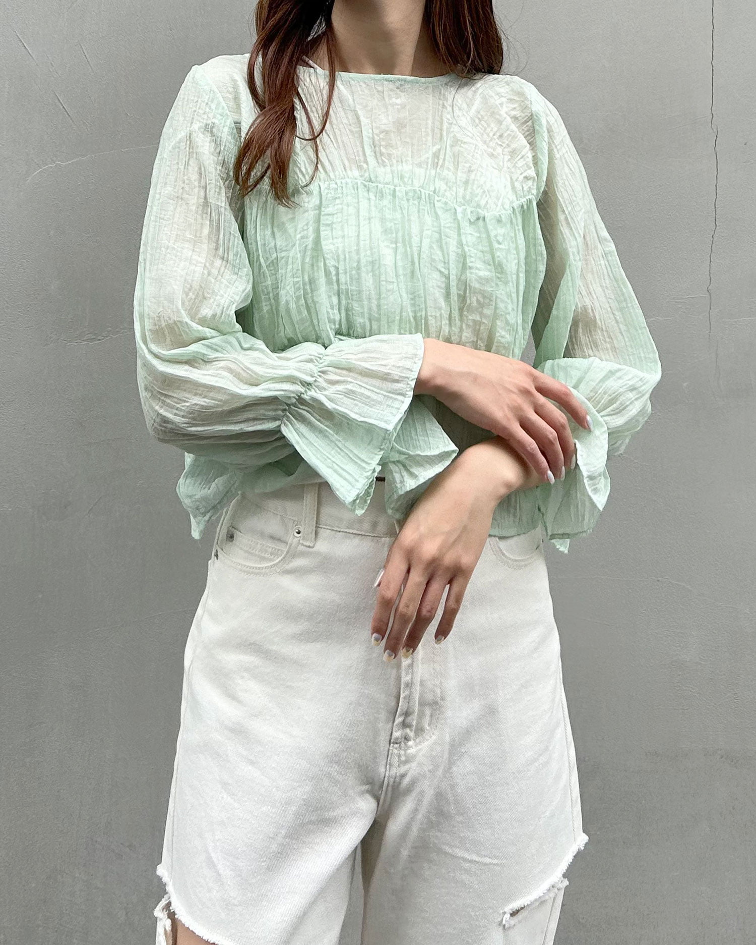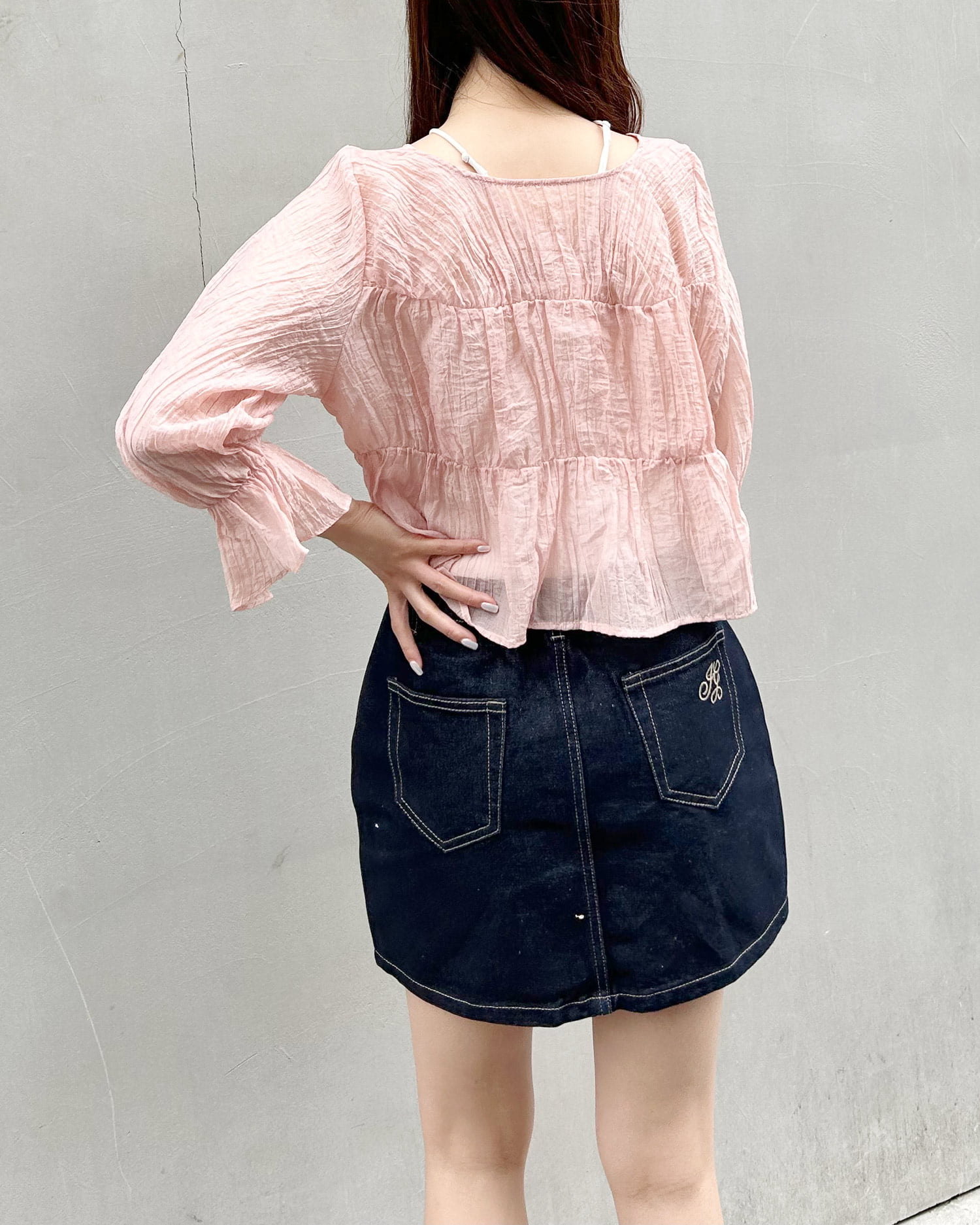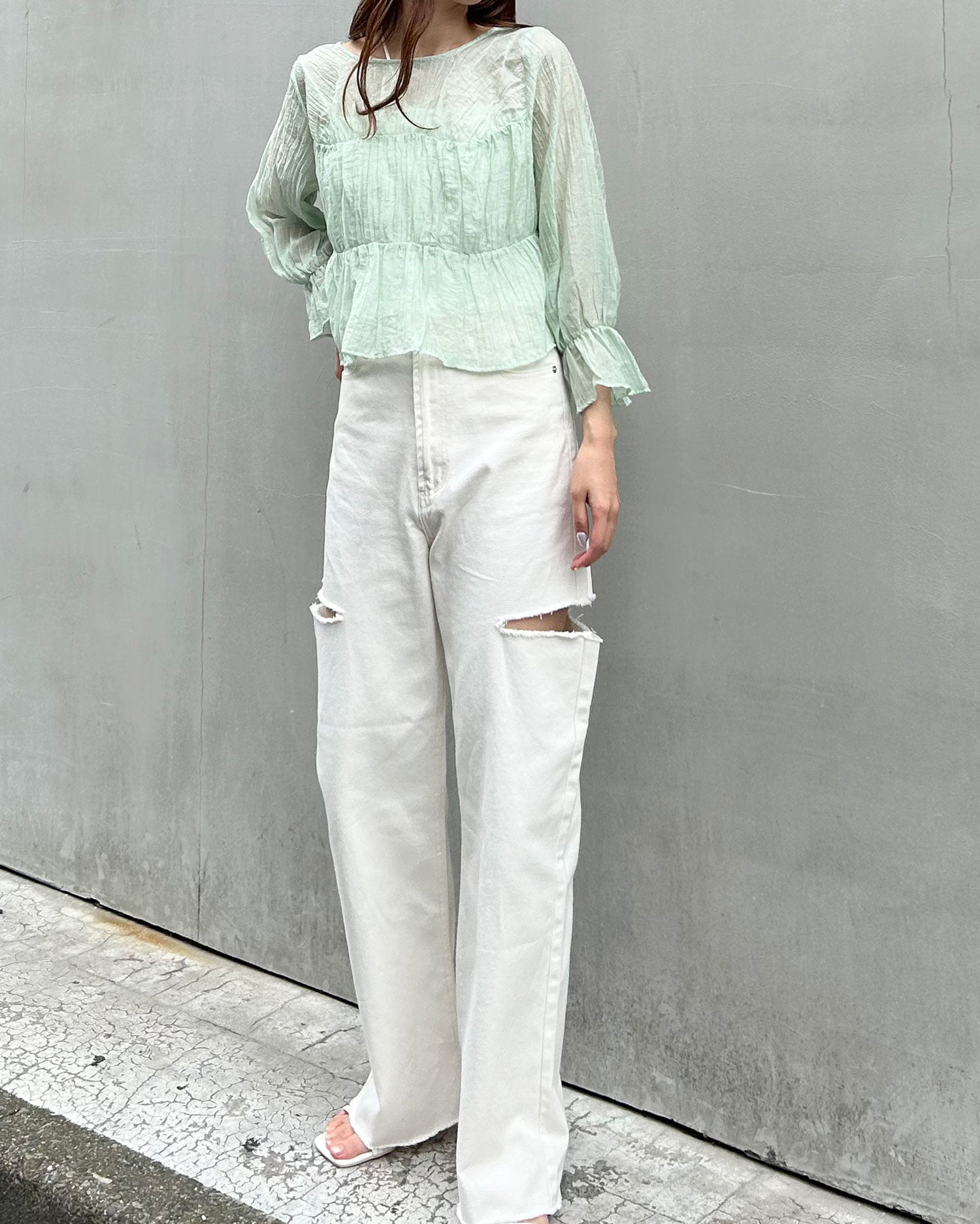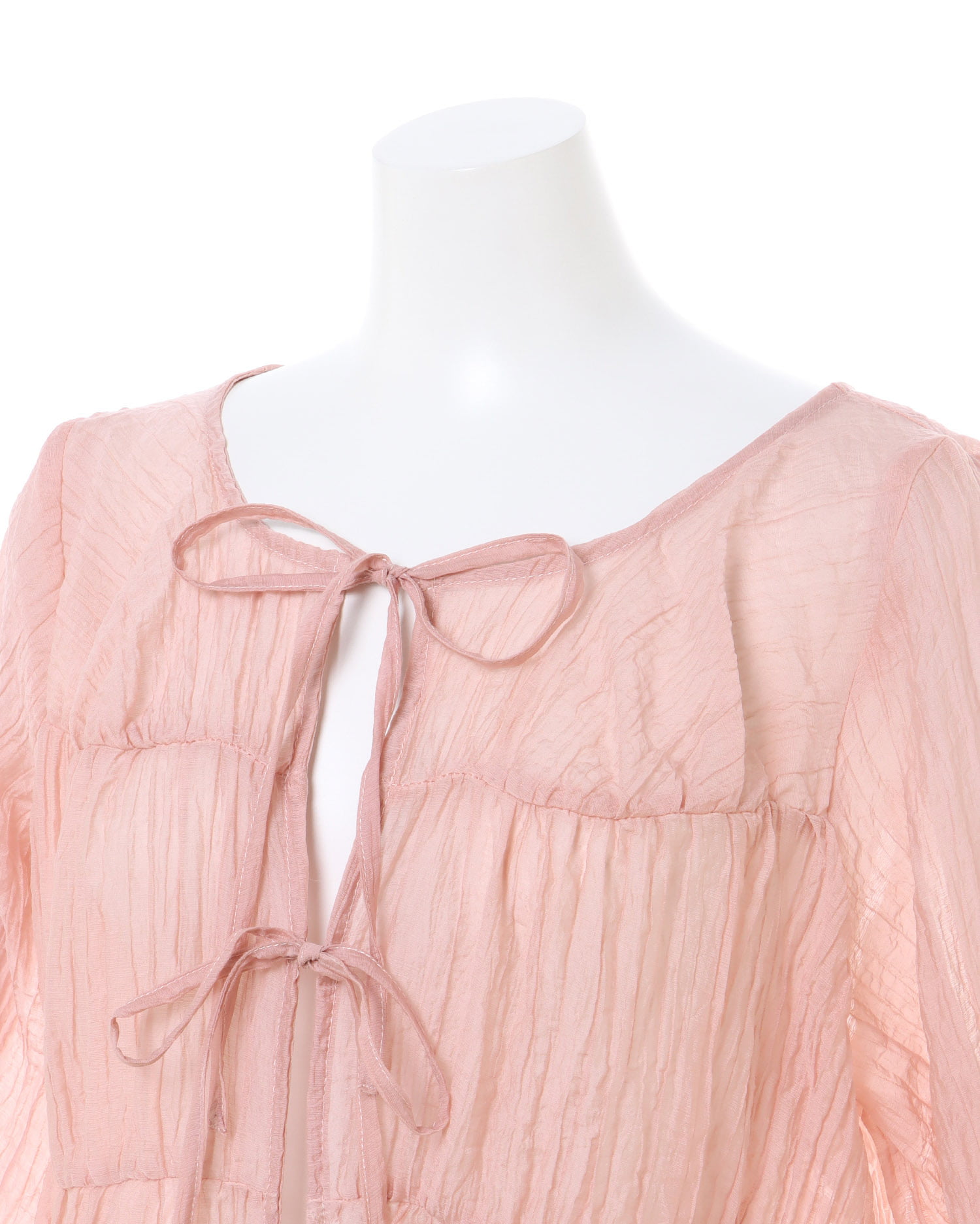表面感のある素材で仕立てることで表情のある着こなしへと導く2wayブラウス。