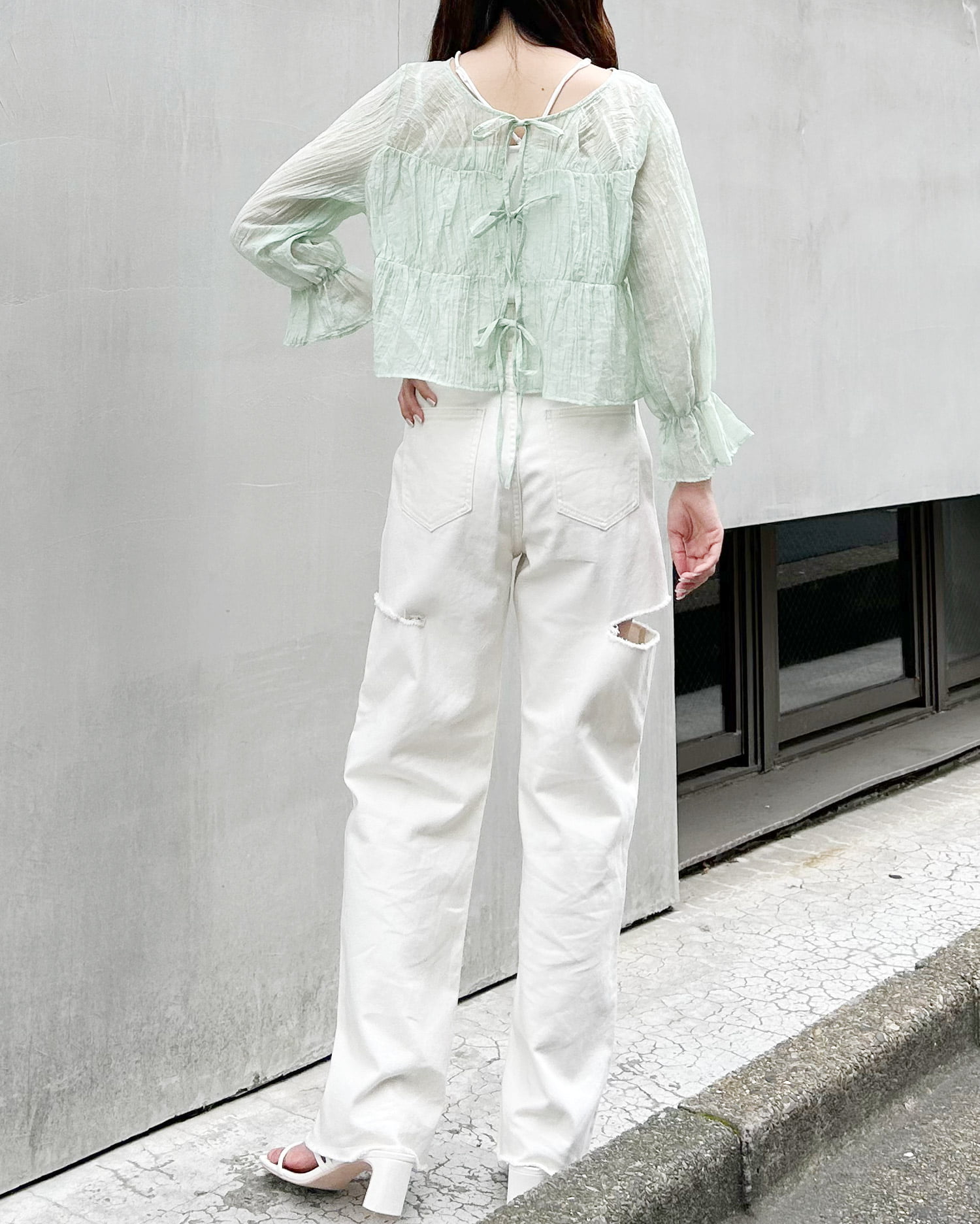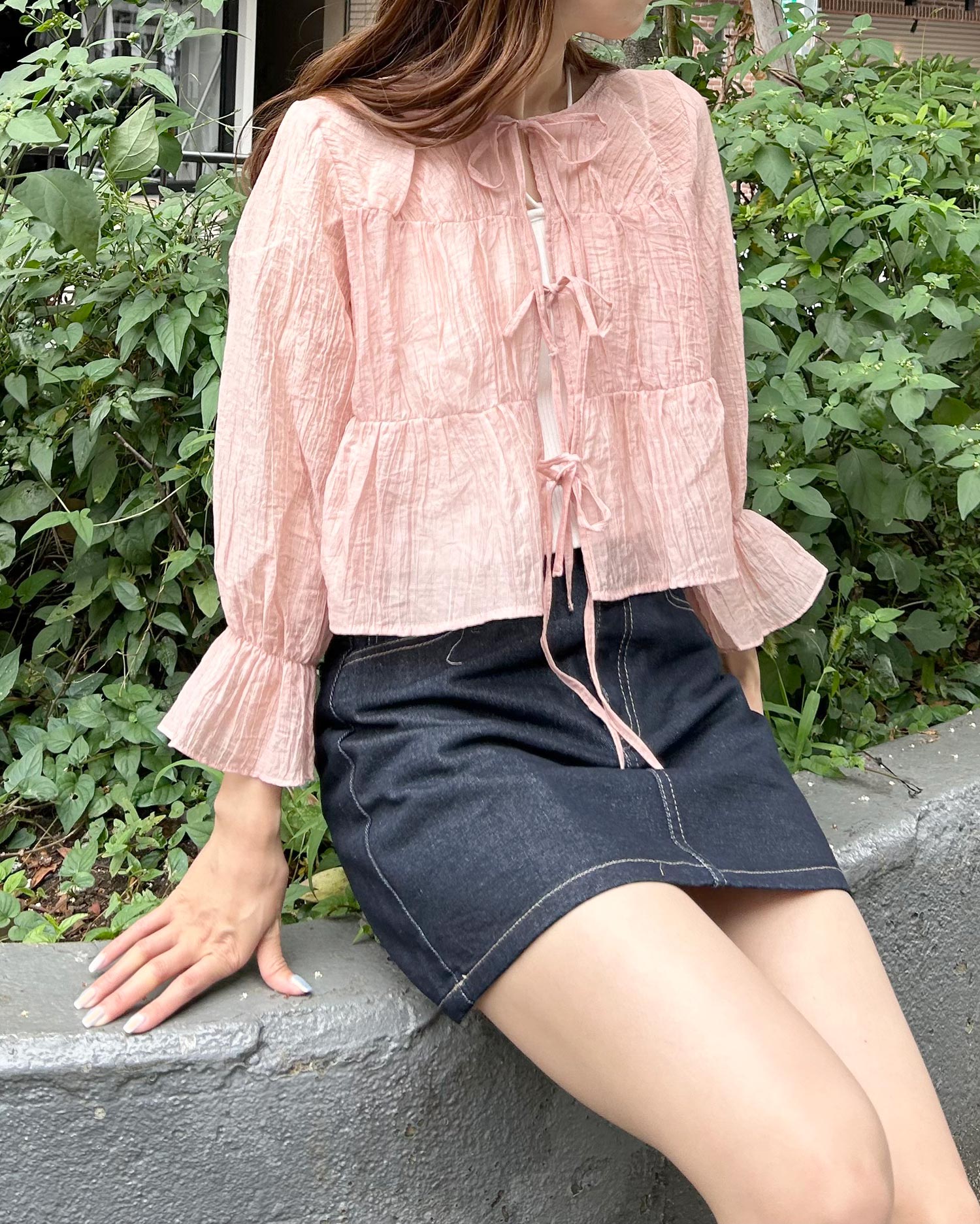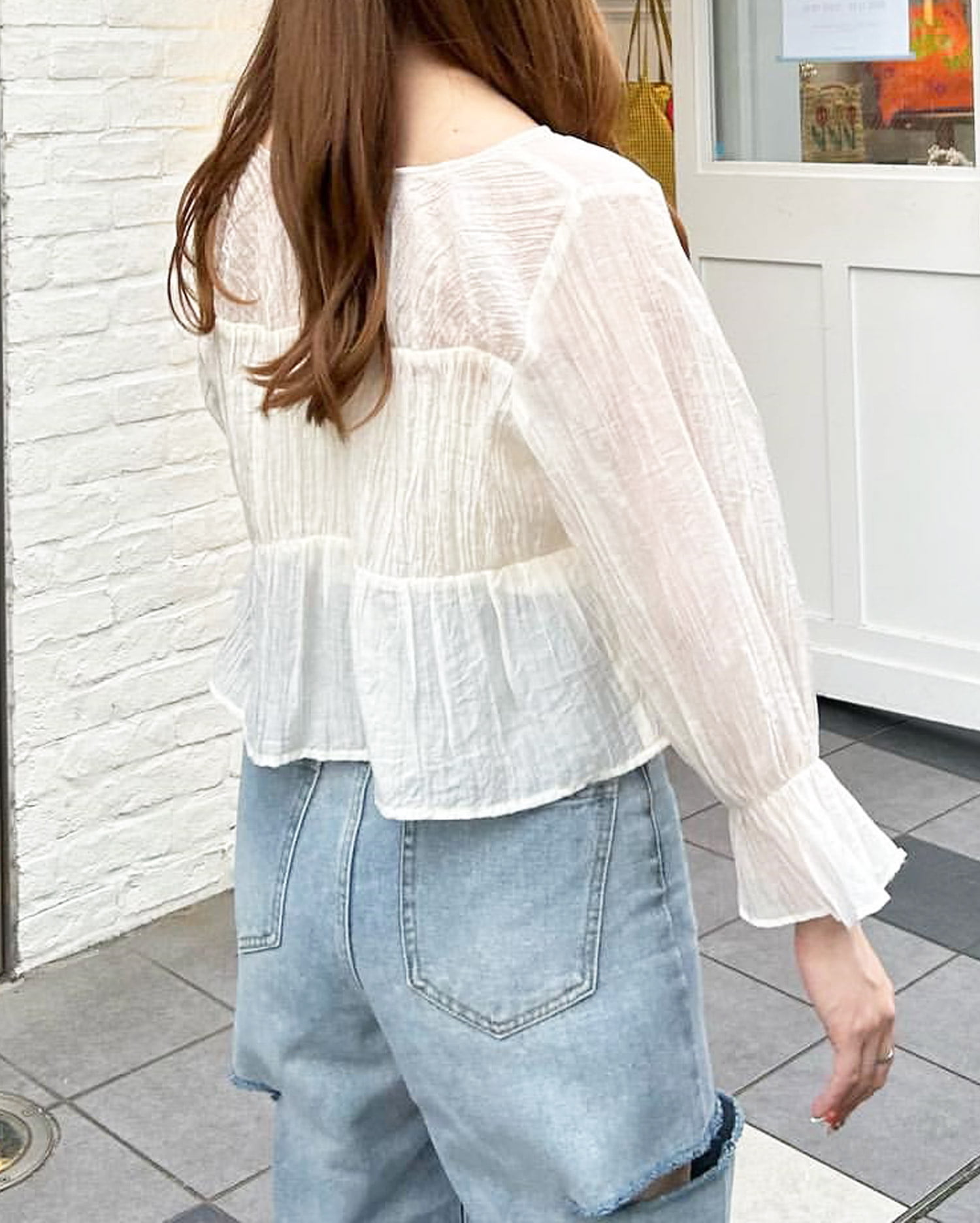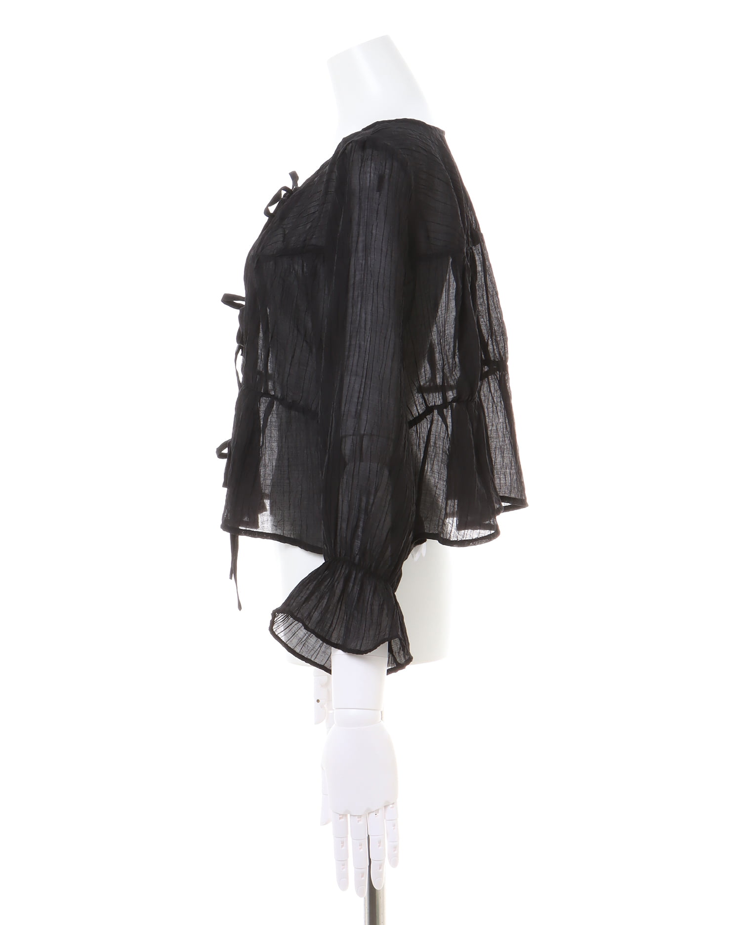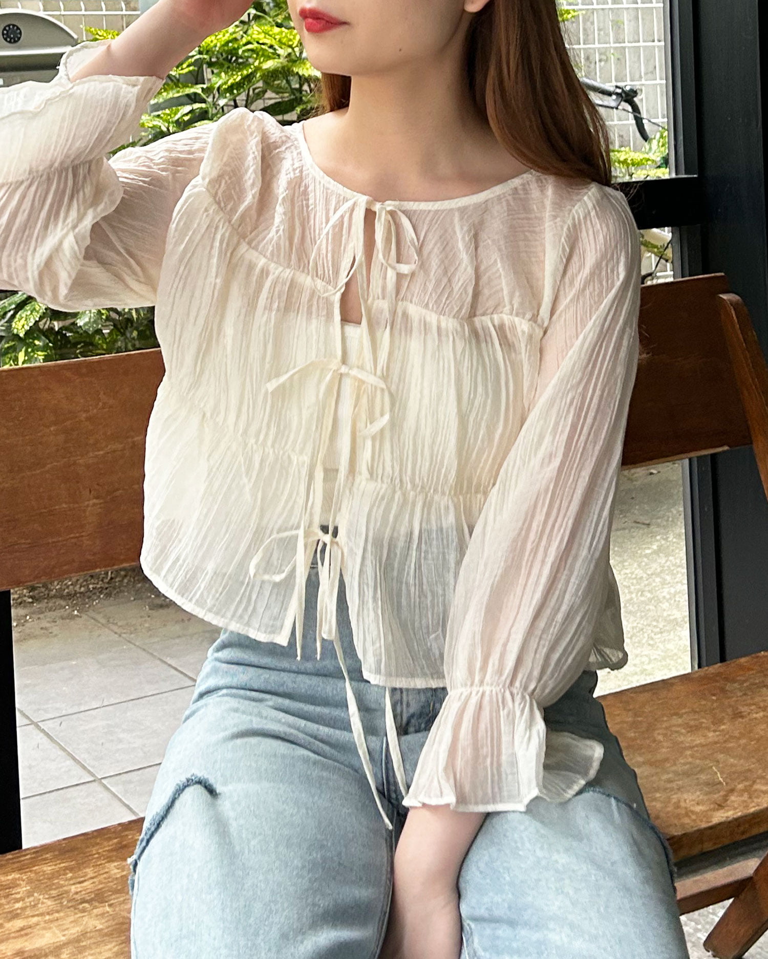 表面感のある素材で仕立てることで表情のある着こなしへと導く2wayブラウス。