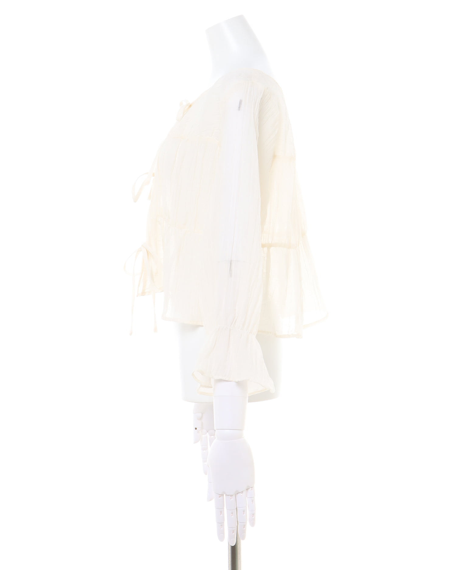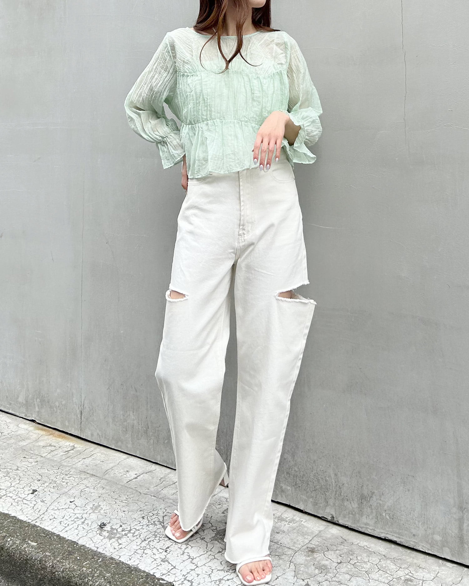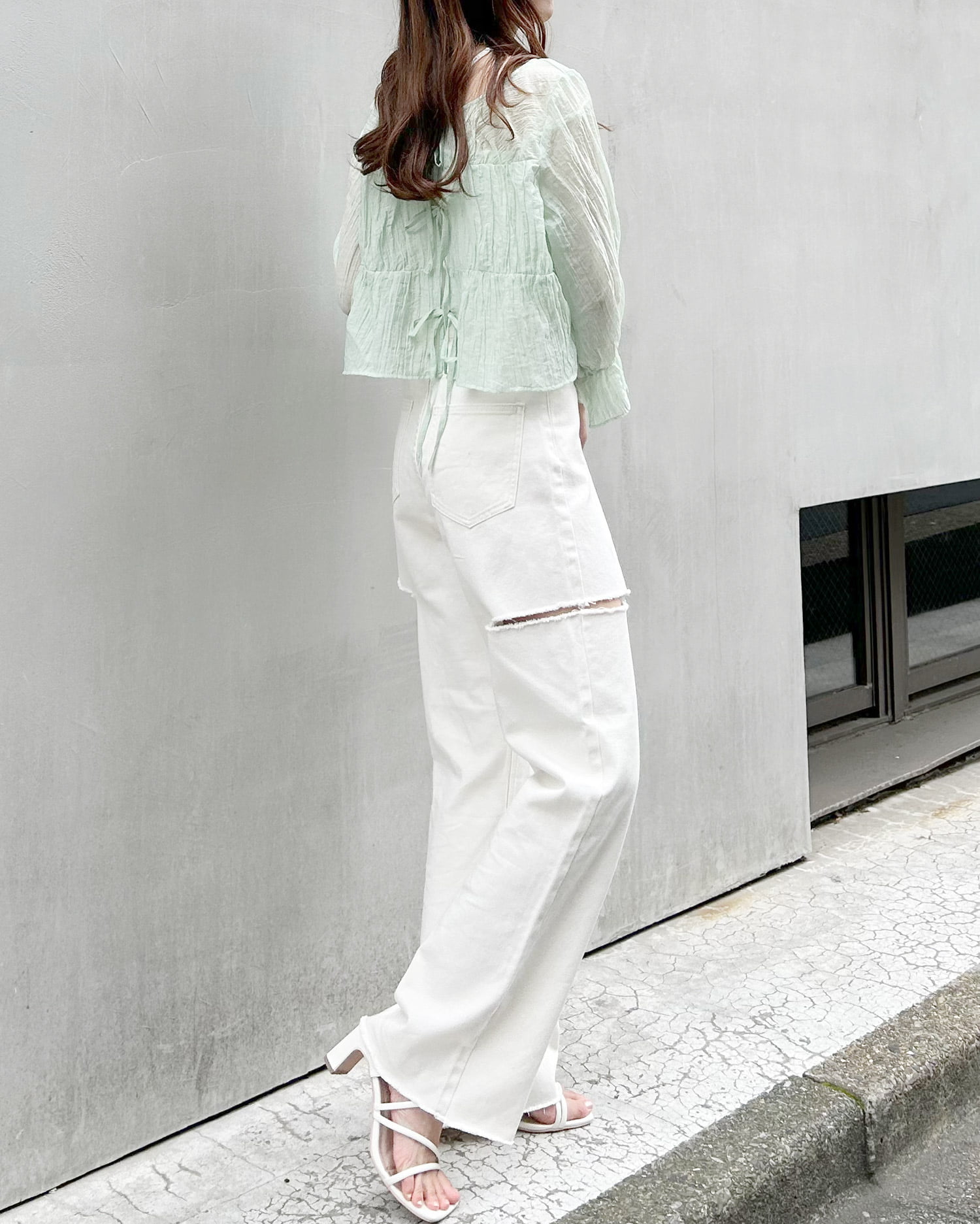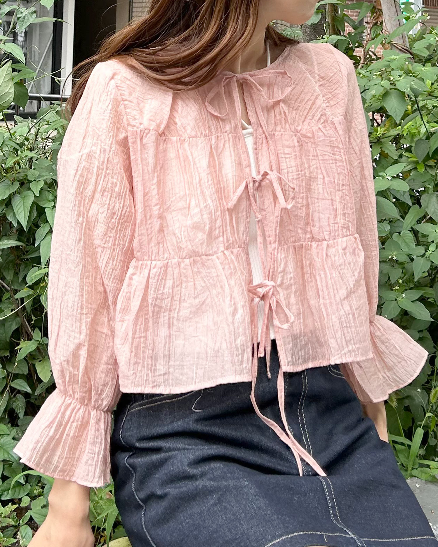 表面感のある素材で仕立てることで表情のある着こなしへと導く2wayブラウス。
