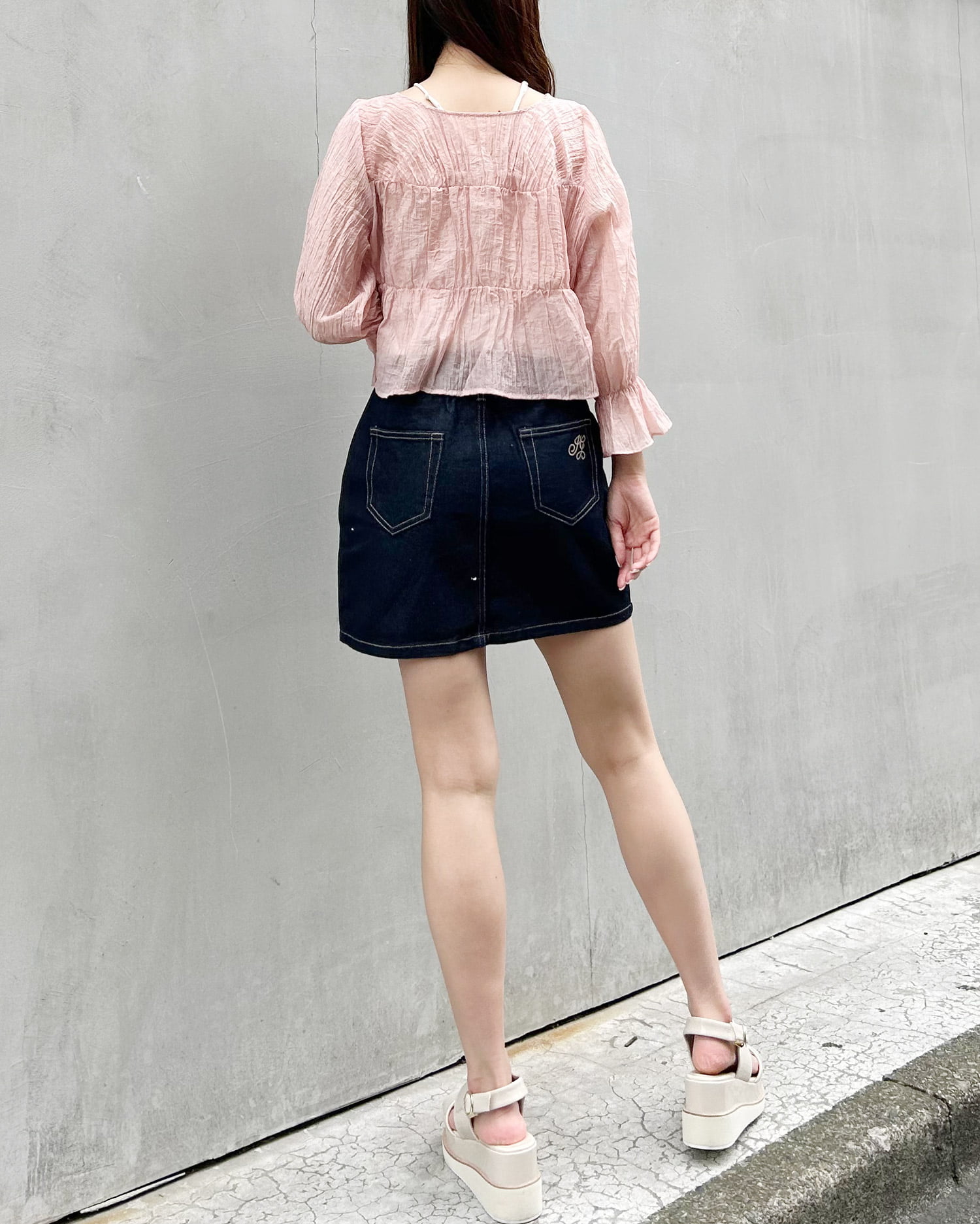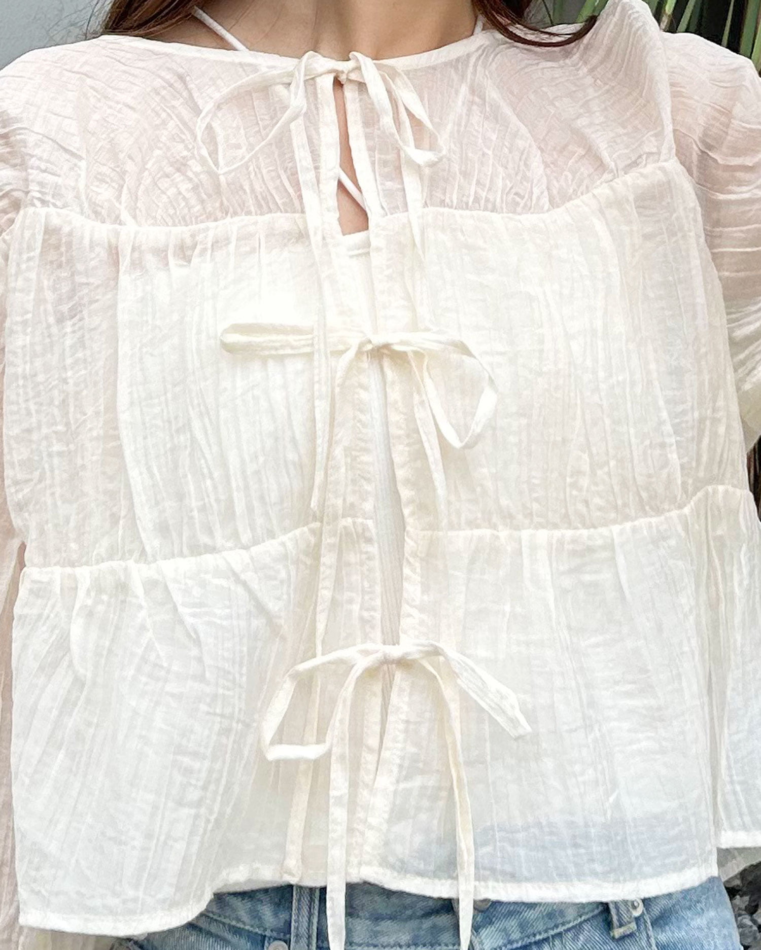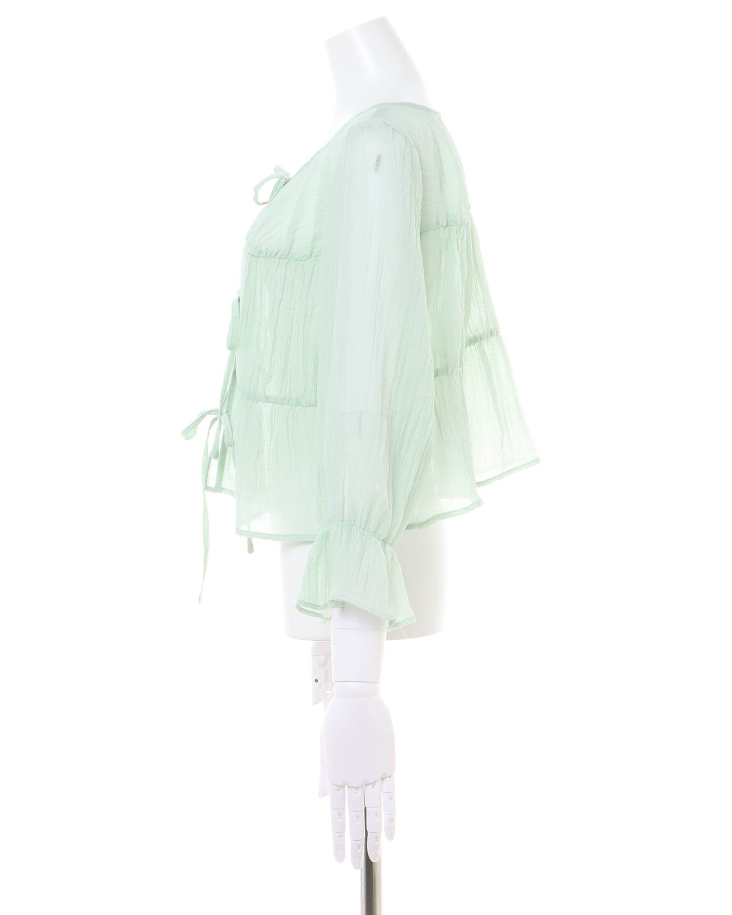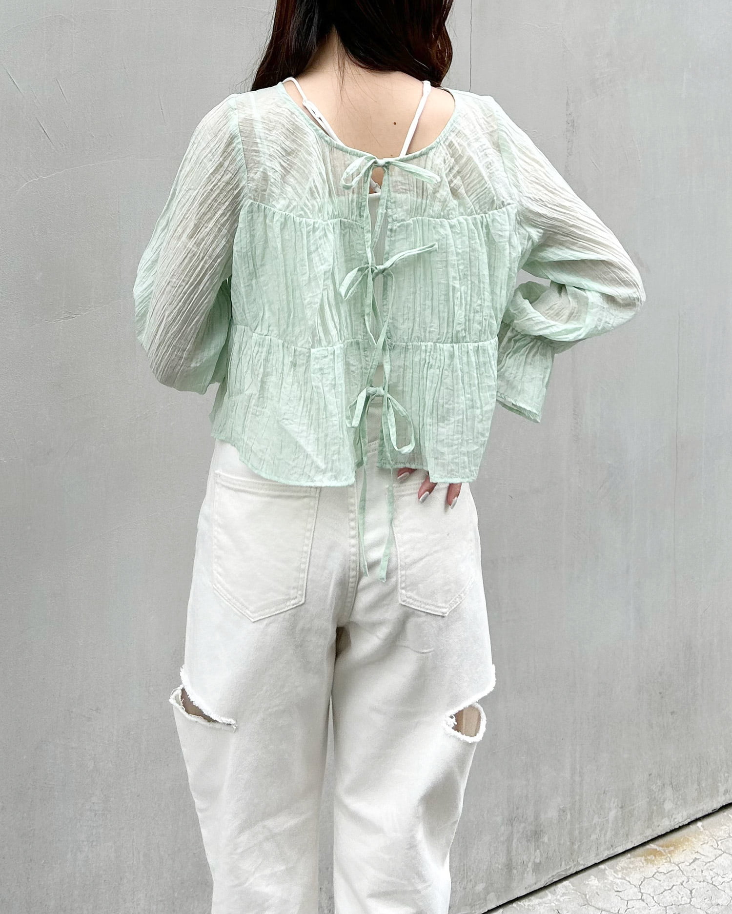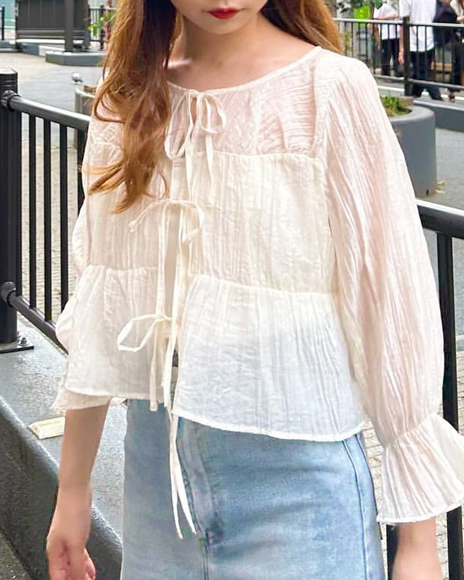 表面感のある素材で仕立てることで表情のある着こなしへと導く2wayブラウス。