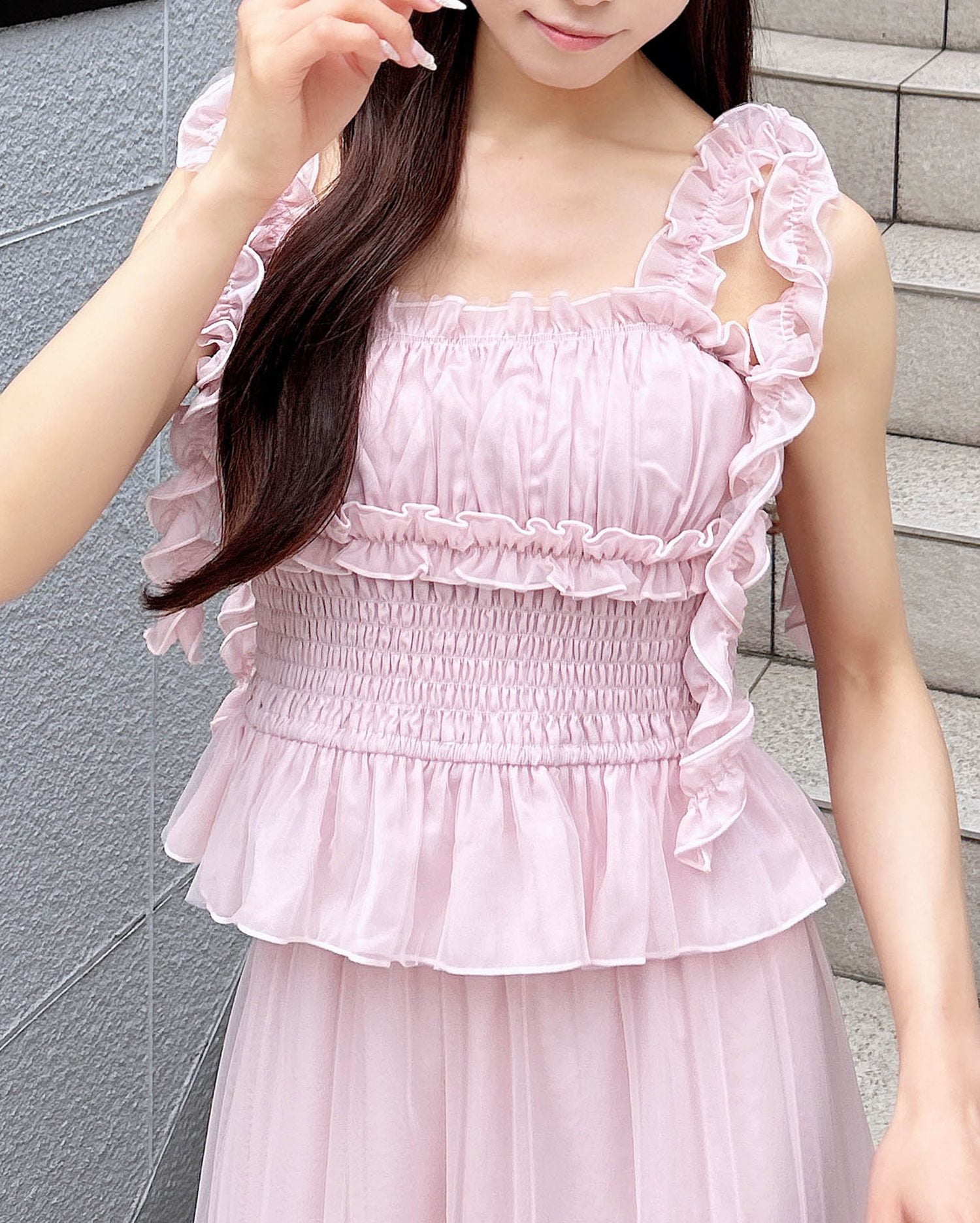 【ふわふわチュールをふんだんにあしらったキャミブラウス】
