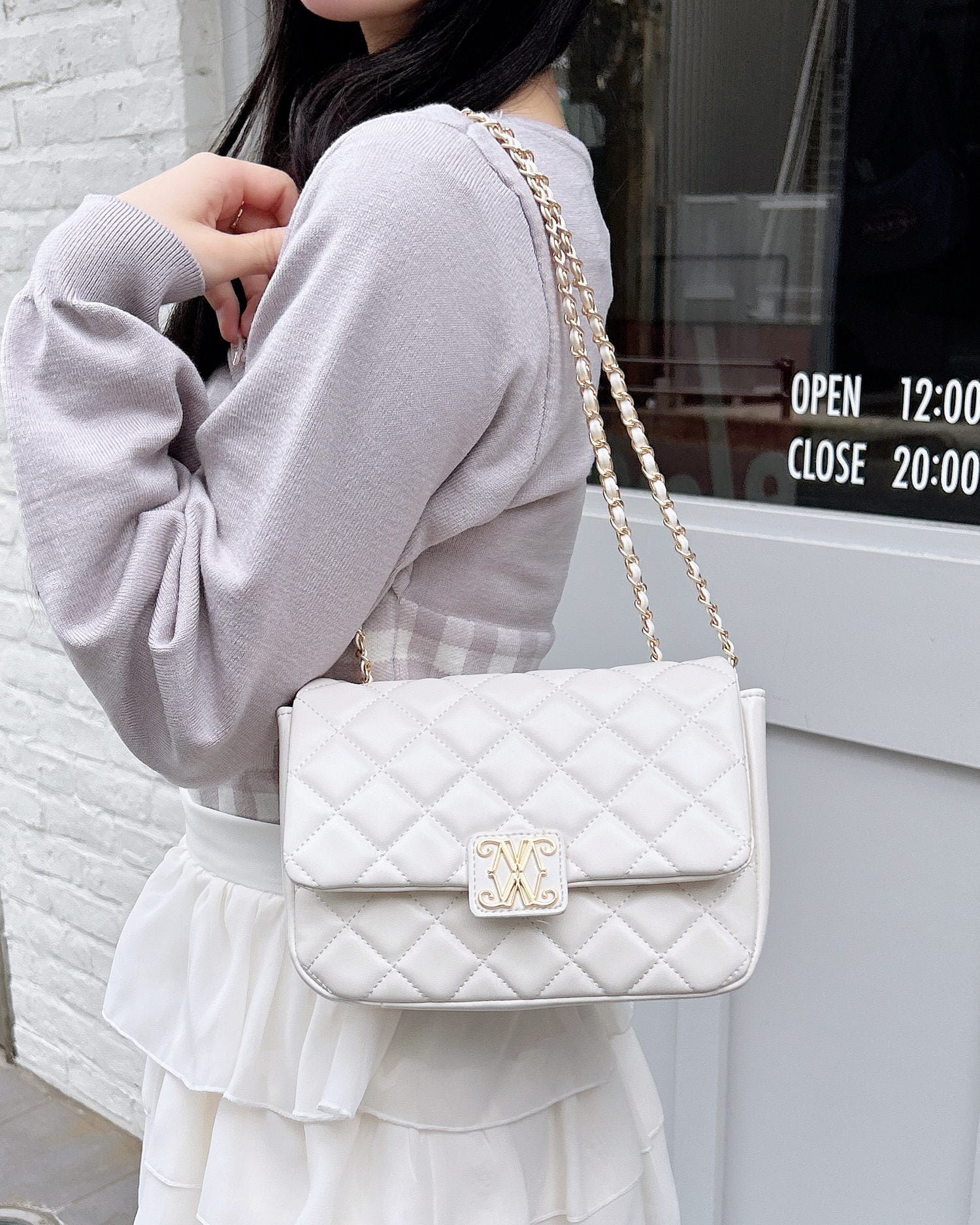 大人上品なキルティングデザインのショルダーバッグ。