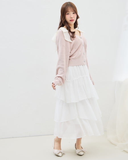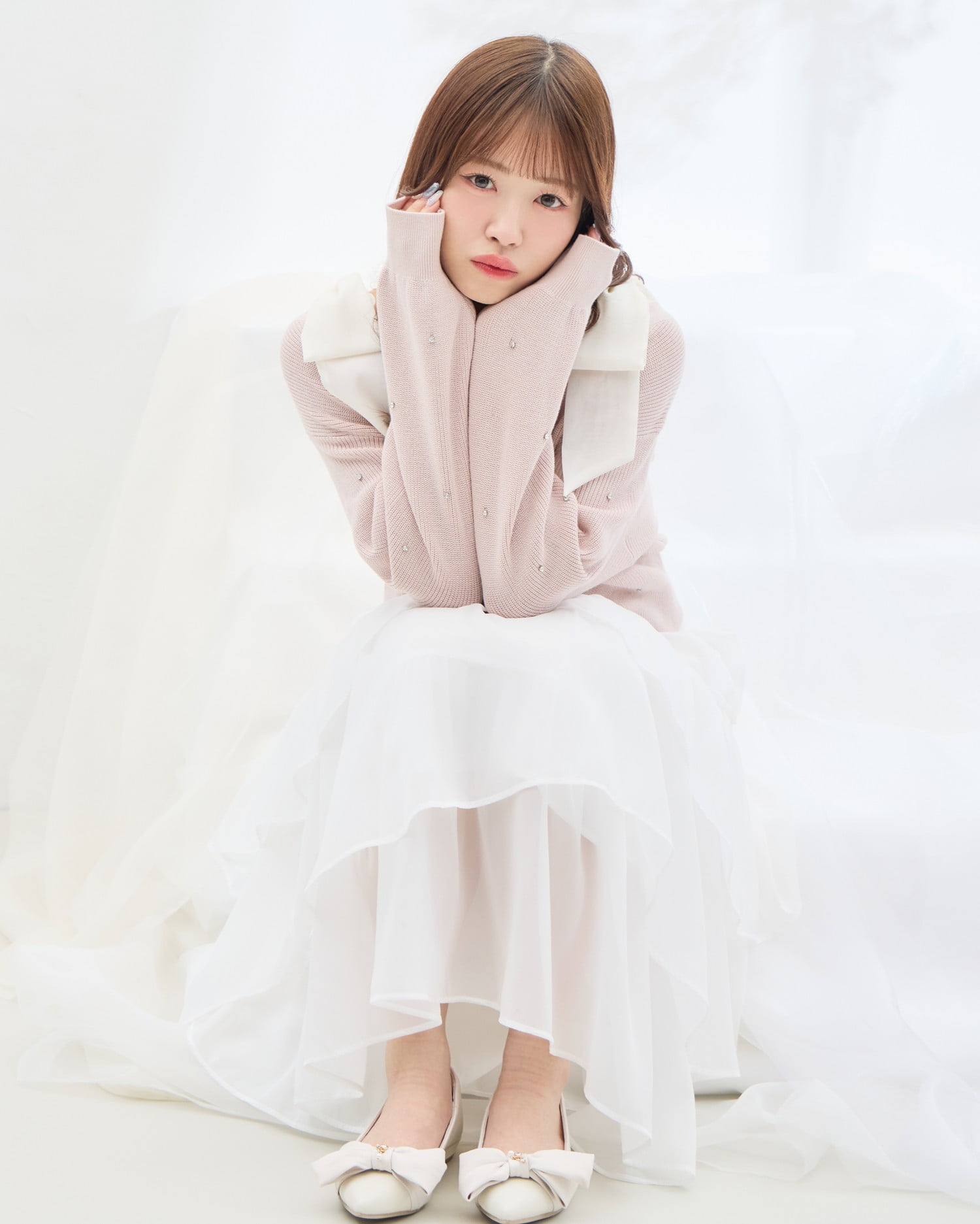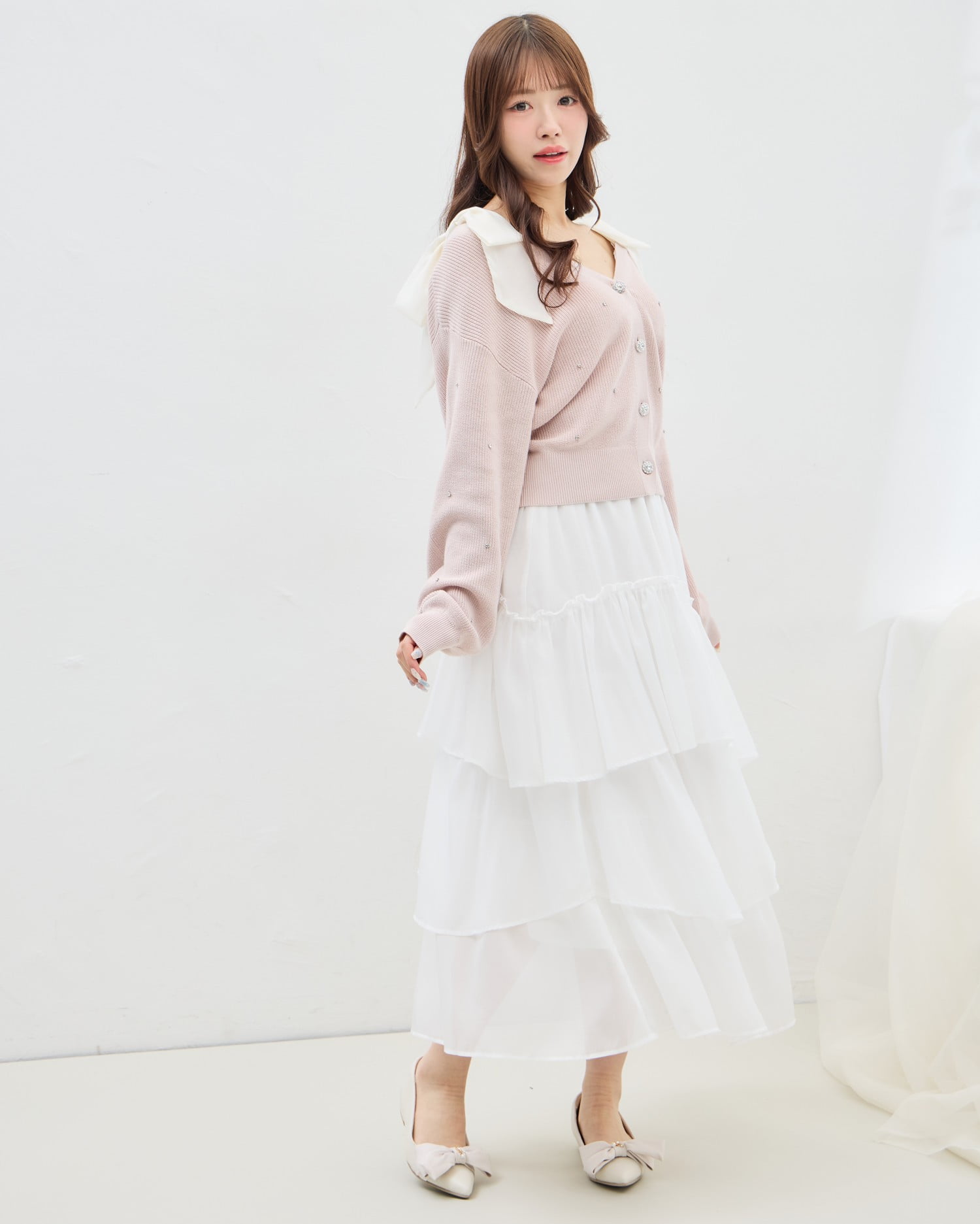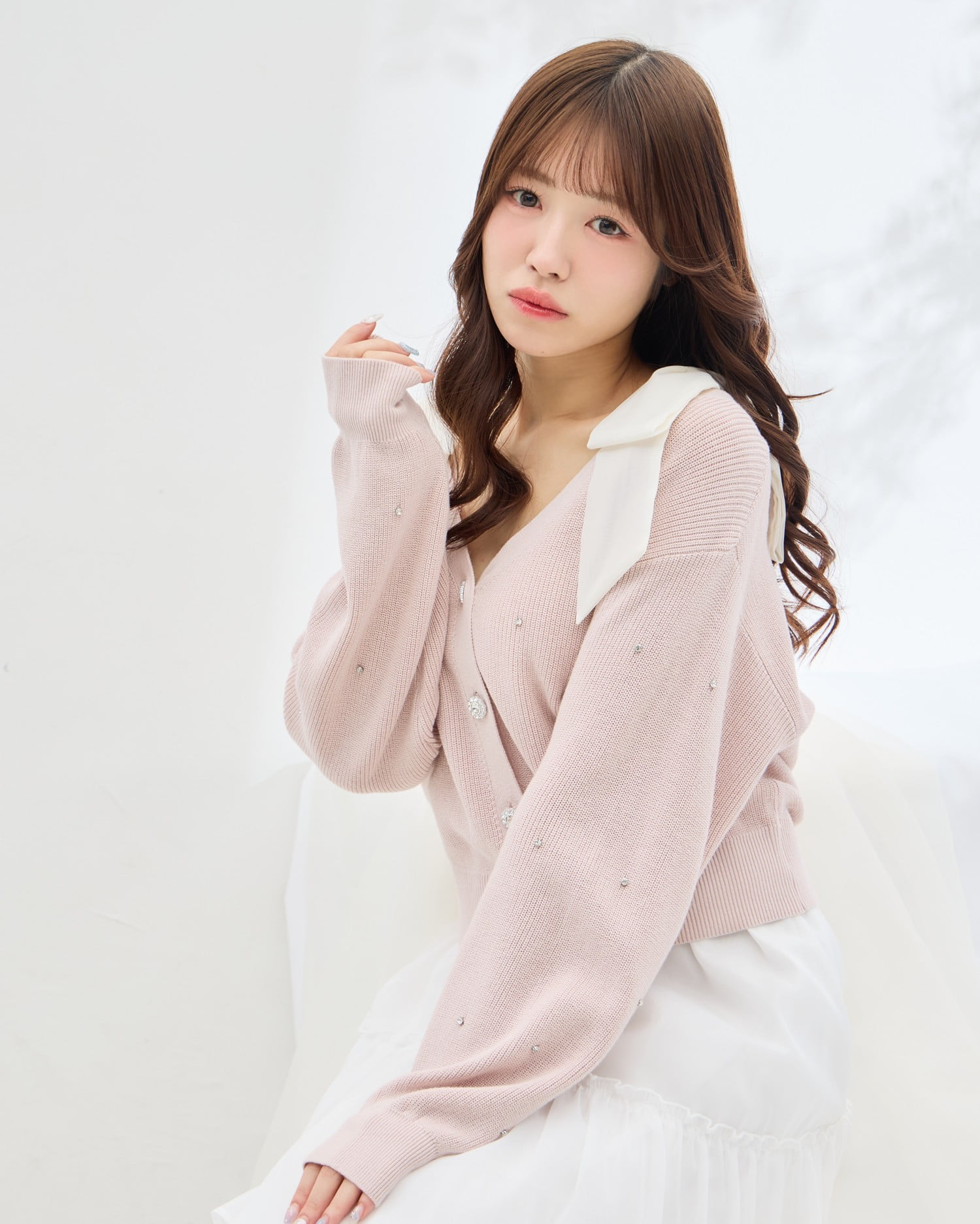 肩紐部分がリボンになっている可愛らしい印象のカーディガンです。