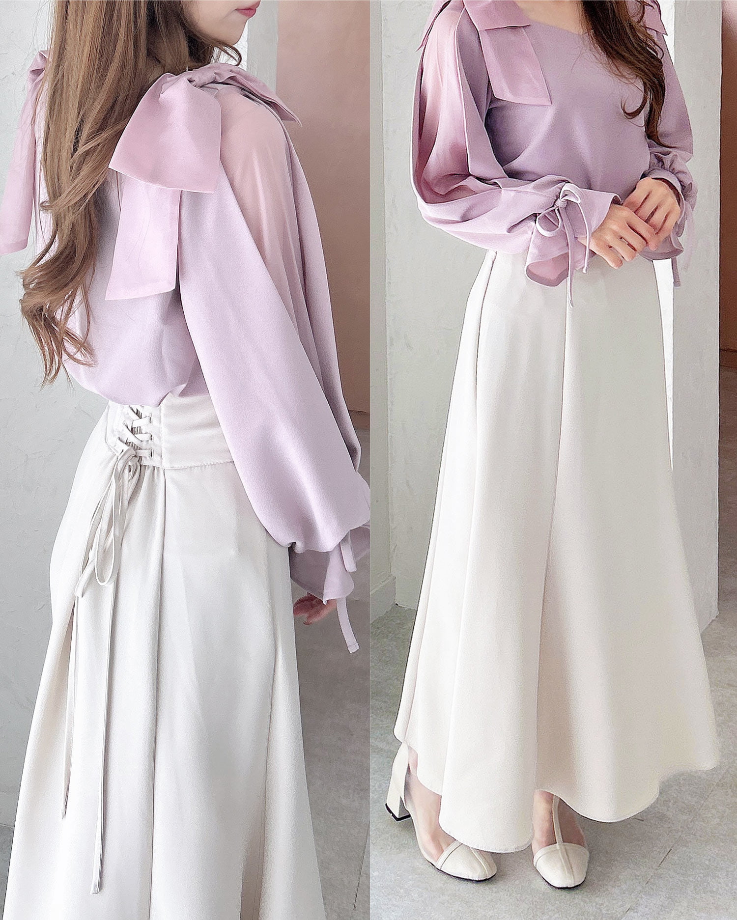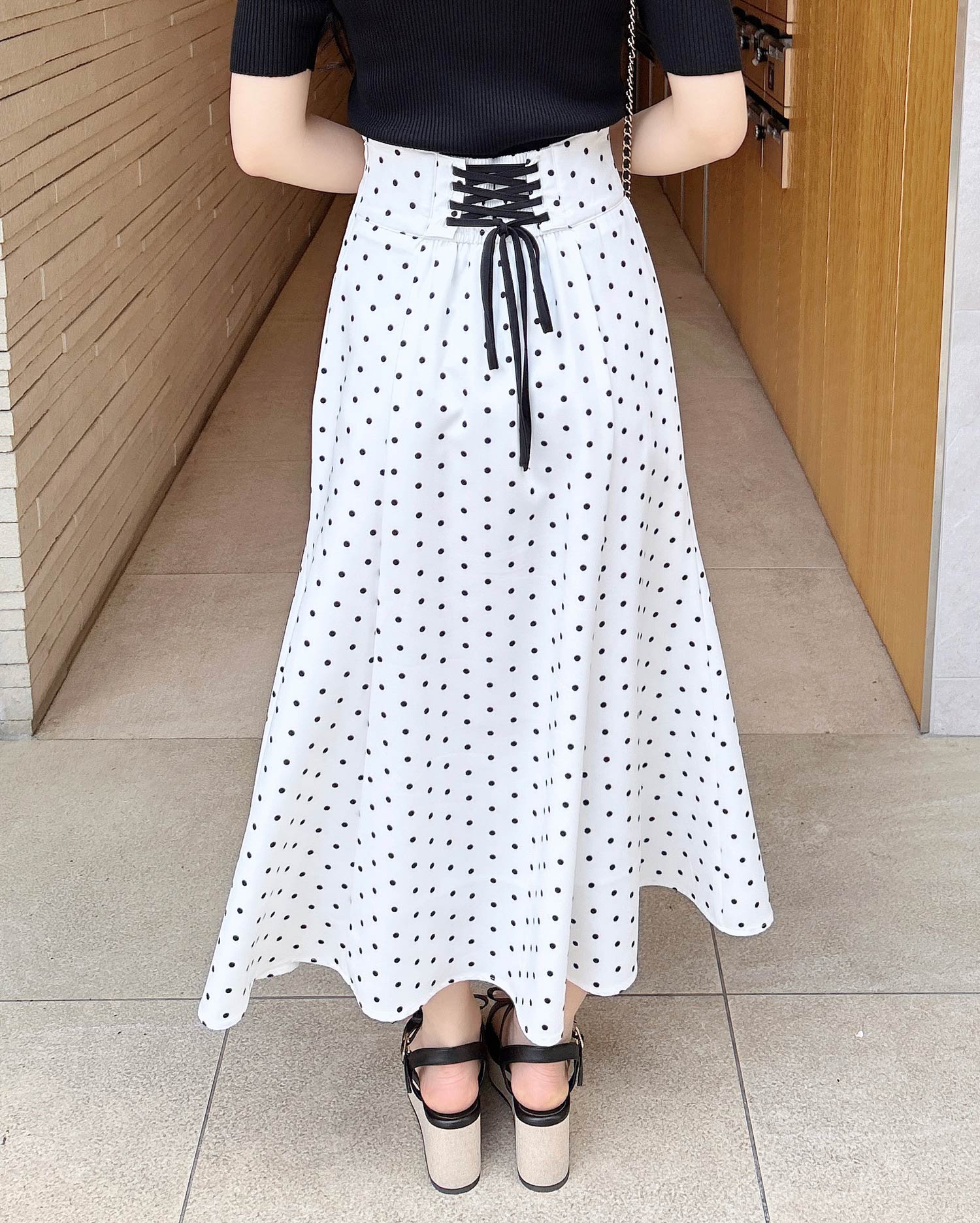 バックにはレースアップデザインを取り入れ、後ろ姿も抜かりナシ。